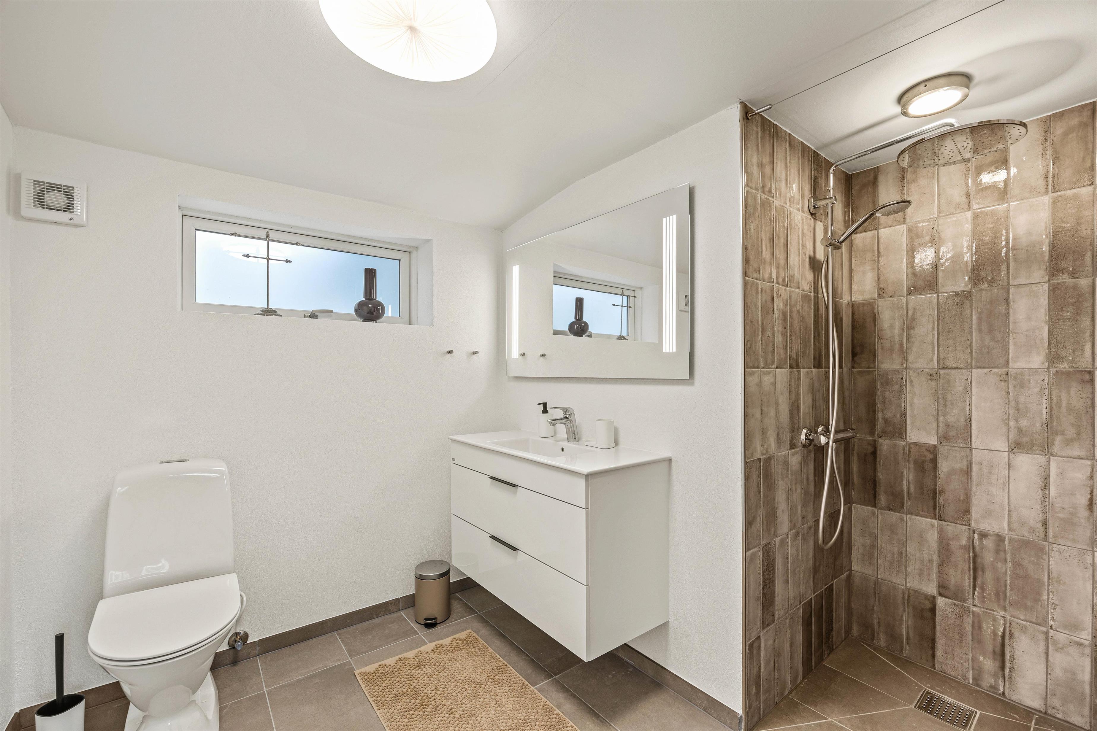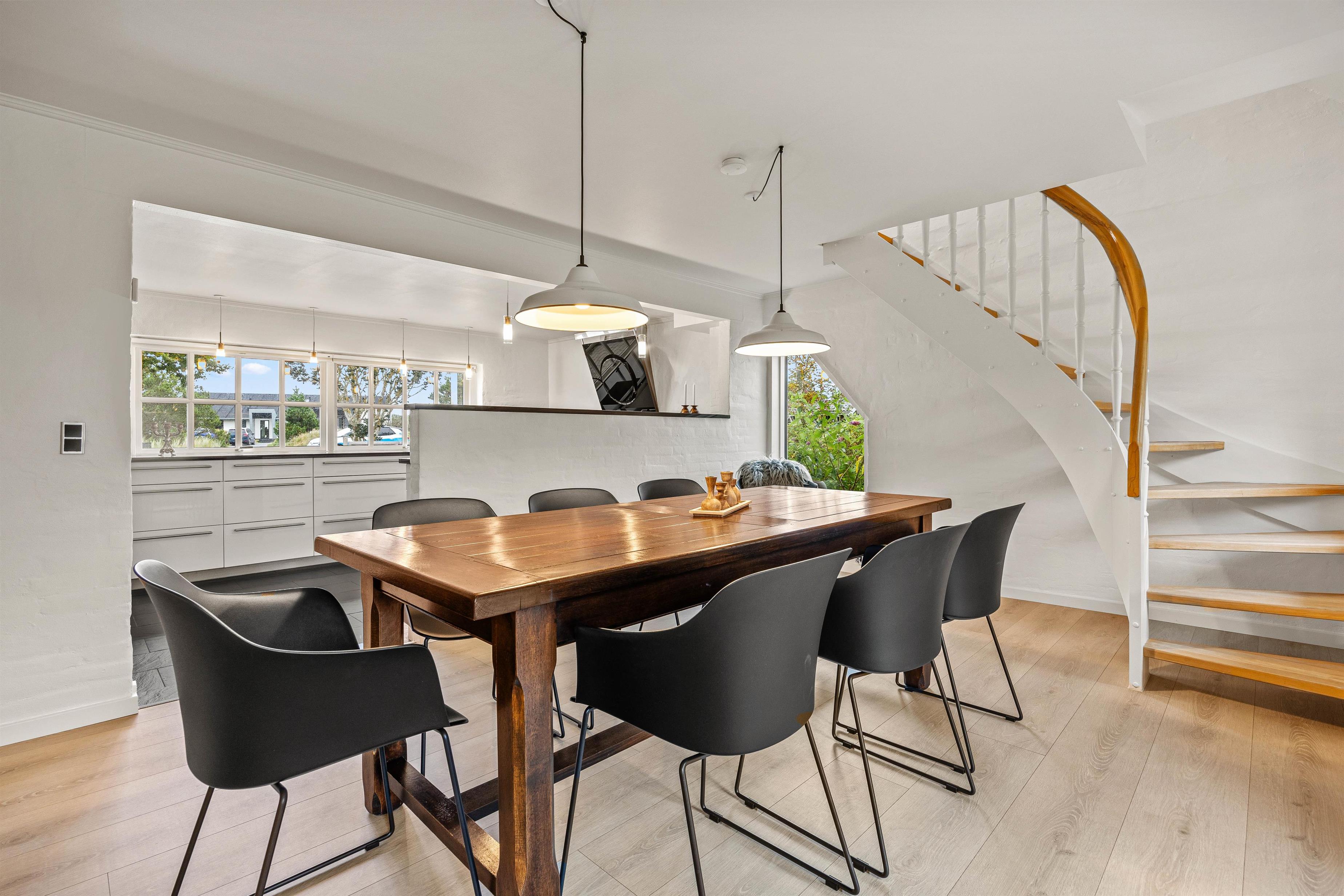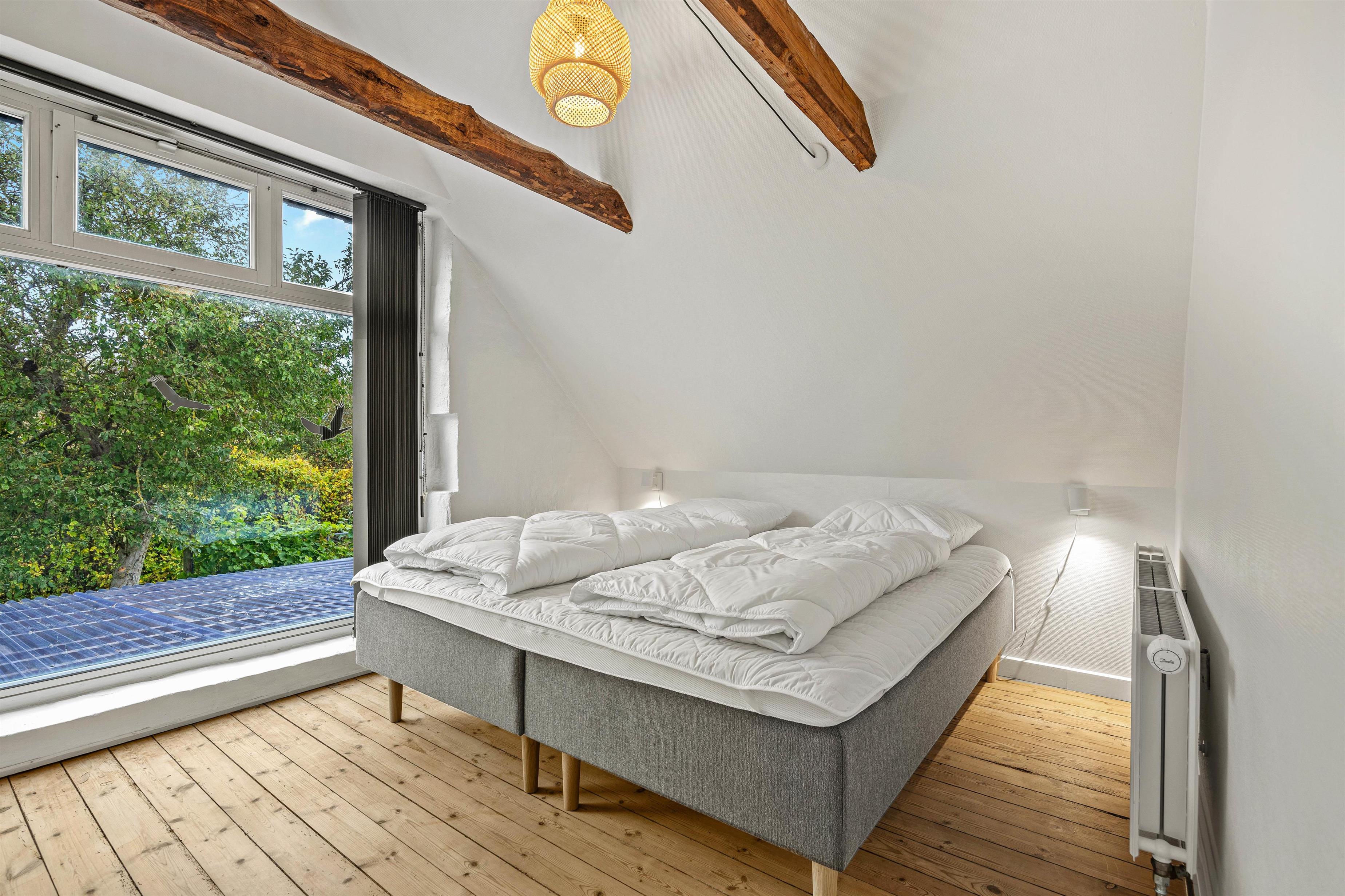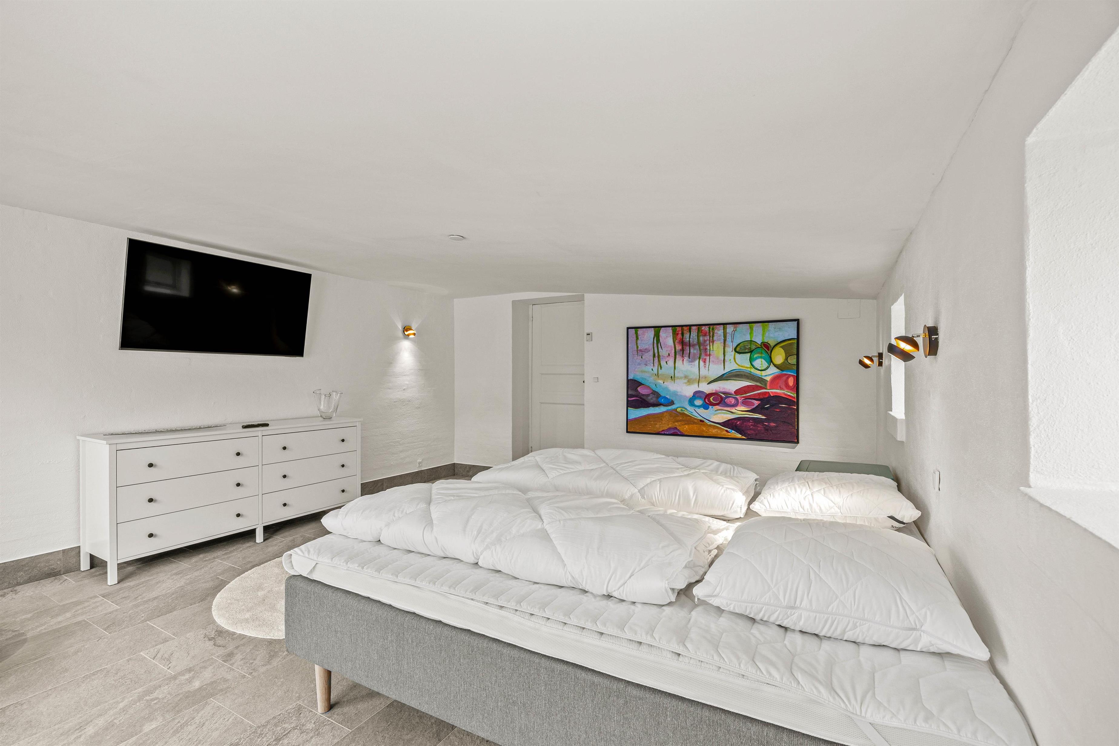 I stuen kan I slappe af over en god film eller med gode samtaler, og de 2 elegante badeværelser byder på gulvvarme til ekstra komfort. Når I er trætte efter spændende feriedage, venter jer 4 flotte, rummelige soveværelser med hver sin dobbeltseng, hvor I kan få ladet batterierne op til nye oplevelser. Et af soveværelserne ligger på 1. sal, som I når via den brugervenlige trappe, og som har fine, originale trægulve. Her er også et gæstetoilet.