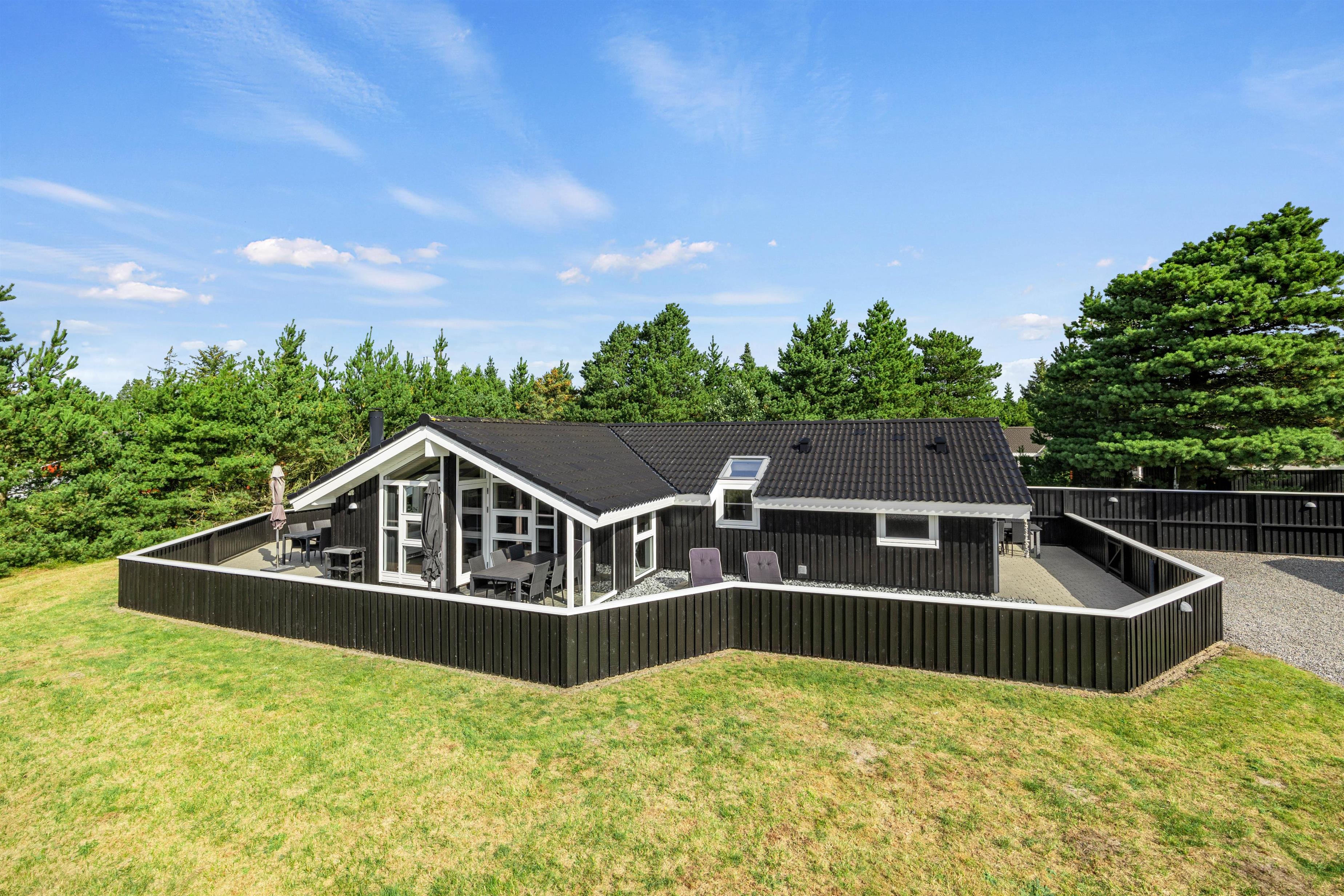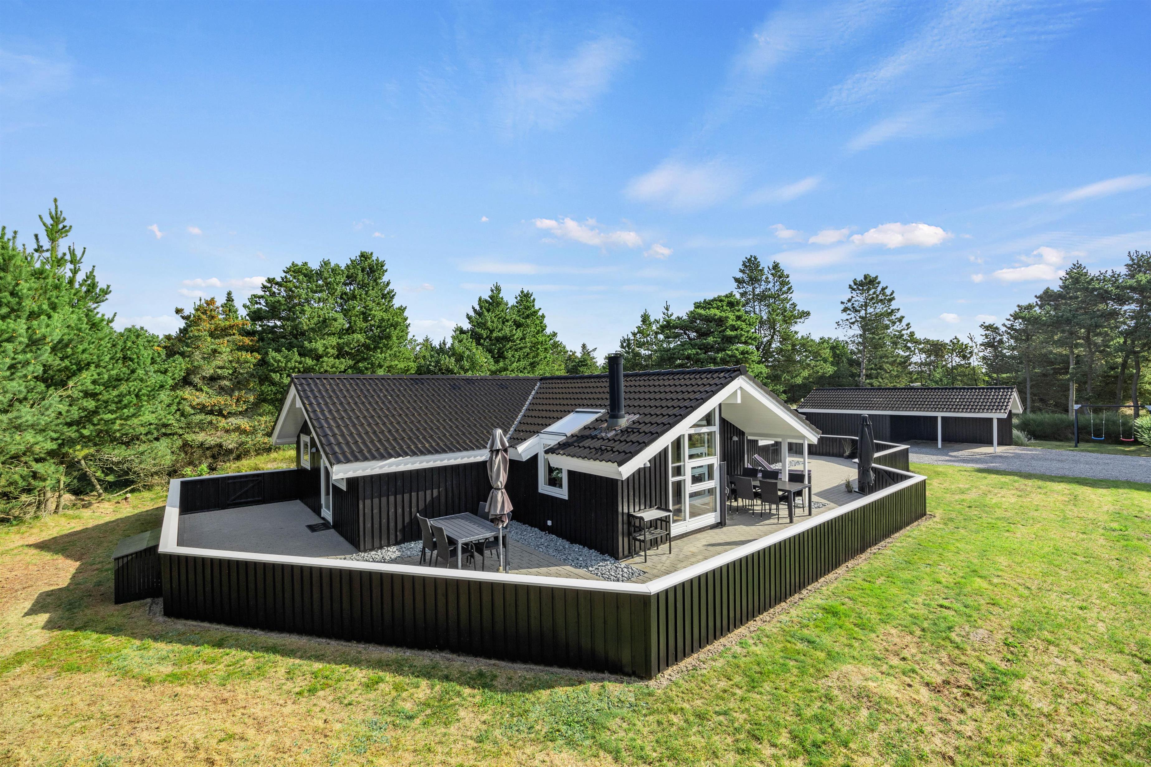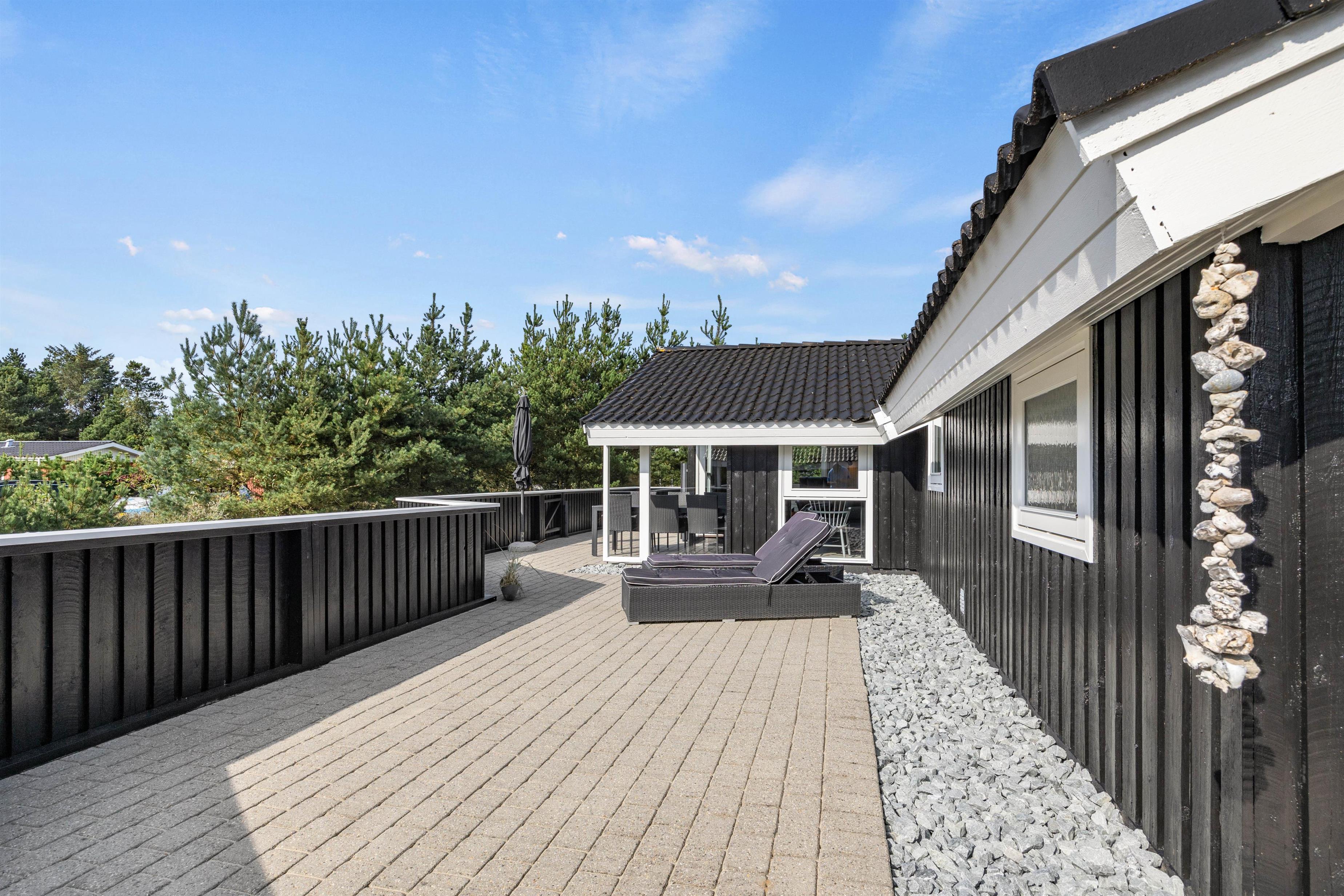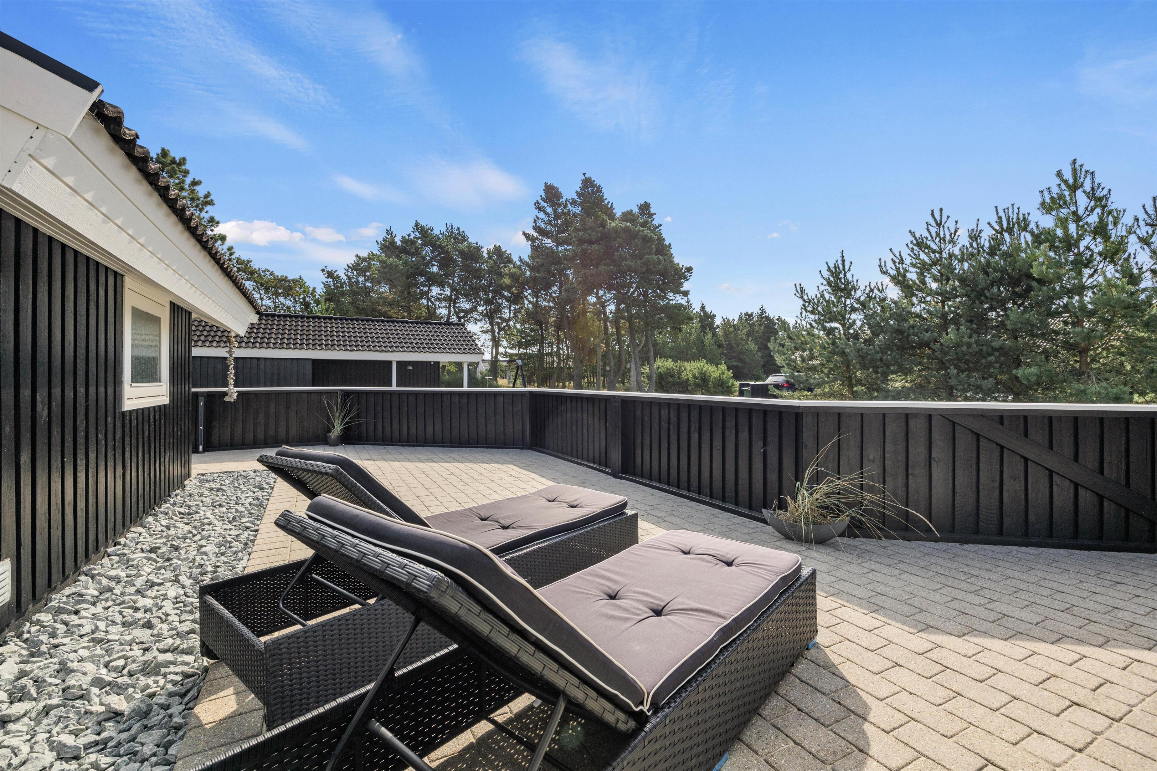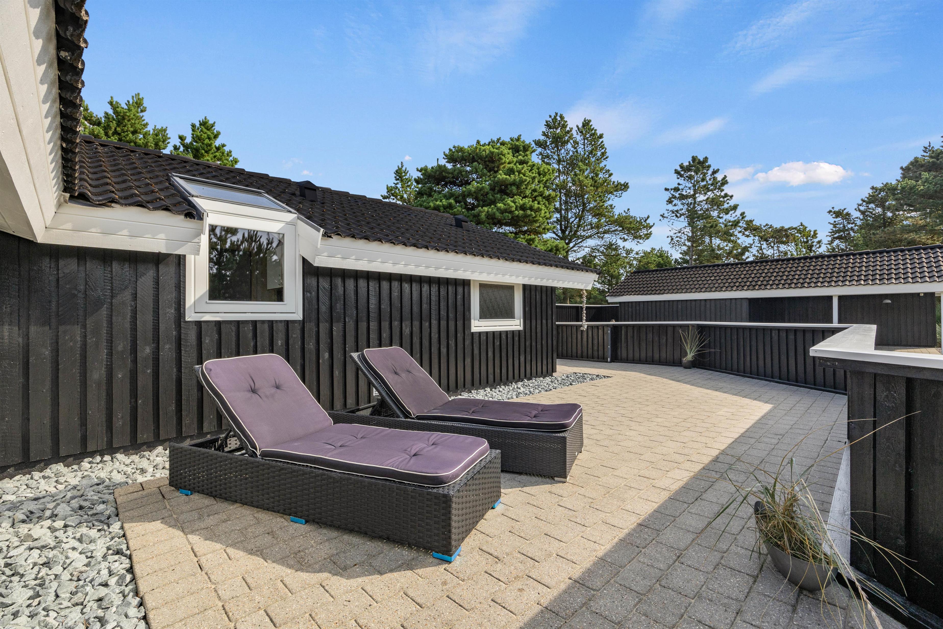 Denne feriebolig i Blåvand er beliggende kun 1600 meter fra havet, hvilket gør det nemt og bekvemt at tage en spontan svømmetur eller nyde en solnedgang ved stranden. Den store grund og de åbne terrasser giver masser af privatliv, så I kan slappe af og nyde jeres ferie fuldt ud.