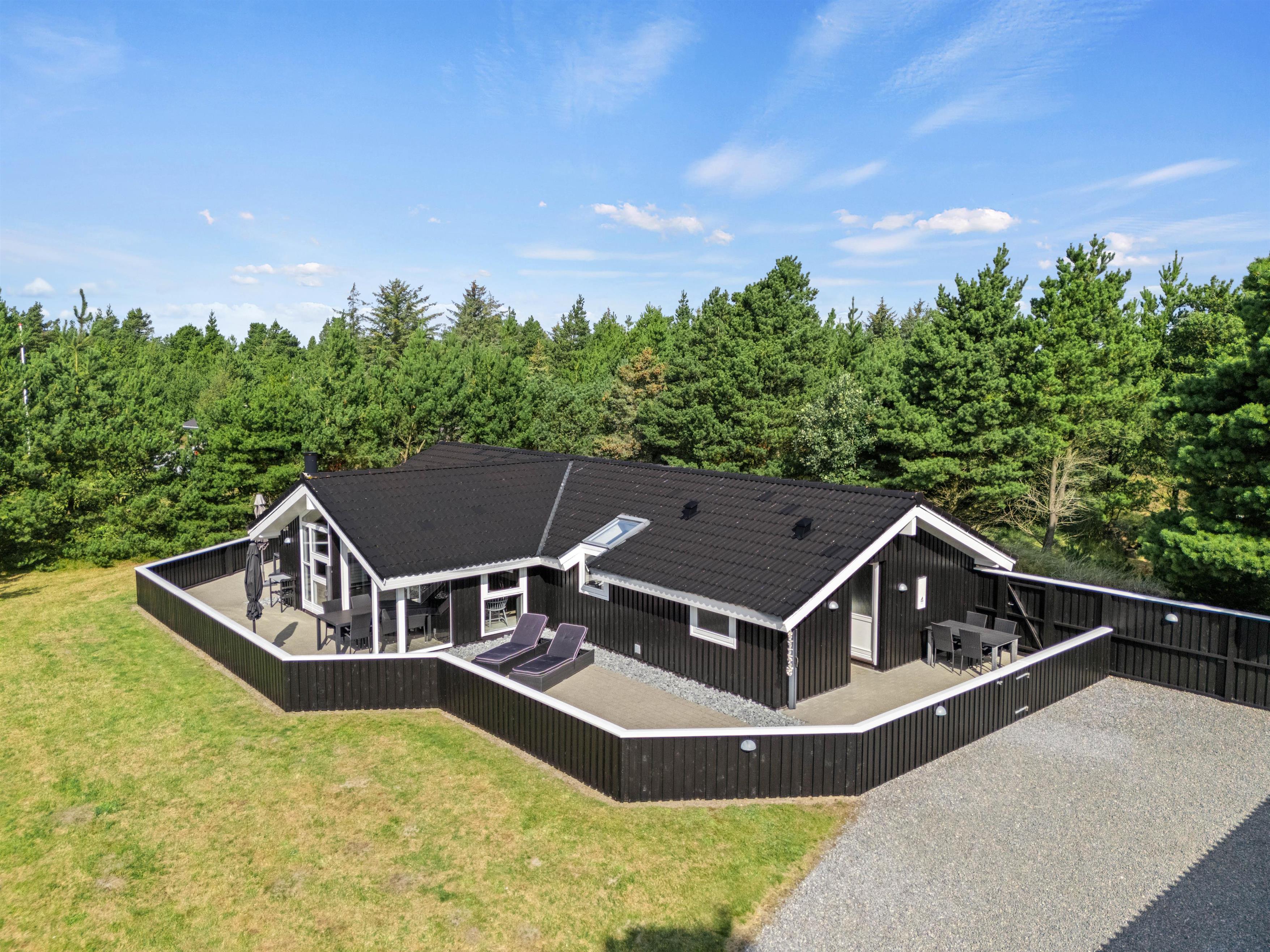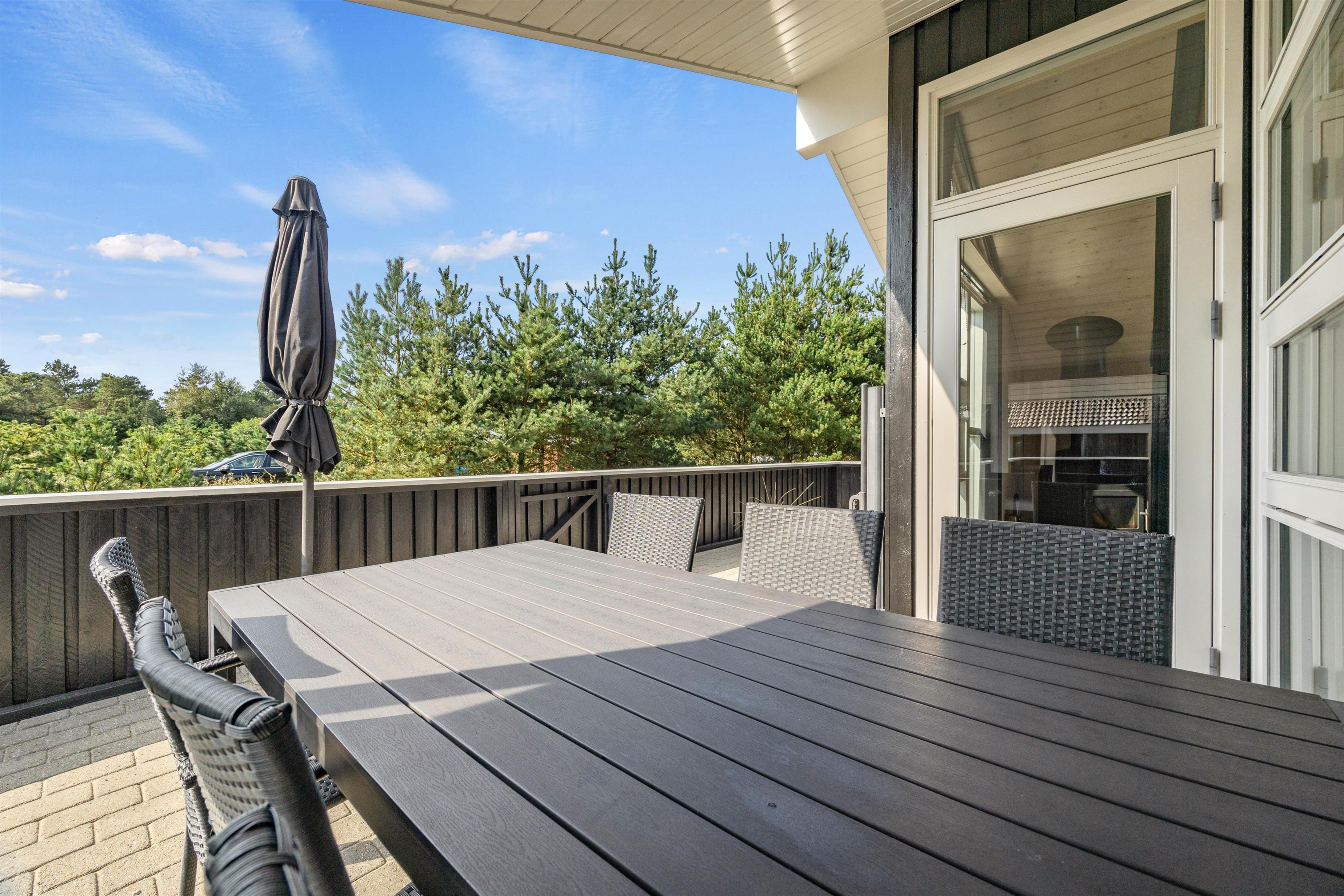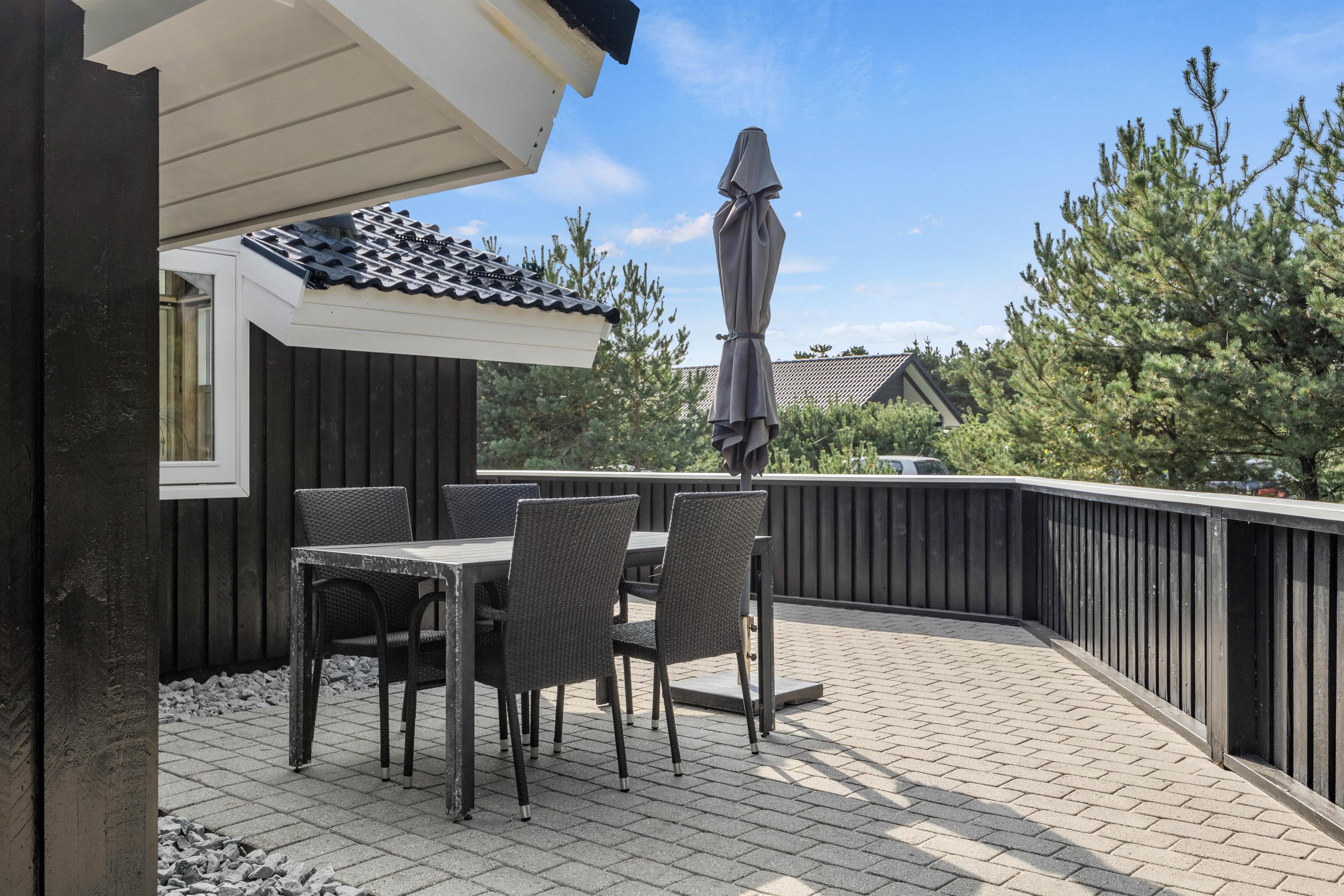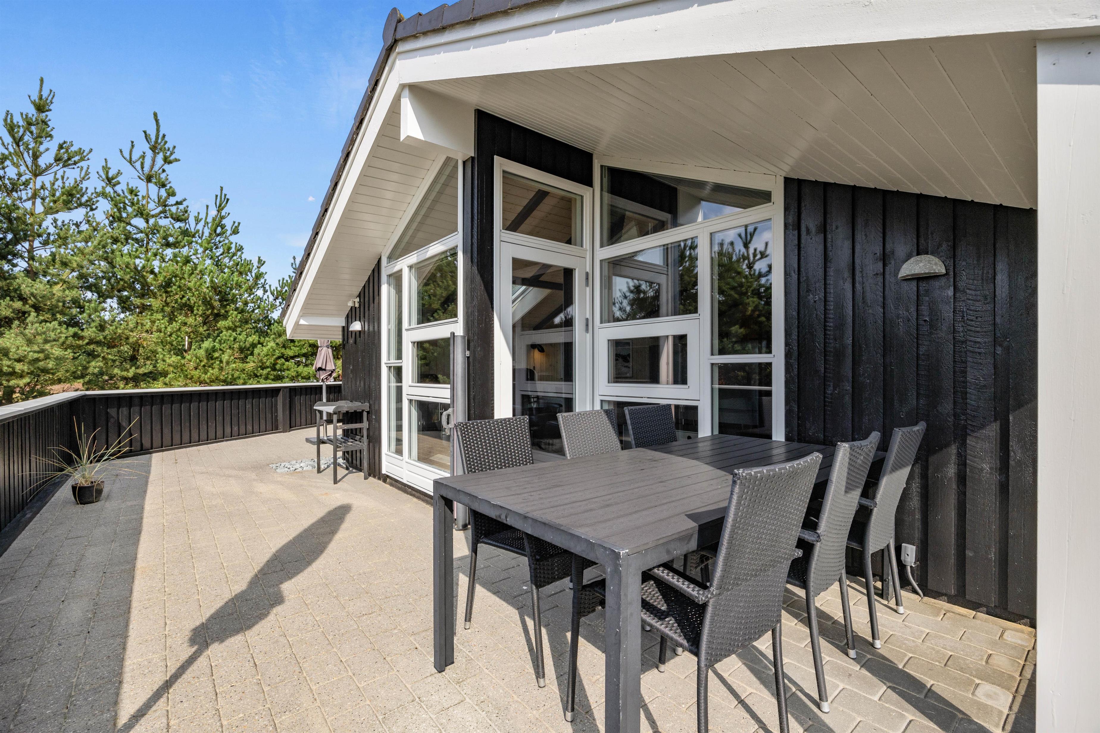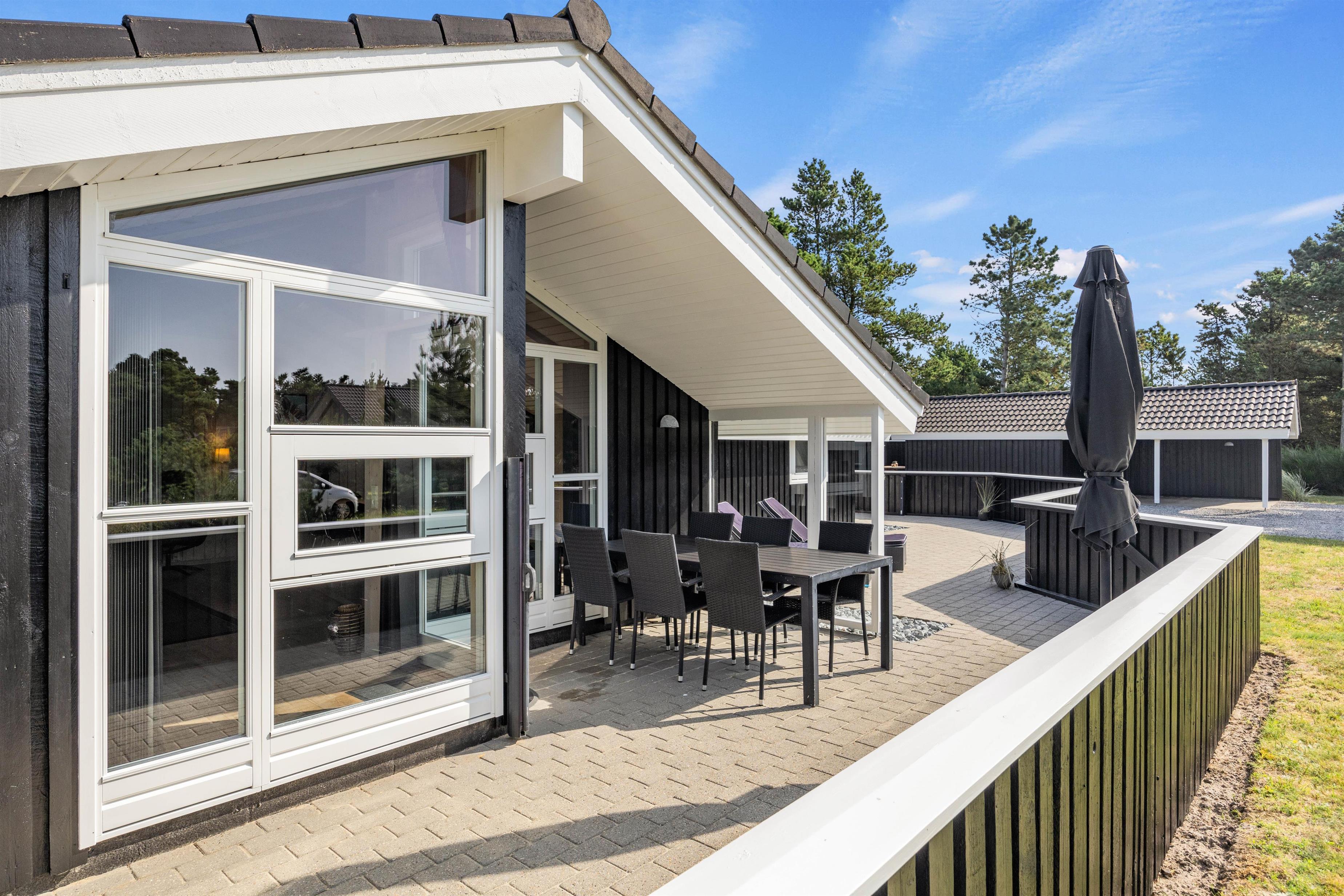 Denne feriebolig i Blåvand er beliggende kun 1600 meter fra havet, hvilket gør det nemt og bekvemt at tage en spontan svømmetur eller nyde en solnedgang ved stranden. Den store grund og de åbne terrasser giver masser af privatliv, så I kan slappe af og nyde jeres ferie fuldt ud.