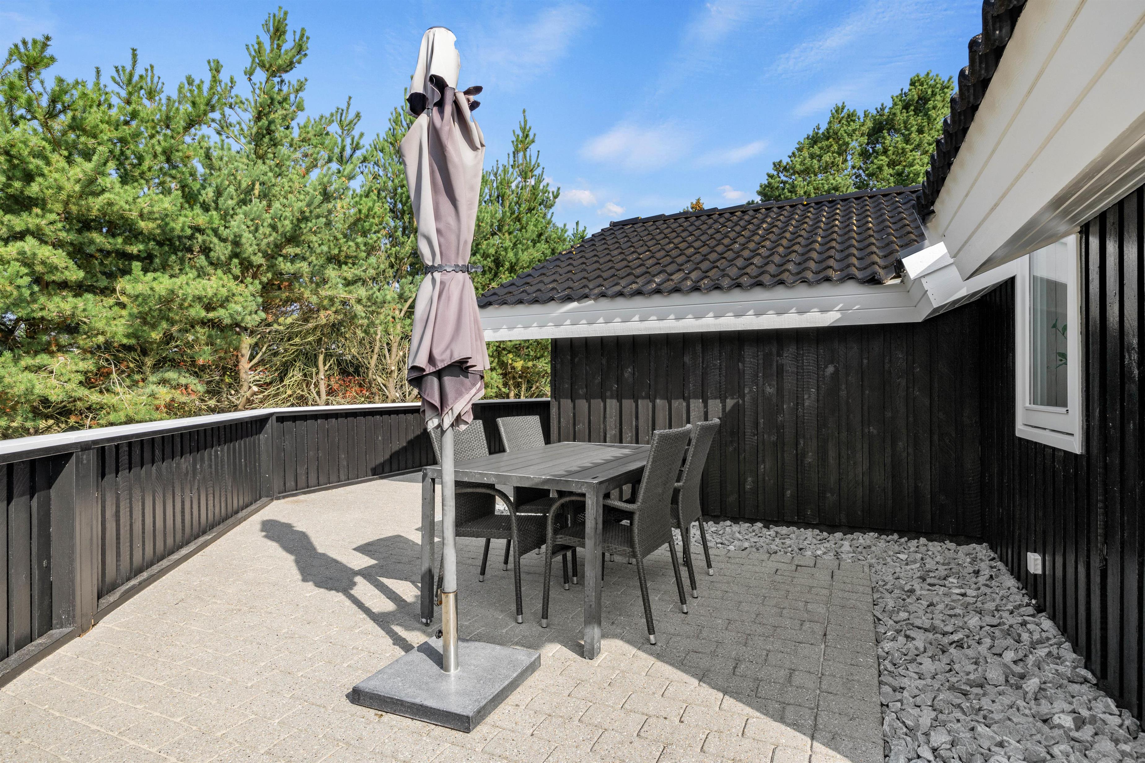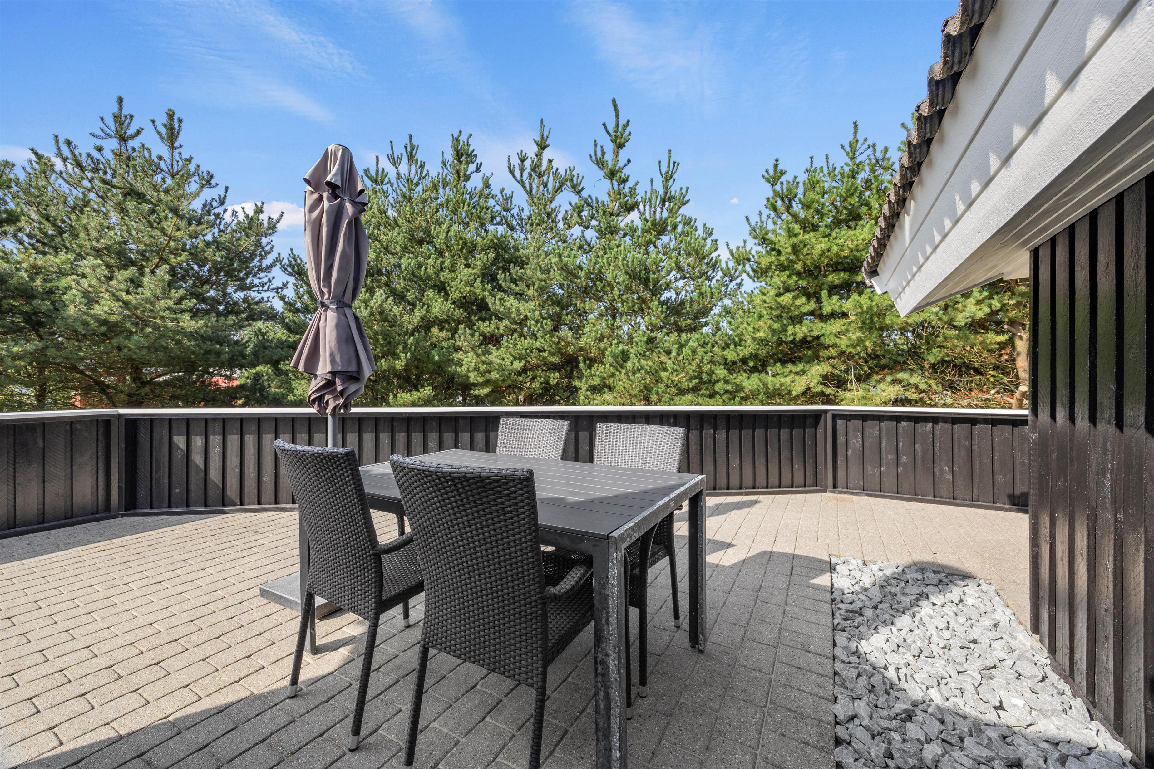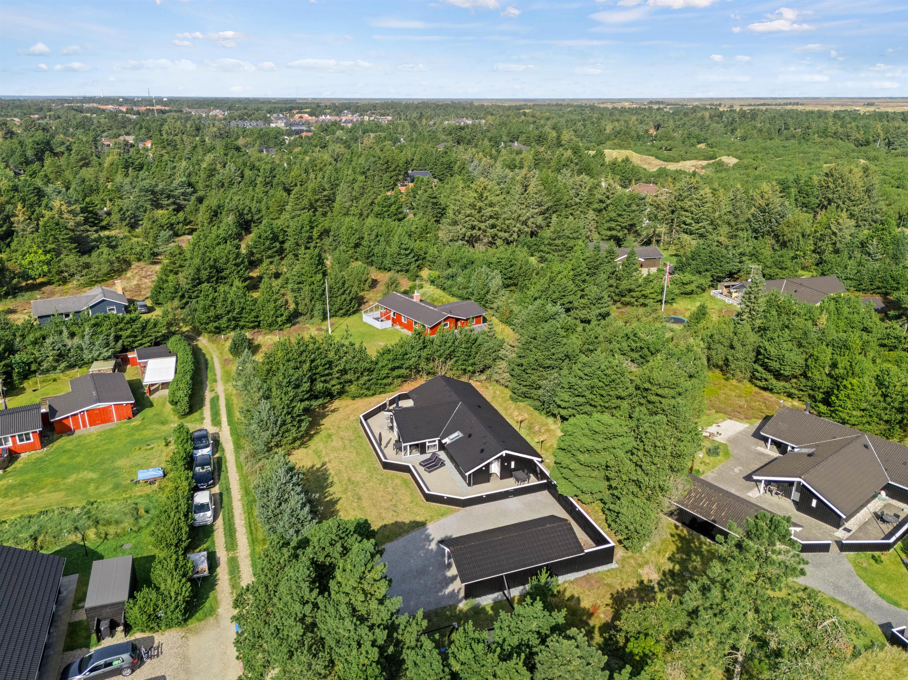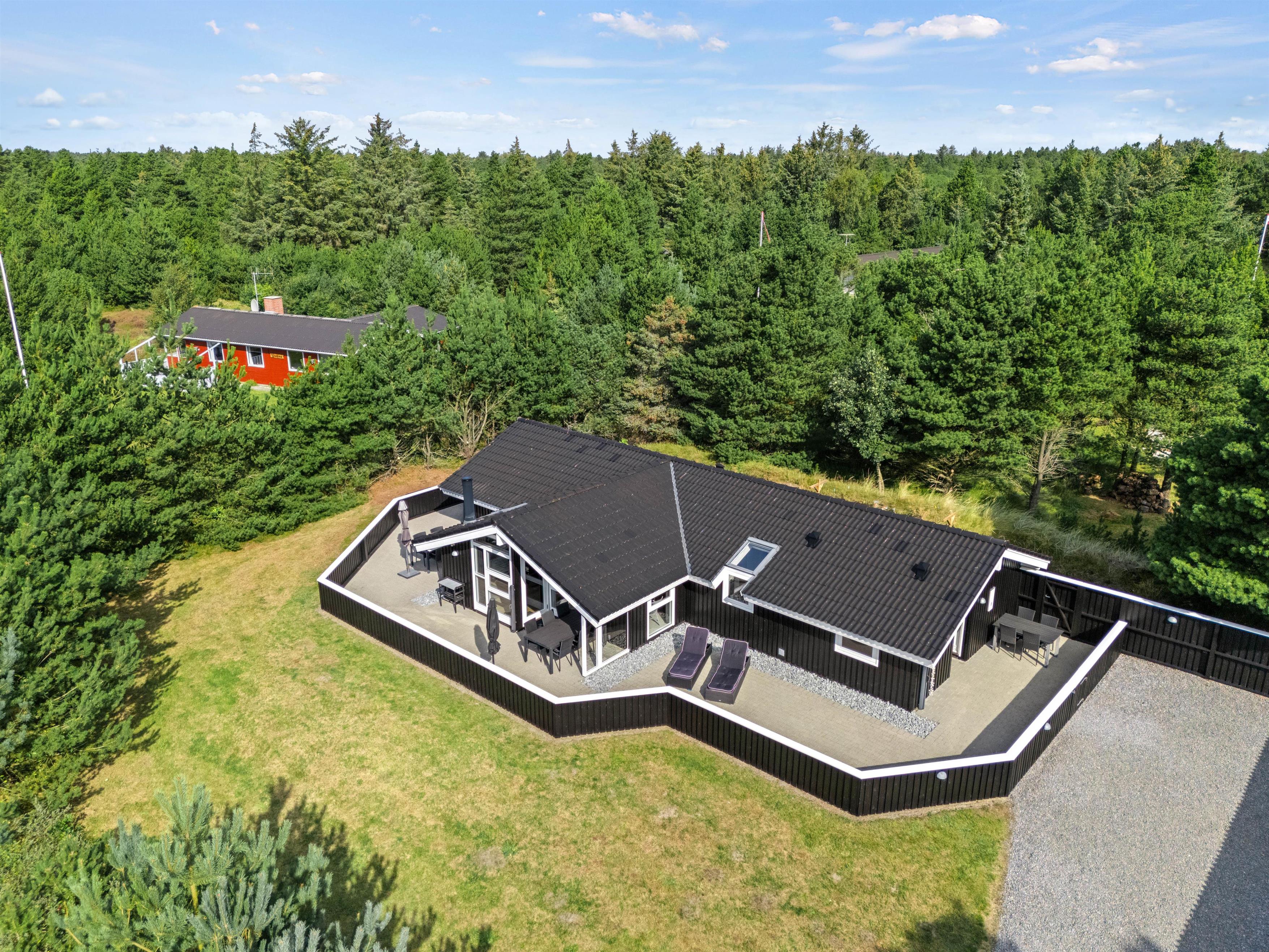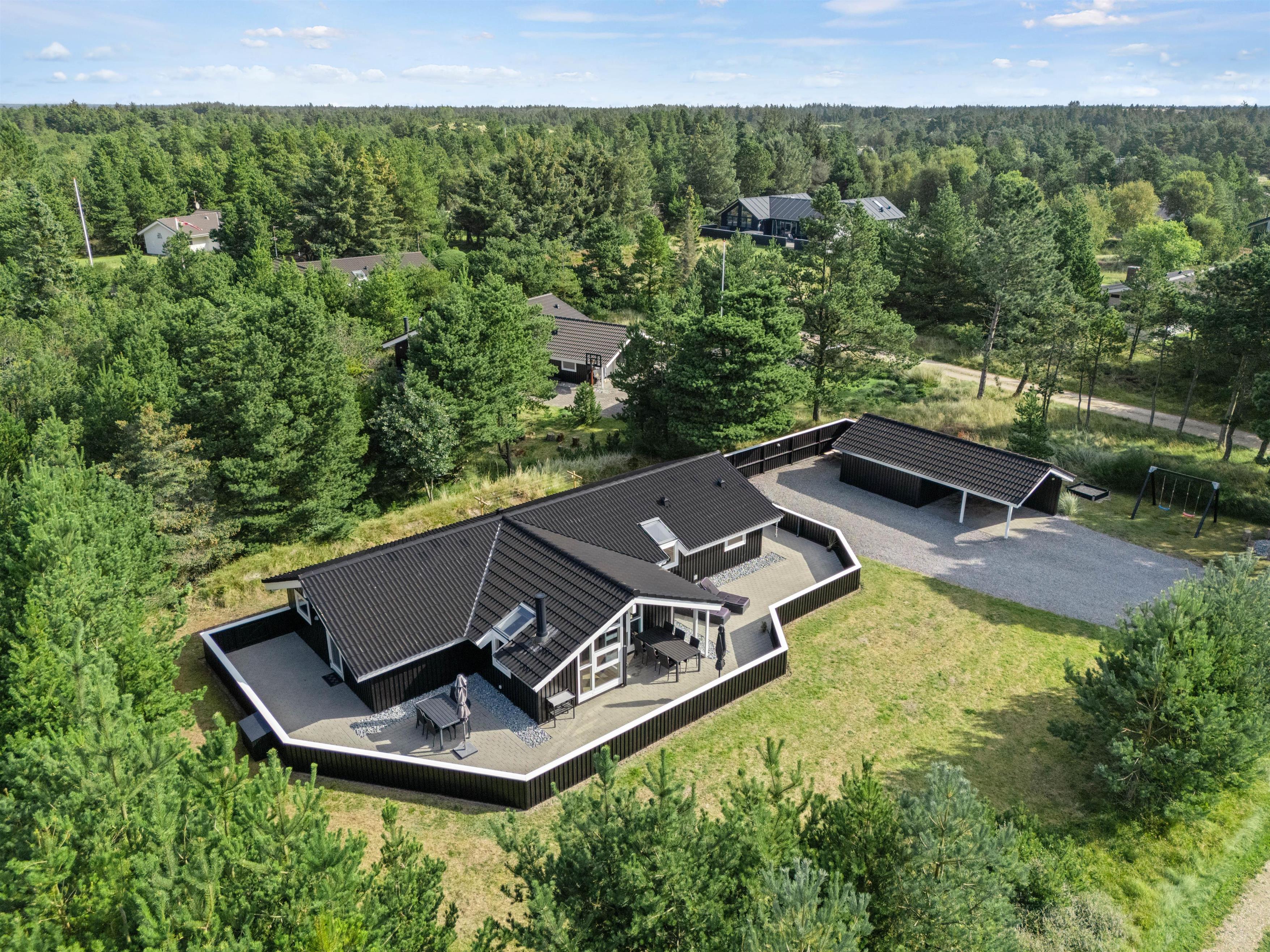 Denne feriebolig i Blåvand er beliggende kun 1600 meter fra havet, hvilket gør det nemt og bekvemt at tage en spontan svømmetur eller nyde en solnedgang ved stranden. Den store grund og de åbne terrasser giver masser af privatliv, så I kan slappe af og nyde jeres ferie fuldt ud.