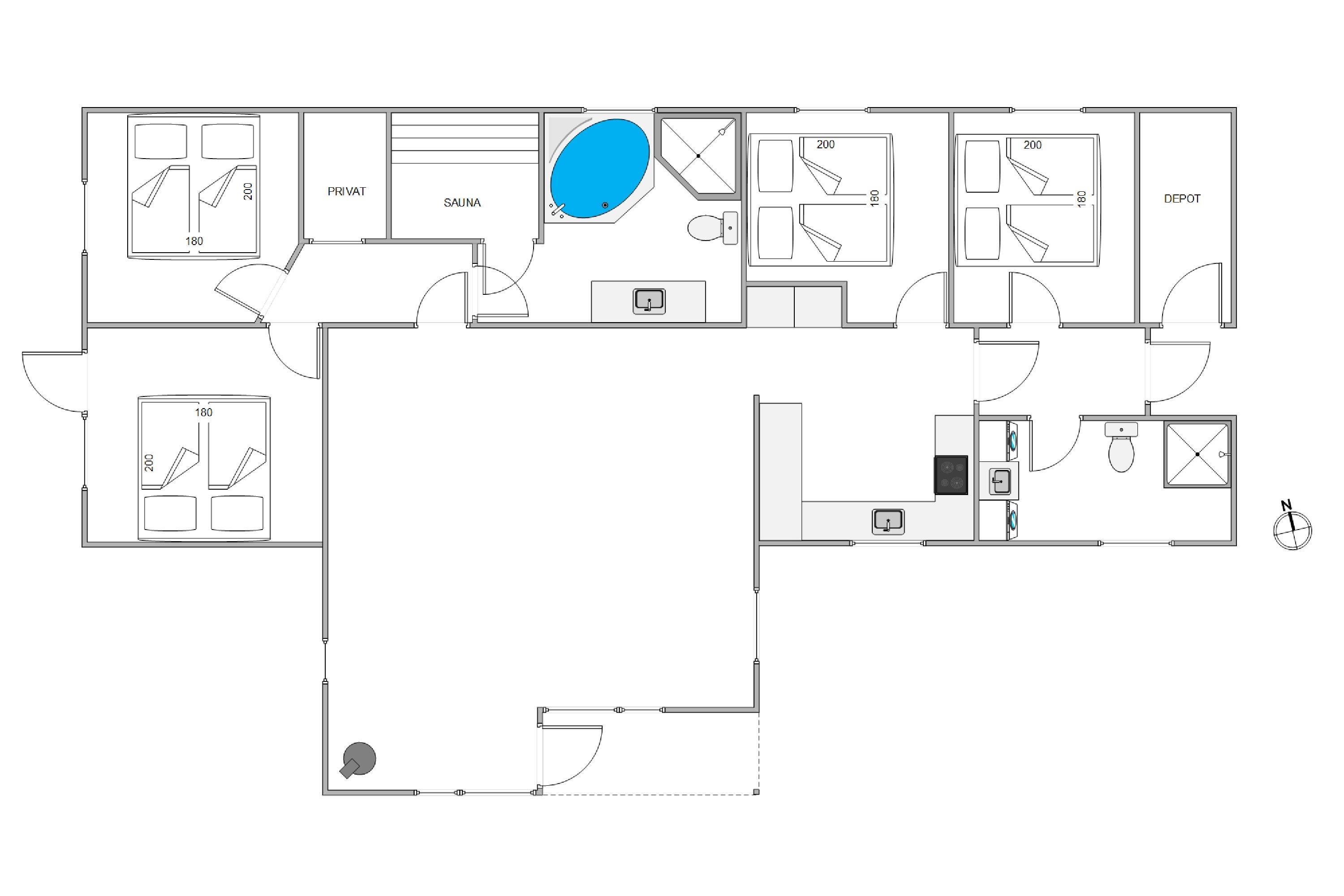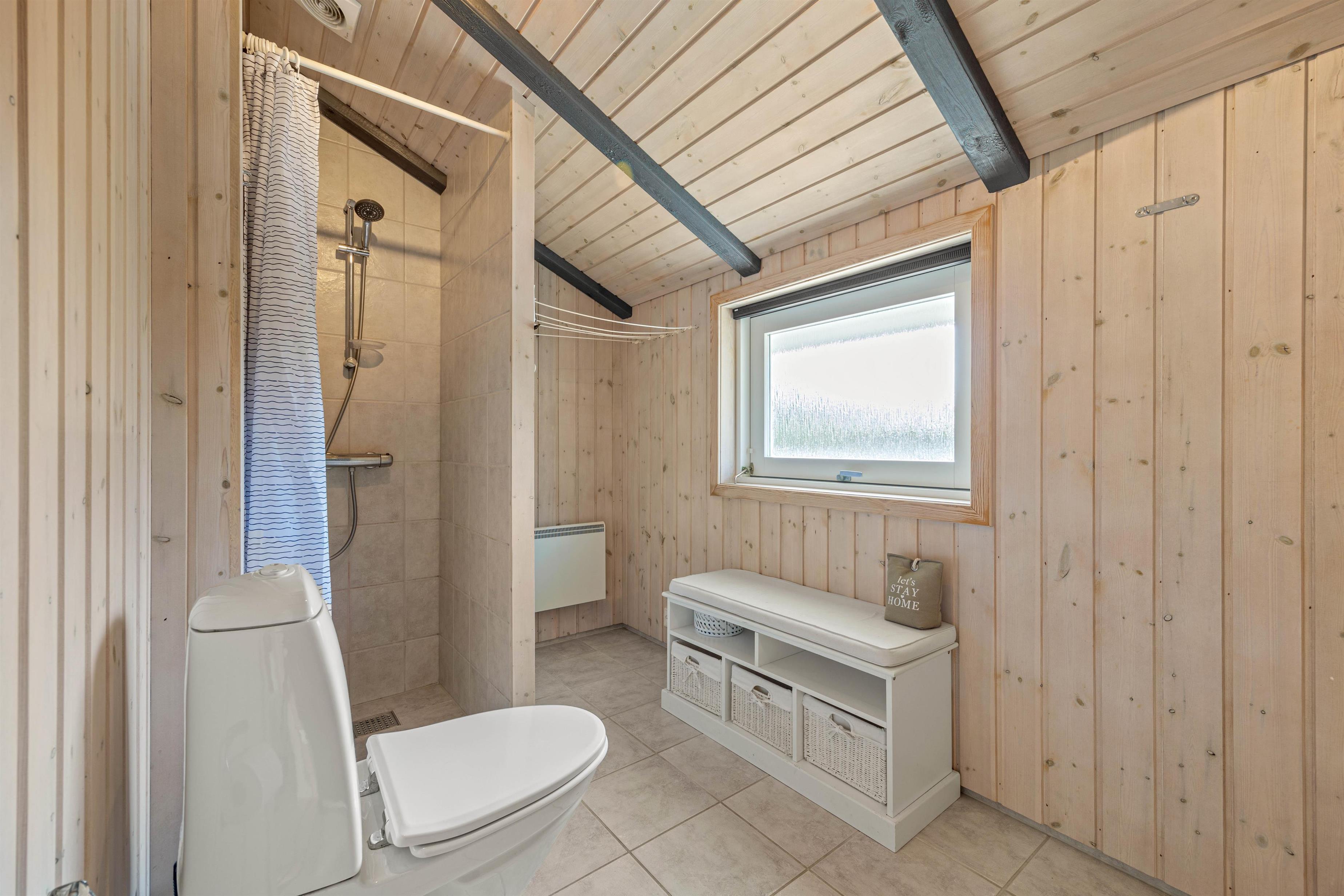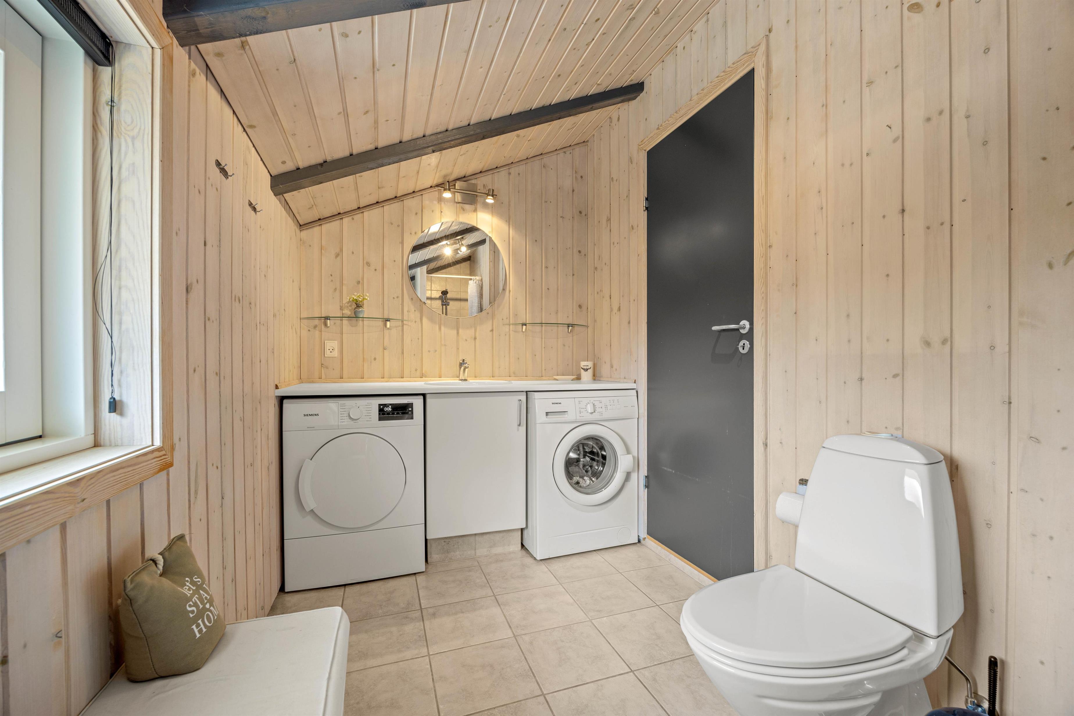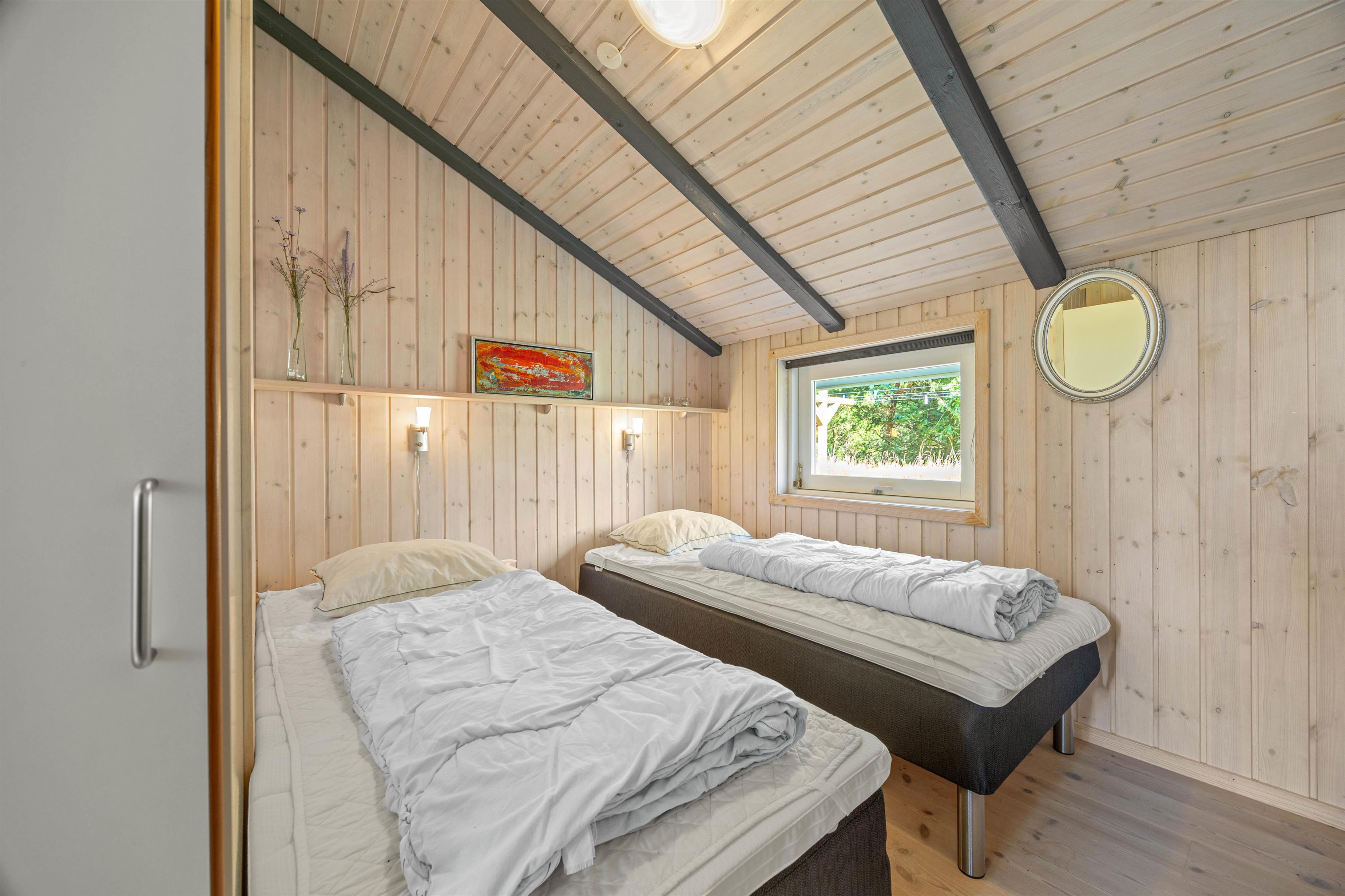 Ferieboligen er udstyret med en brændeovn, der sørger for hyggelig varme i de kølige aftenstimer. Det rummelige hus på 121 m2 rummer fire soveværelser, hver med en dobbeltseng, som sikrer optimal komfort for op til 8 personer. To moderne badeværelser med gulvvarme betyder, at der aldrig vil være kø om morgenen. En tørretumbler og vaskemaskine er også til jeres rådighed, så håndklæder kan holdes friske i ferien.