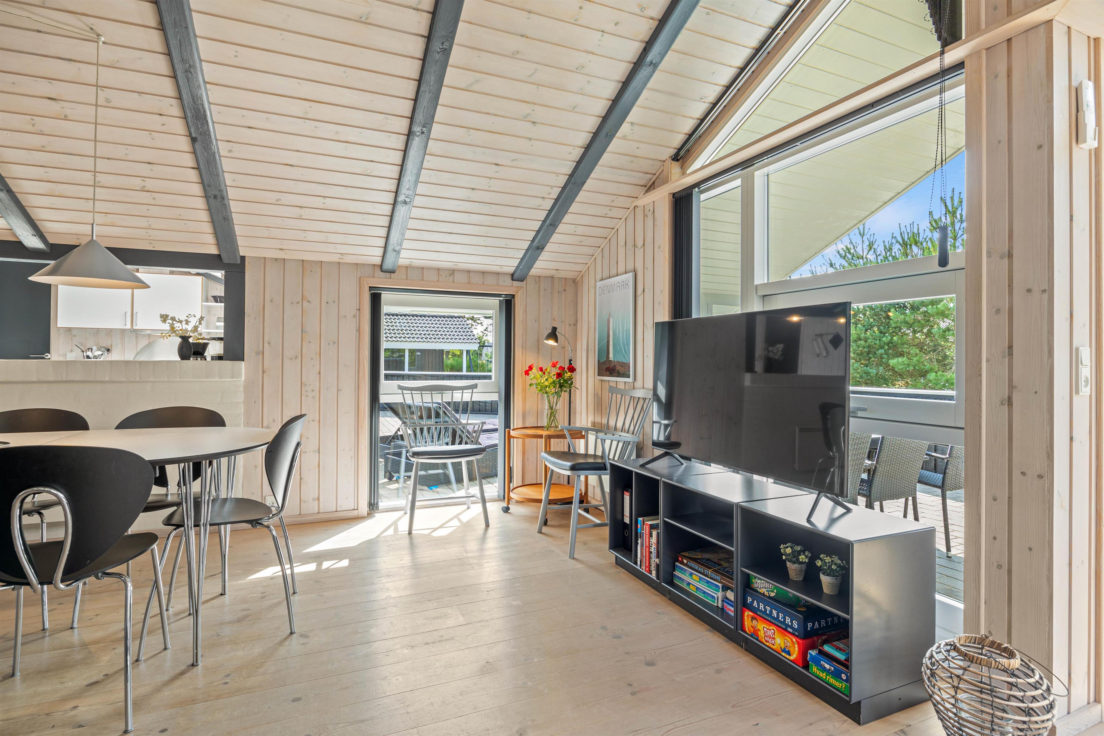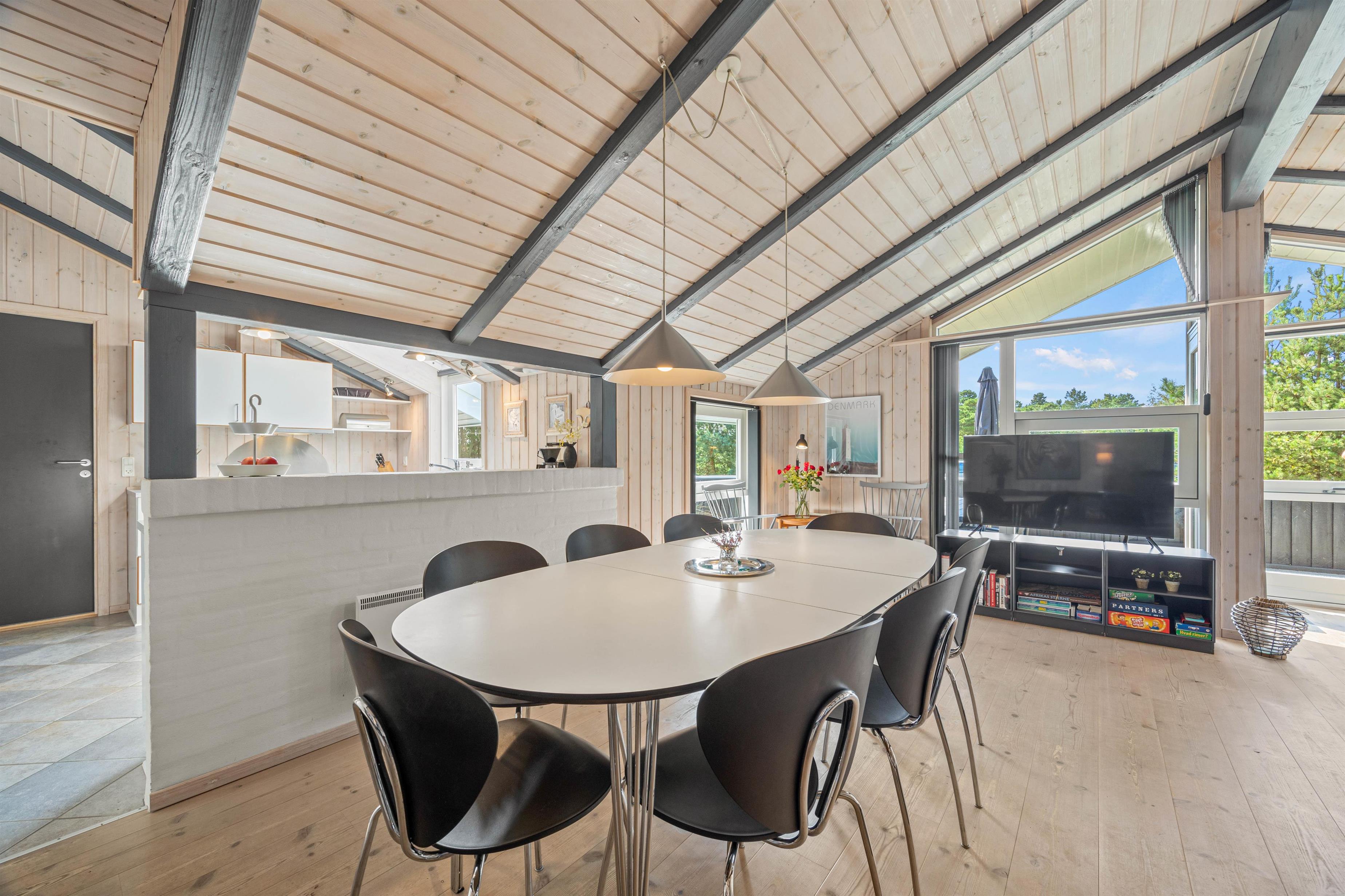 Dette feriehus i Blåvand er udstyret med en luft til luft varmepumpe for at sikre bæredygtig behagelig opvarmning af feriehuset. Der er endda installeret et ladestik til el-biler i carporten, så hvis I kører grønt, er dette det perfekte sted for jer.