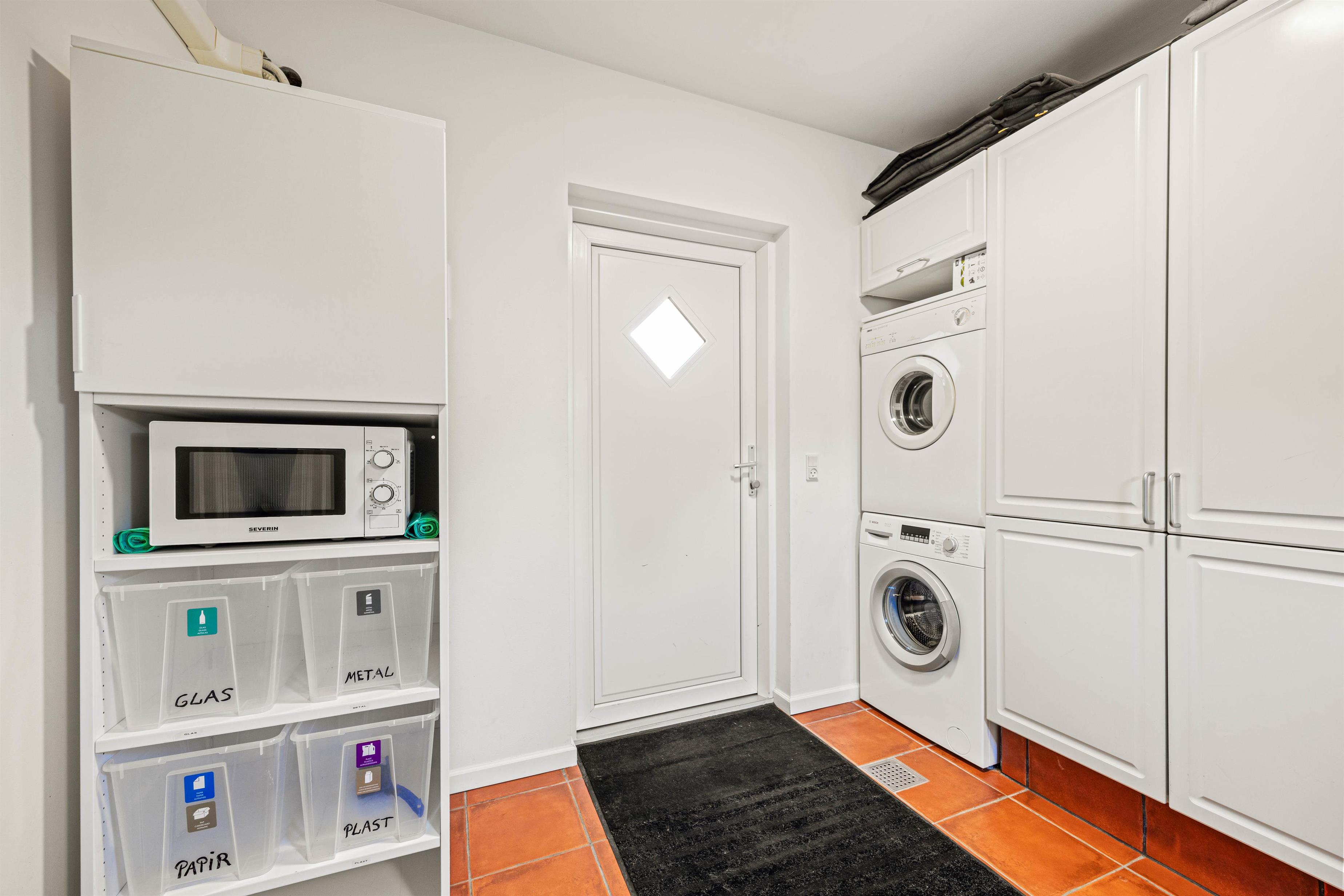 Vaskemaskine, tørretumbler, fryser, opvaskemaskine, mikroovn og gulvvarmen i badeværelset sørger for, at I har hele pakken her.