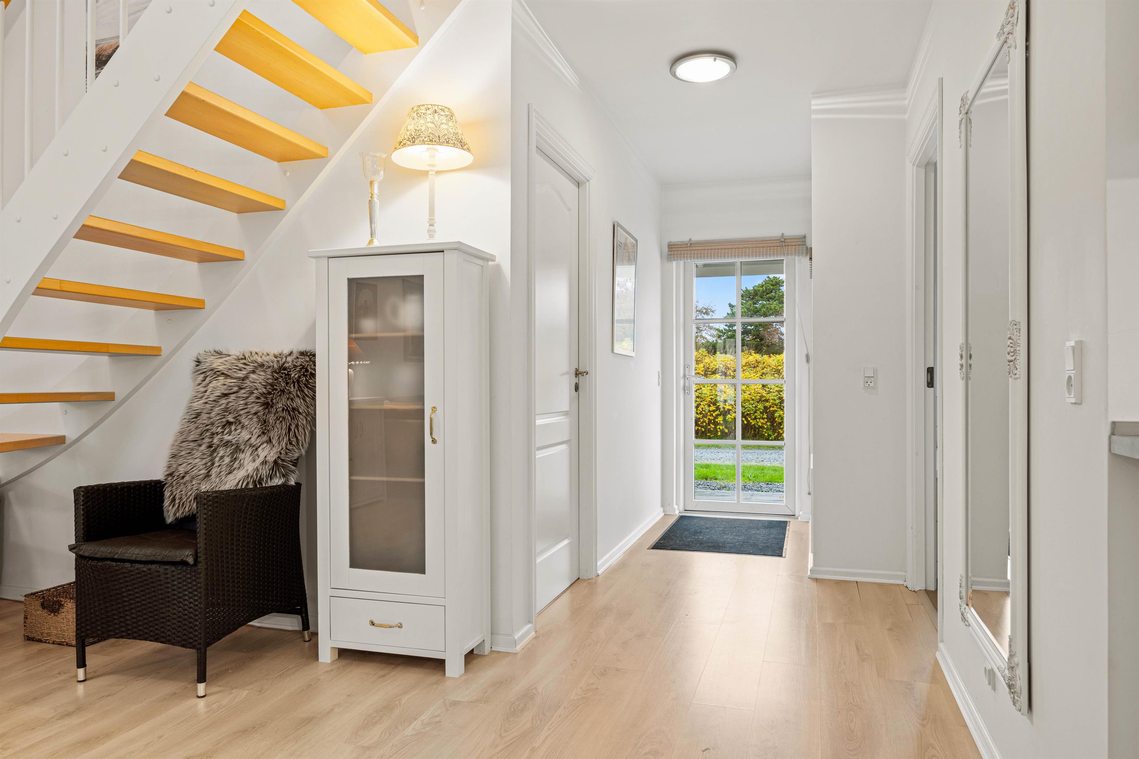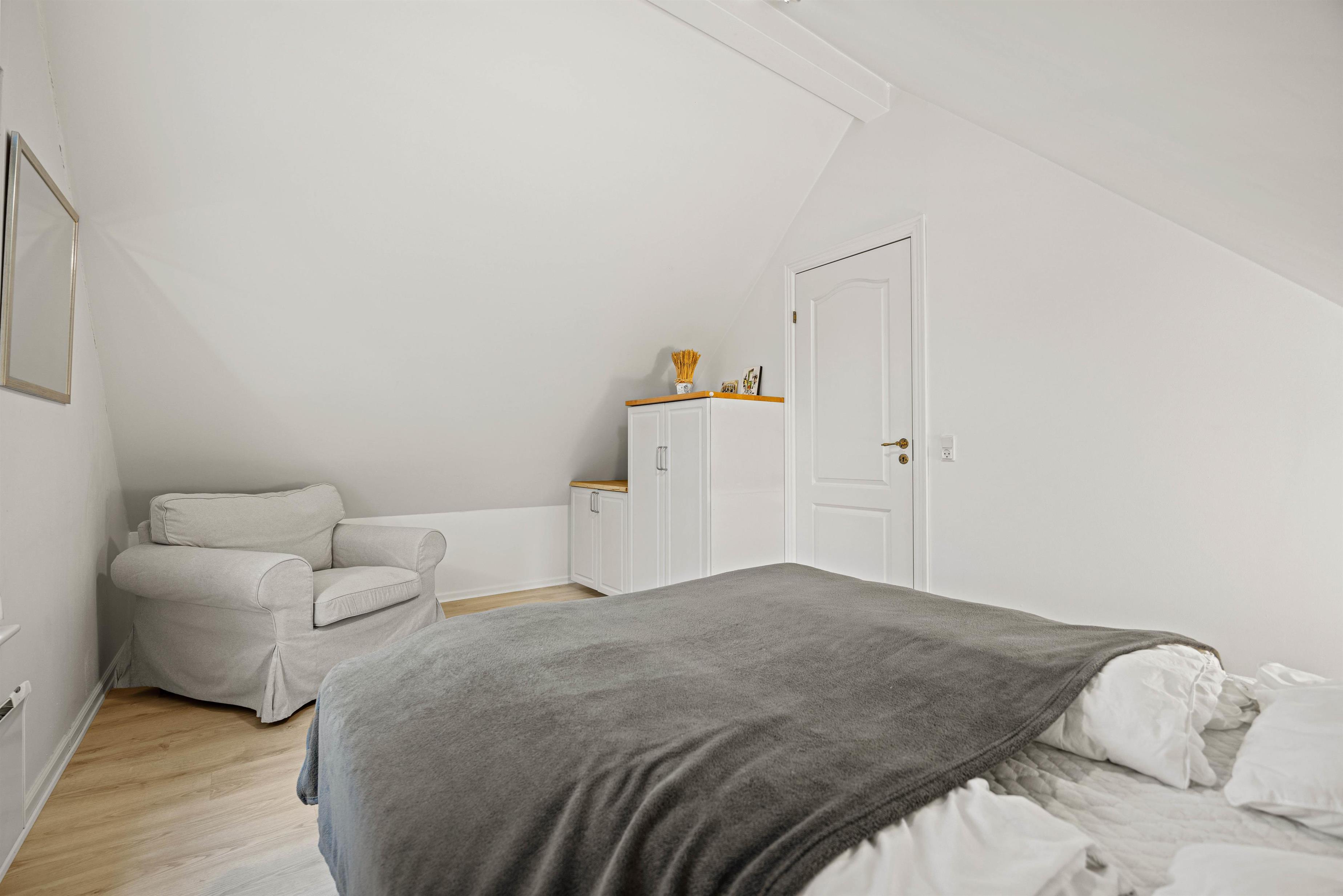 På 1. sal er der et nyt gæstetoilet til rådighed. Her finder I også en alkove med madras, som børnene vil elske at lege og hygge sig på. Her er desuden 2 store rummelige værelser.