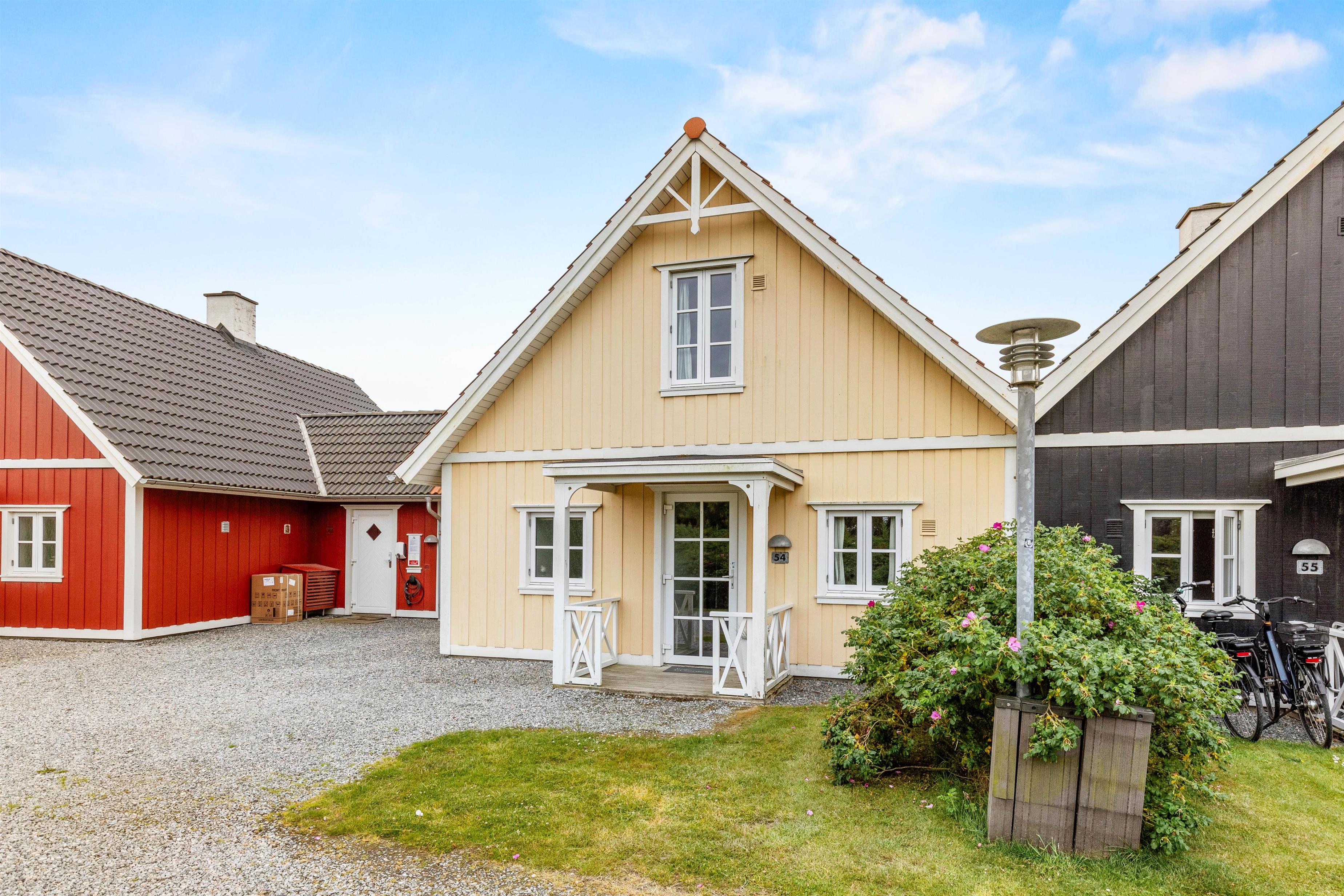 Beliggenheden på Horns Bjerge 3, 54, er helt perfekt: det gule træhus med sine hvide sprossevinduer ligger i det charmerende Blåvands Lyst, og her bor I kun få minutters gang fra feriebyens hjerte med et hav af butikker, restauranter og caféer.