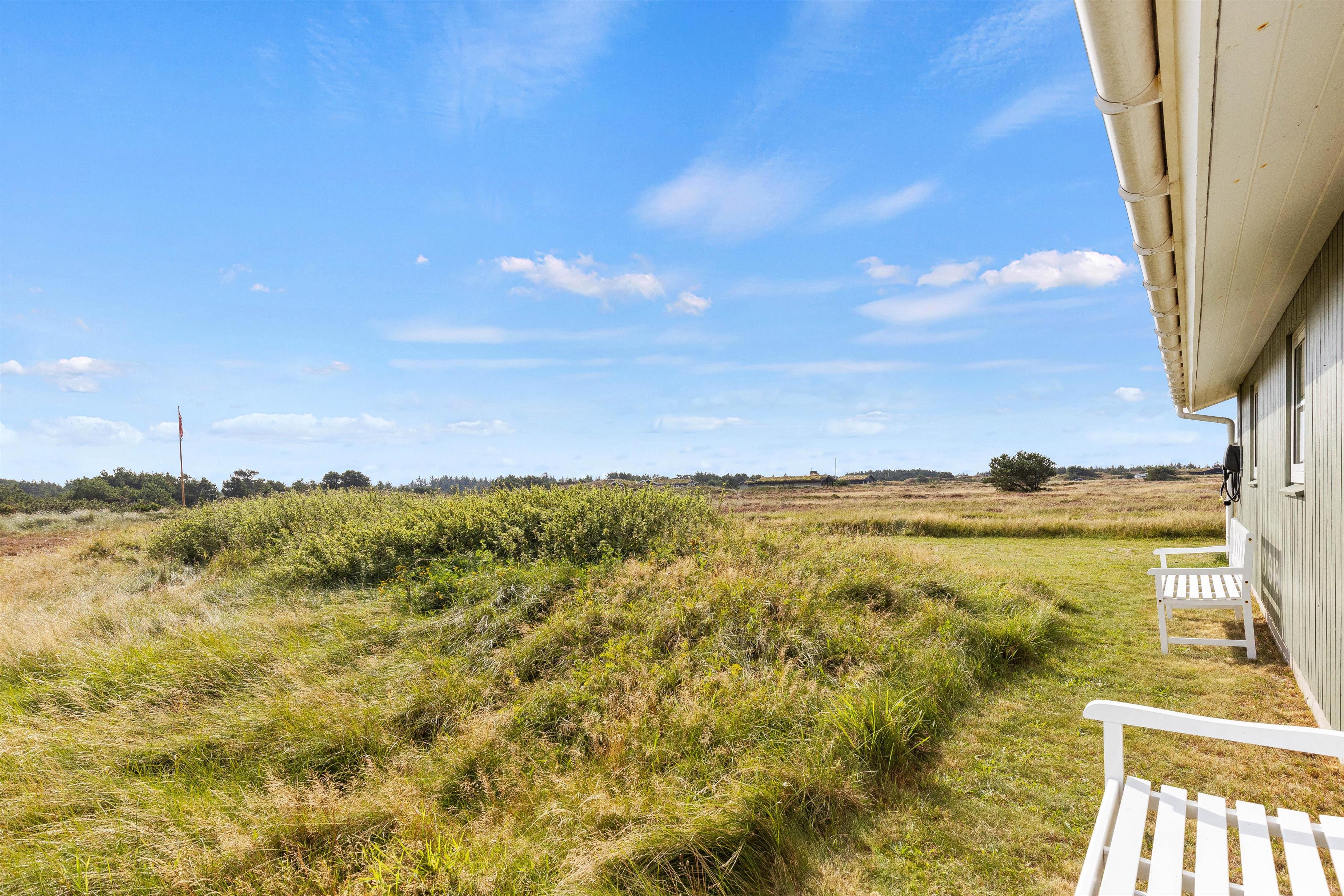Udenfor, i den lukkede gård, kan I holde styr på både børn samt hunde og grille, ligesom der på den anden side af havelågen er gynger og sandkasse til børnene samt borde og bænke hele vejen rundt om huset, så I kan følge solens gang gennem dagen.