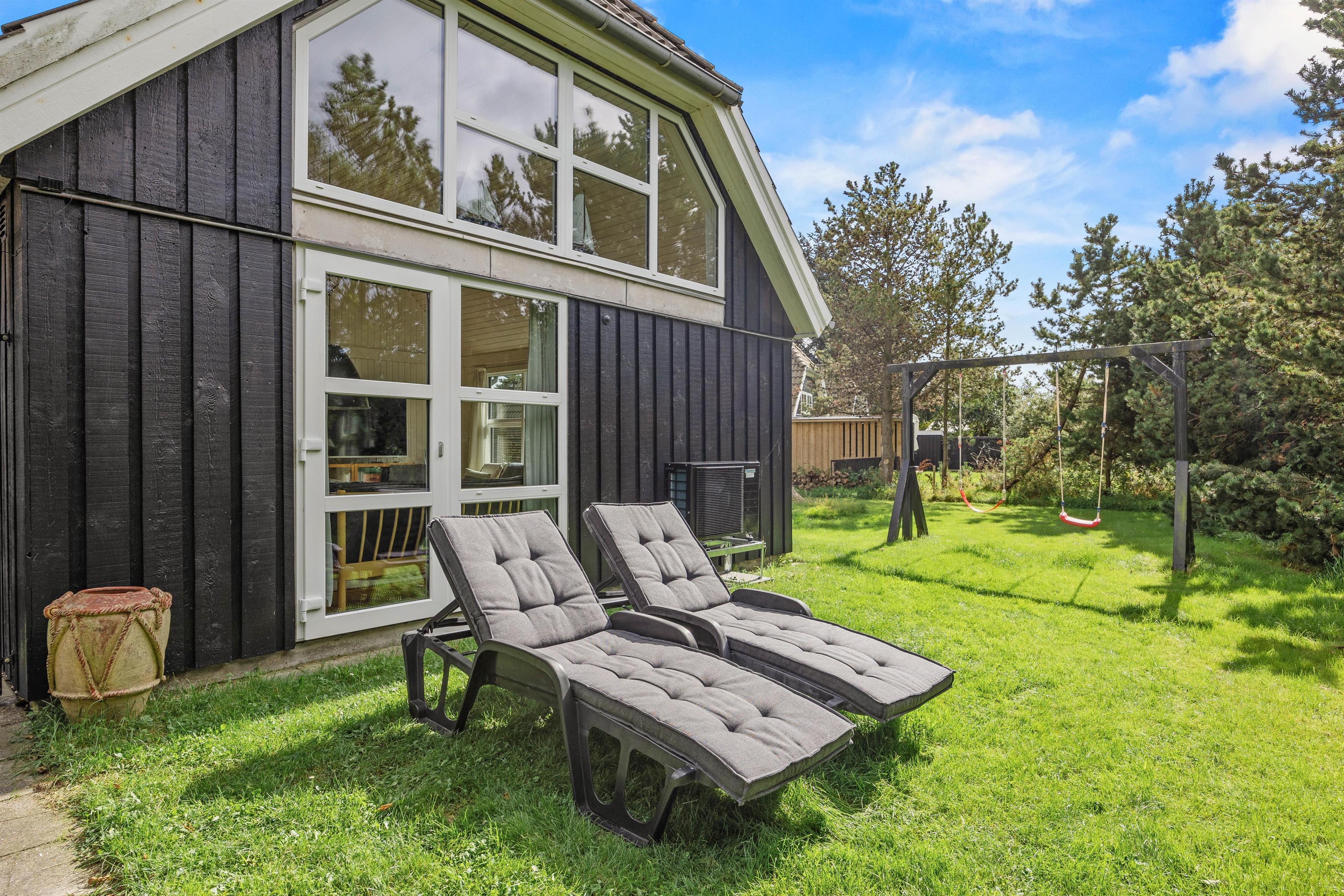 Også udendørs kan I tilbringe mange skønne timer med familien ved sommerhuset. Grunden er omkranset af træer og buske, så I kan hygge jer i fred og ro på den afskærmede terrasse. Sæt dig godt tilrette i en liggestol med en spændende krimi og nyd sommerdagen her.