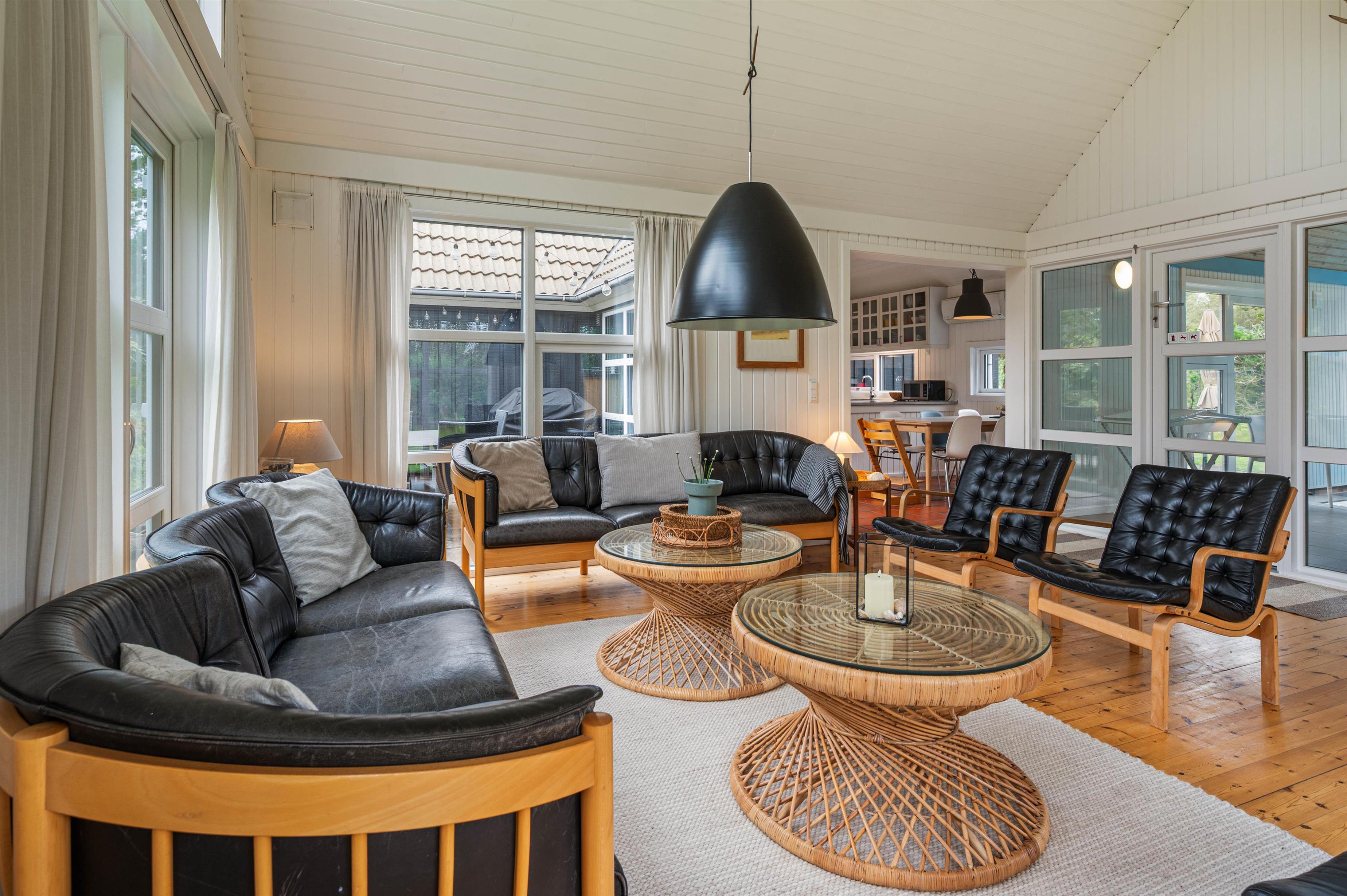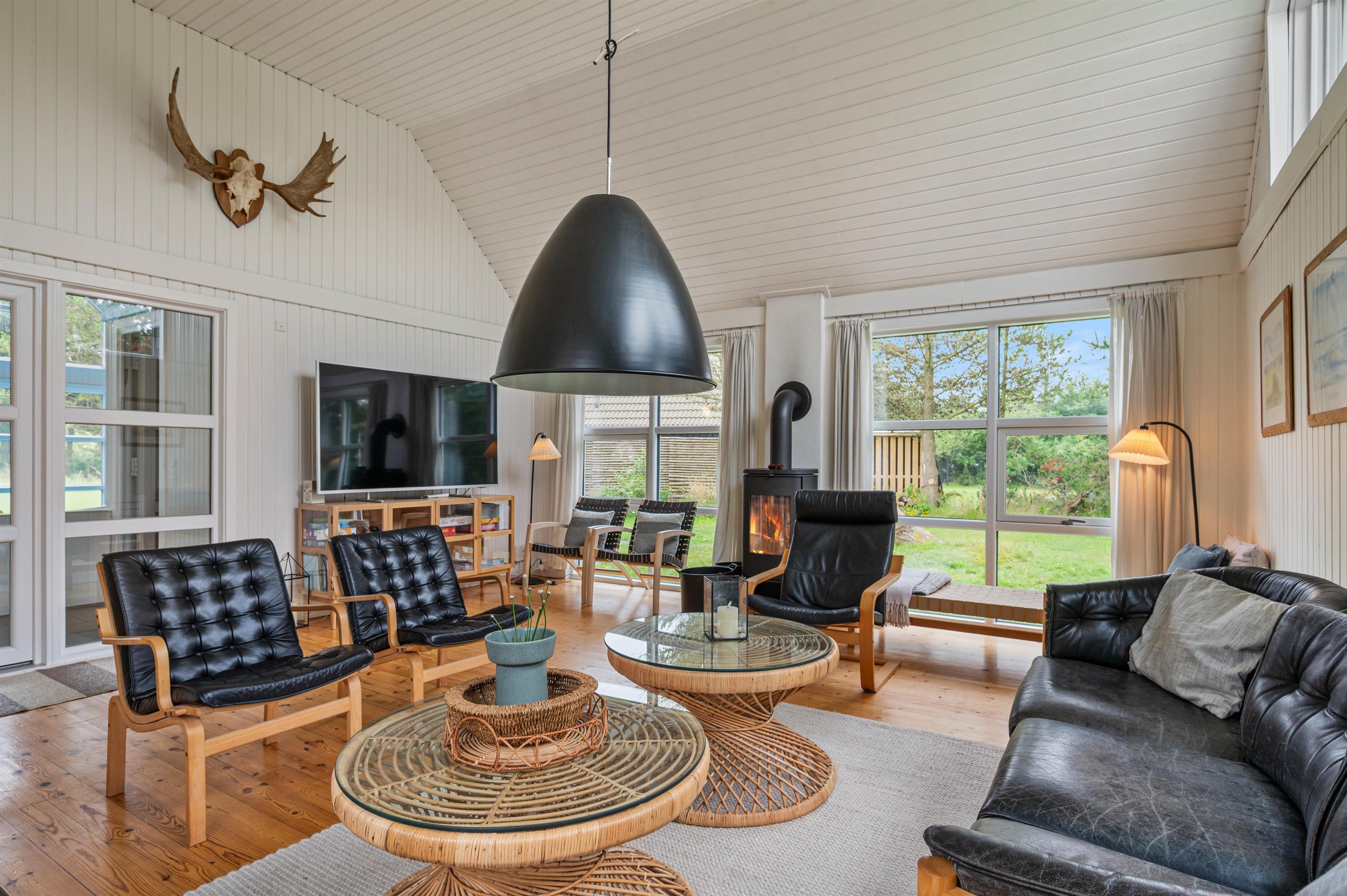 Hjertet af sommerhuset er stuen, hvor I straks vil føle jer hjemme. Rummet er indbydende og lyst grundet de mange vinduer og det hvidmalede træ, som i kombination med trægulvet skaber en hyggelig atmosfære. Tænd brændeovnen om aftenen og nyd dens varme, mens I streamer en film via Chromecast. I sommerhuset er der også danske tv-kanaler.