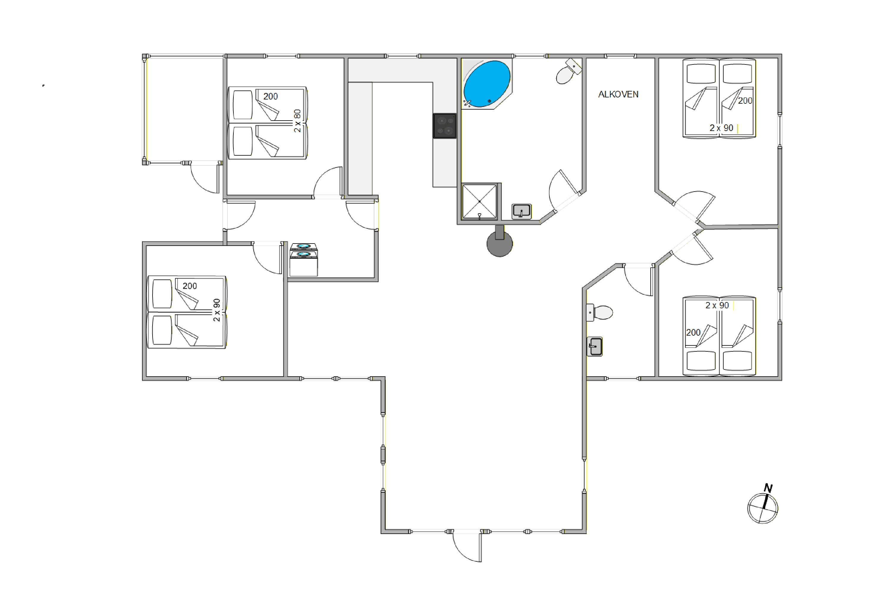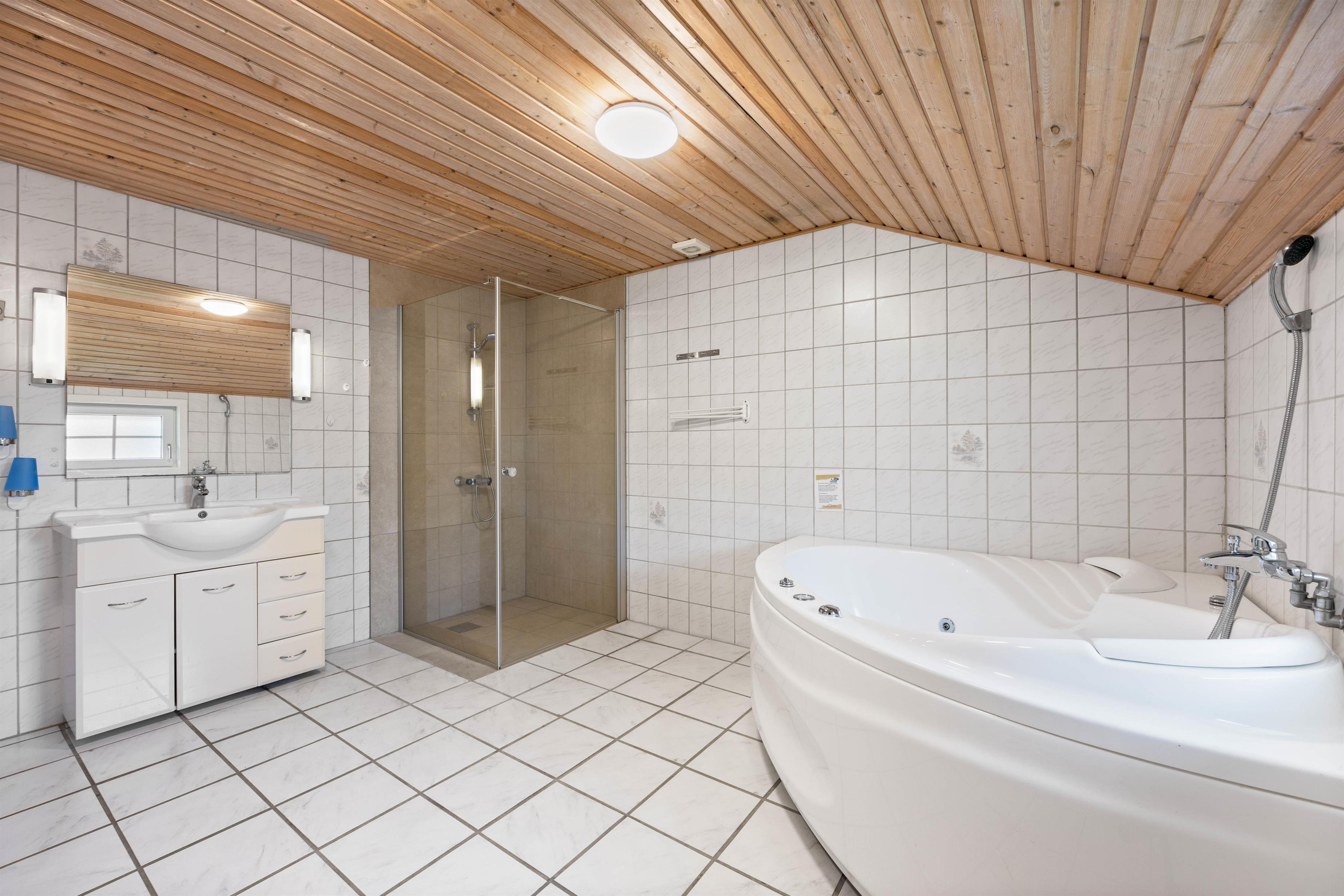 Sommerhuset på Sønder-Vasevej 122 er på 140 m2. Her får I fire gode soveværelser samt et badeværelse og et gæstetoilet så I slipper for morgenkø. På det store badeværelse har I mulighed for at gøre brug af boblebadet. Et fantastisk sted at glemme hverdagen for en stund. Særligt praktisk er feriehuset også udstyret med vaskemaskine og tørretumbler, der gør ferien mere fleksibel.