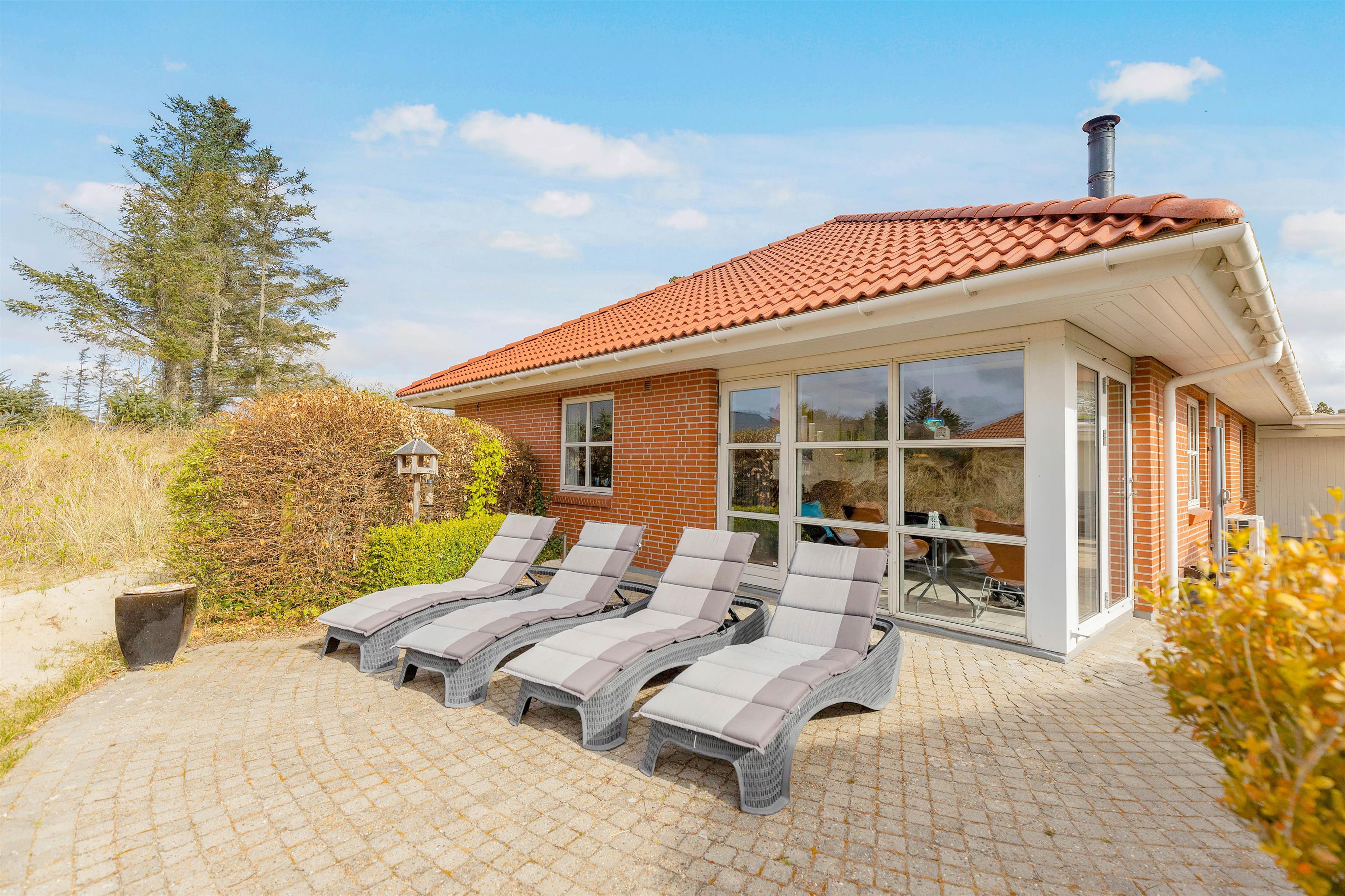 Med til huset hører en dejlig aflukket terrasse, hvor I helt ugeneret kan nyde de varme forårs- og sommerdage. Her er alt fra havemøbler til liggestole, og til de lune aftener står grillen klar, så I kan tilberede lækre steaks og pølser, for de dertil passende iskølede drinks sørger det store amerikanske køleskab.