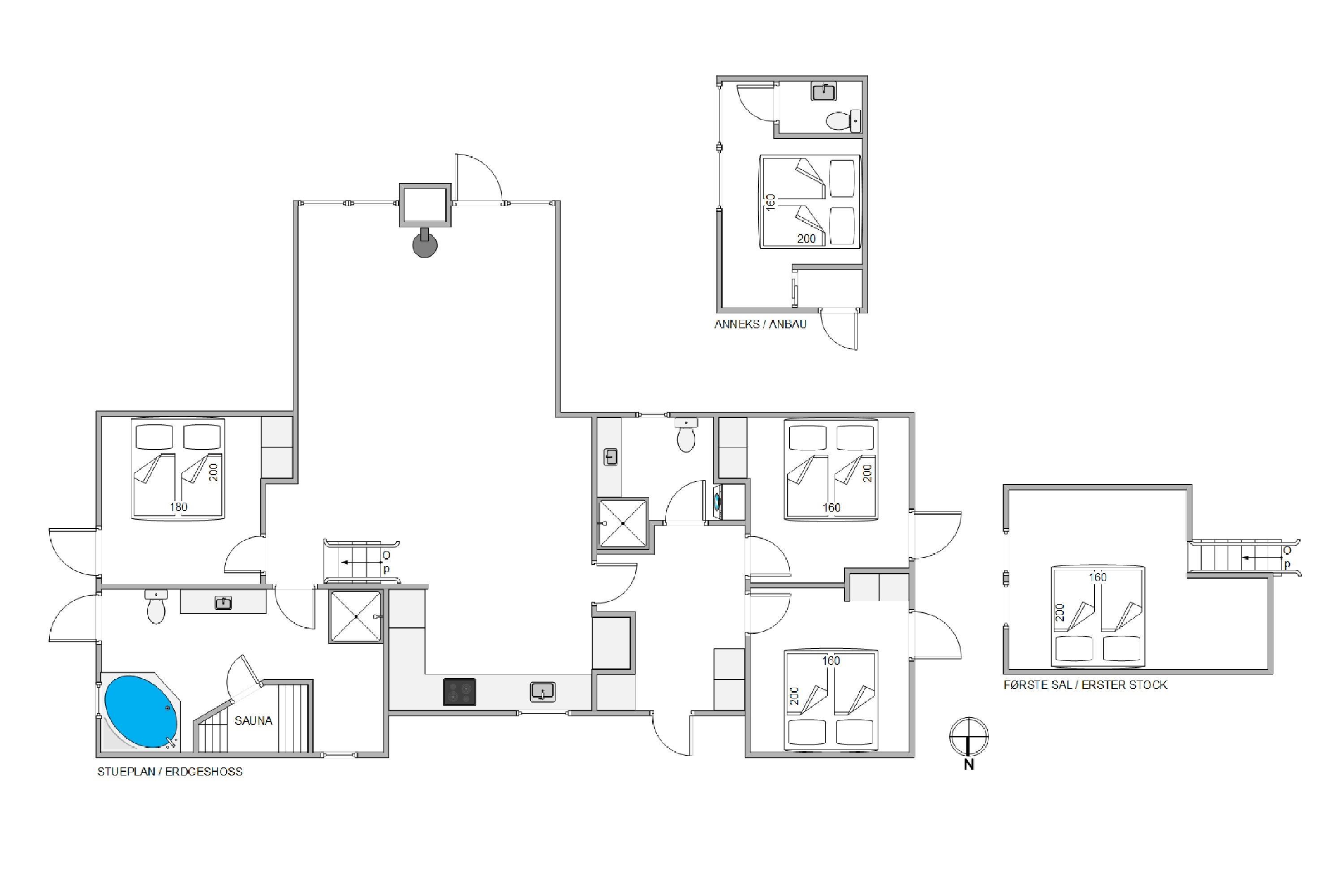 Huset er beregnet på op til 8 personer, og der er gode sovepladser til alle. 6 af sovepladserne fordeler sig på 3 værelser med dobbeltsenge, på hemsen er der 2 sovepladser, hvor de større børn vil elske at hygge sig og i annekset, der er indrettet med dobbeltseng og en køje, vil gæsterne med mindre børn kunne trække sig tilbage.