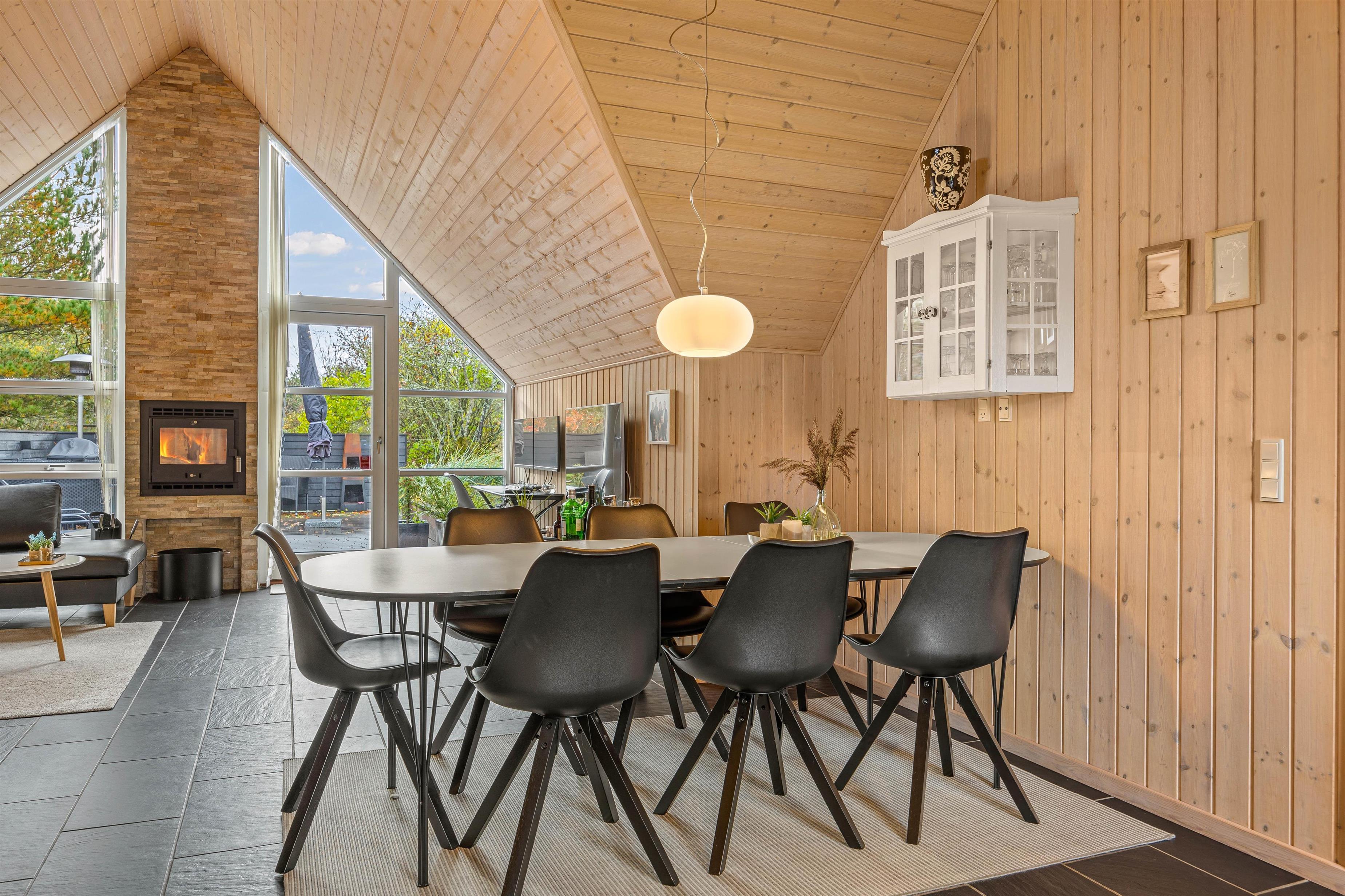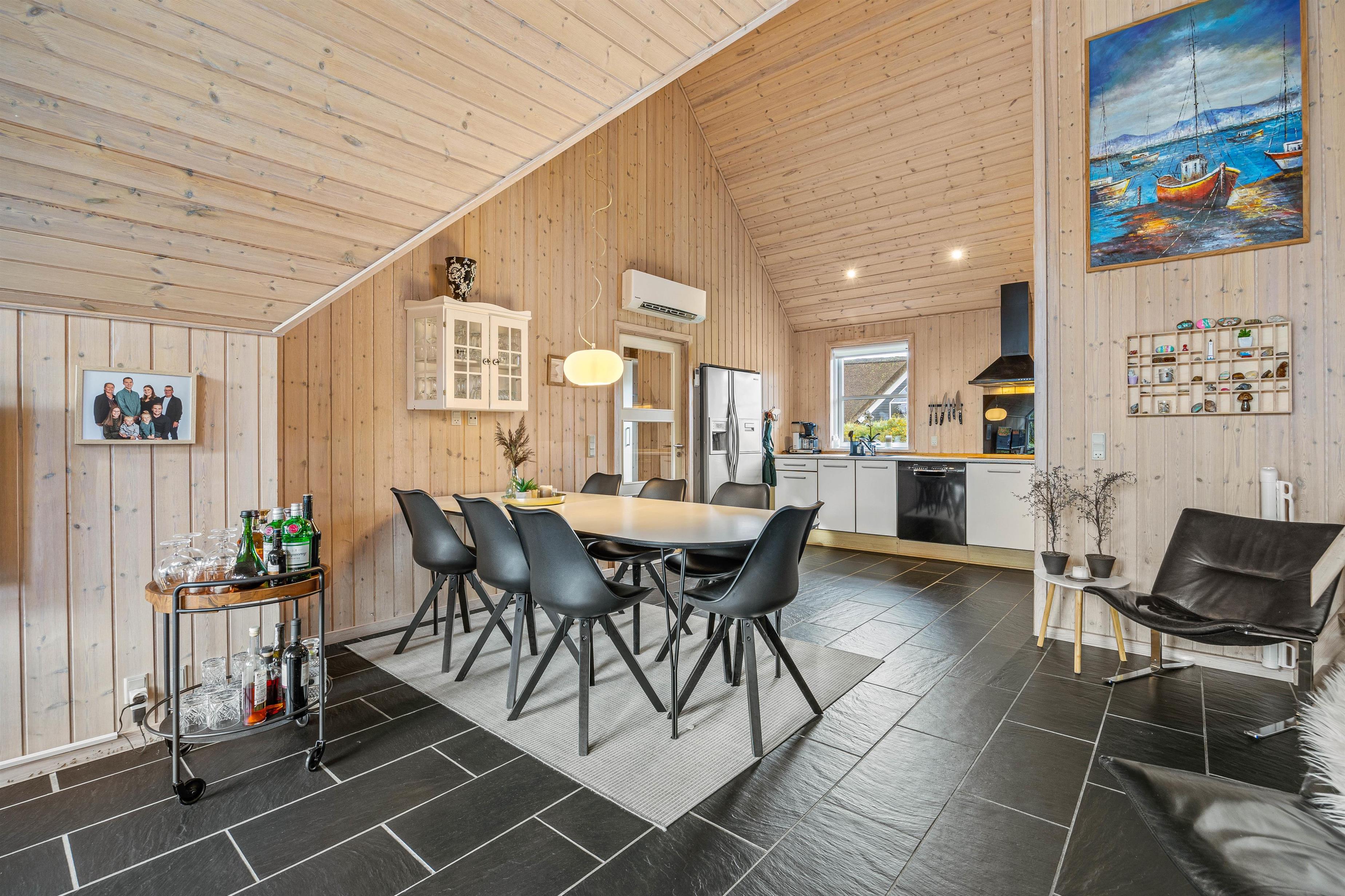 Straks I træder ind i dette feriehus, vil feriefreden sænke sig, for her er tænkt på det hele. Lige fra det moderne hvide køkken med stort køleskab, opvaskemaskine, induktionskogeplade og ovn i løftehøjde til den hyggelige spiseplads tæt på, hvor der kan spilles, være kreativ eller nydes et dejligt måltid.