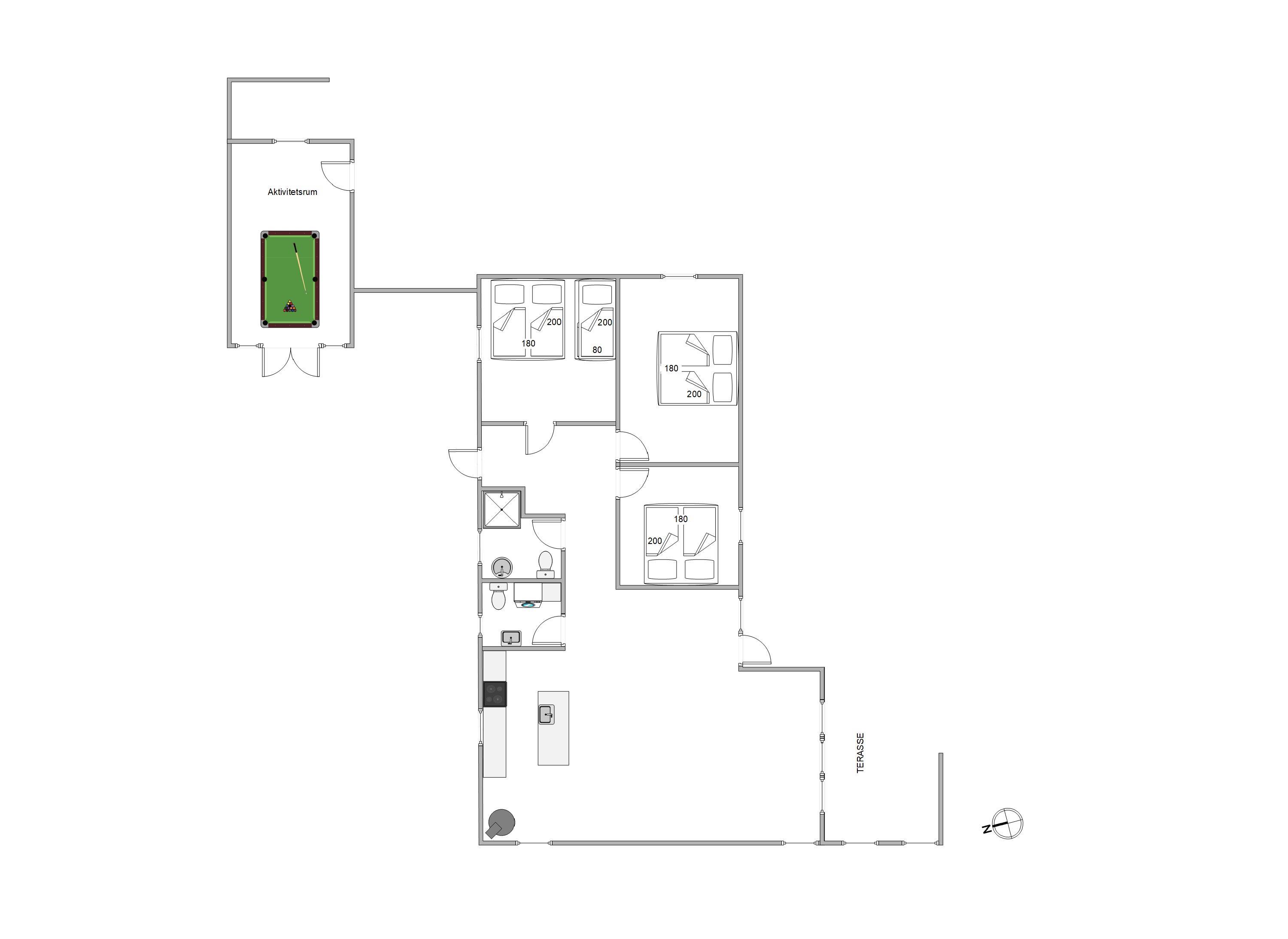 Sommerhuset på Søren Gades Mark 12 har også et aktivitetsrum, hvor I både kan spille billard og bordtennis. Det er et rum, børn såvel som voksne, vil elske. Aktivitetsrummet indbyder til timevis af sjov og uforglemmelige feriestunder - måske I kan afholde en lille familiær turnering ?