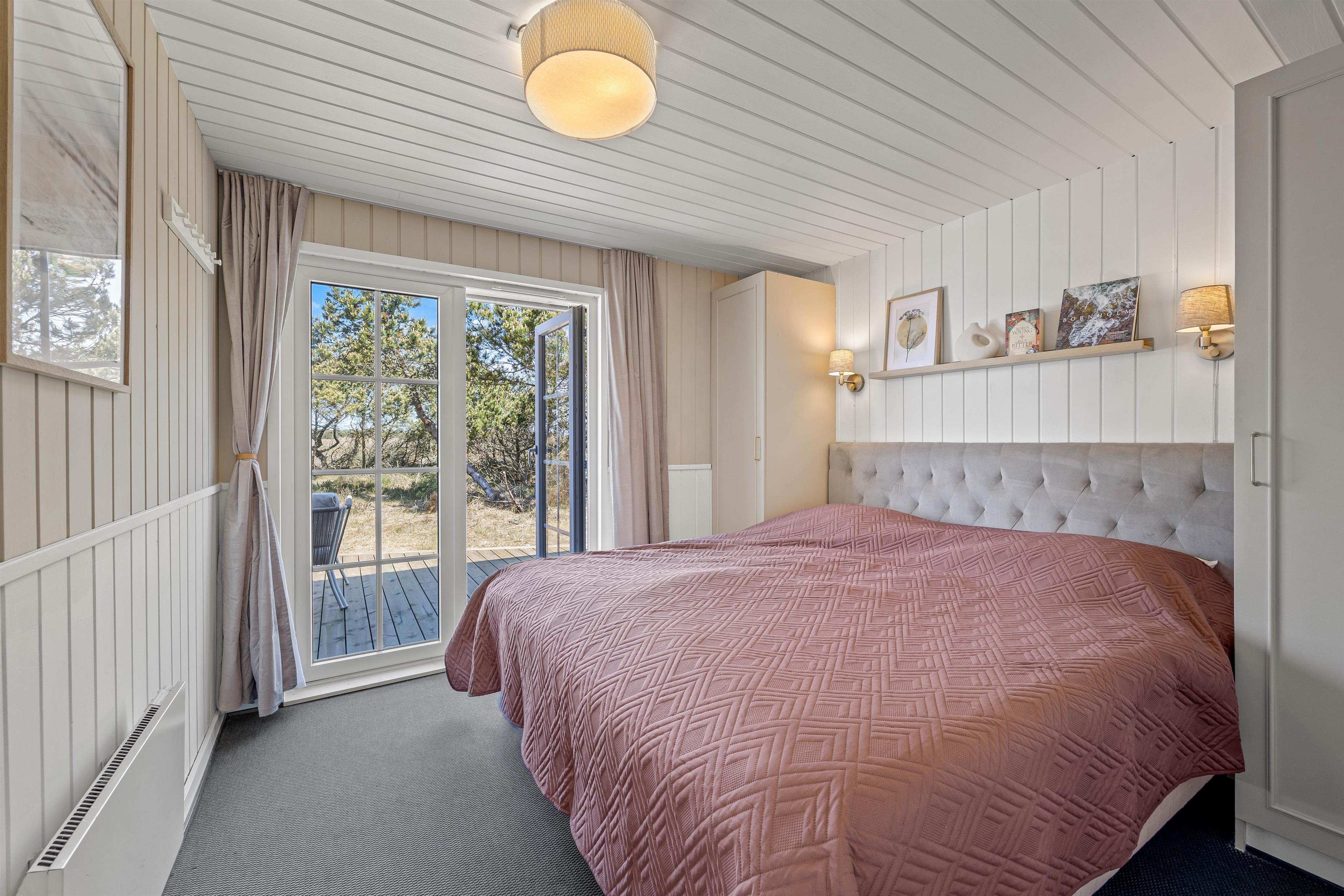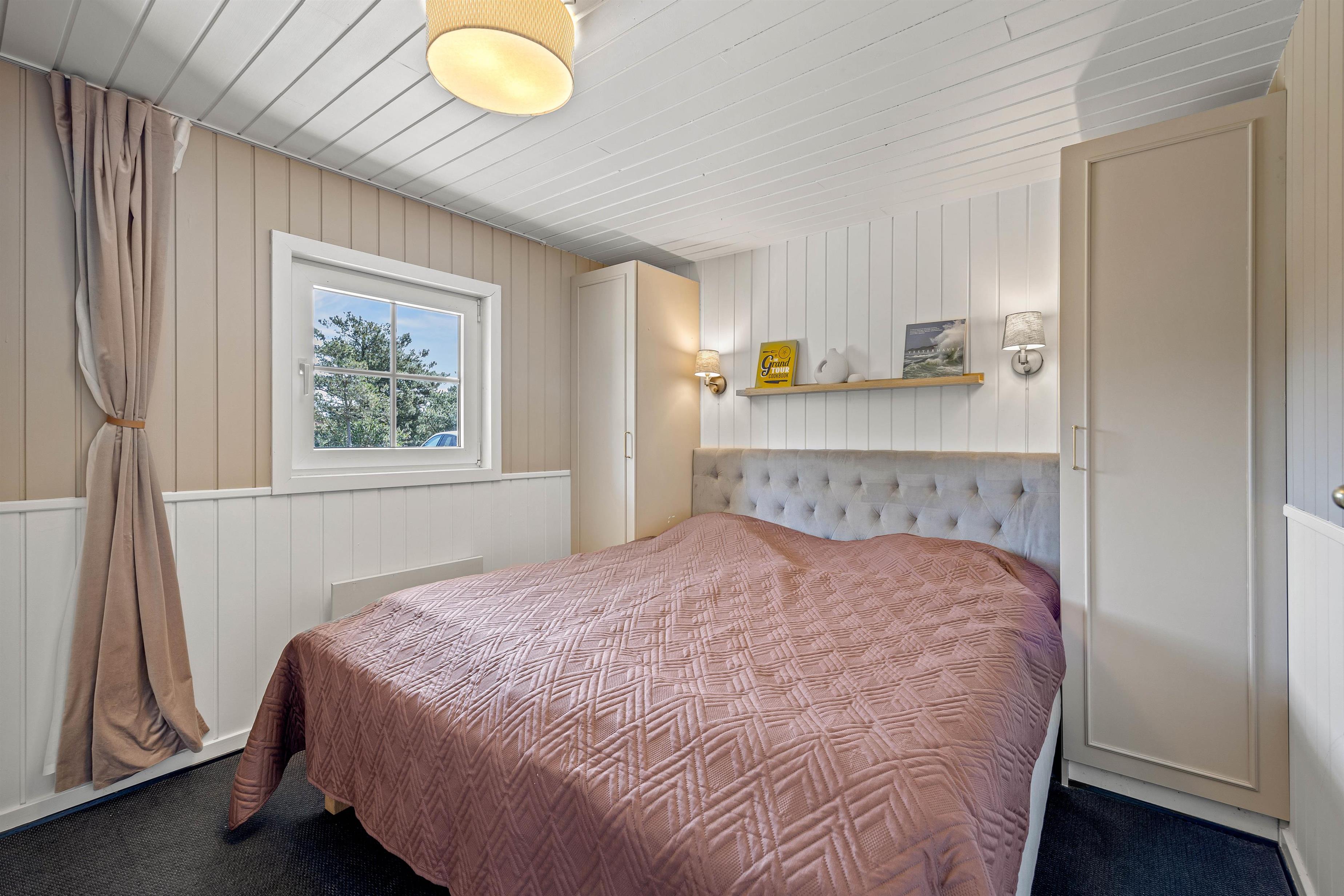 I det 163 kvadratmeter store sommerhus er der 4 gode soveværelser, I kan søge mod om aftenen, når I trænger til at samle ny energi til de kommende feriedage. På hvert af de 4 soveværelser venter jer en dobbeltseng, I kan få jeres skønhedssøvn i. Derudover er der også sovepladser på hemsen.