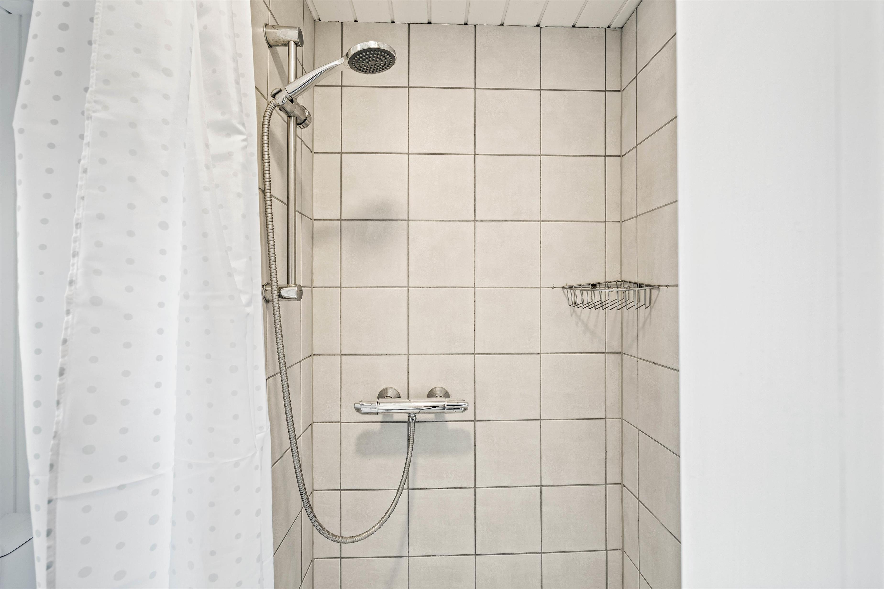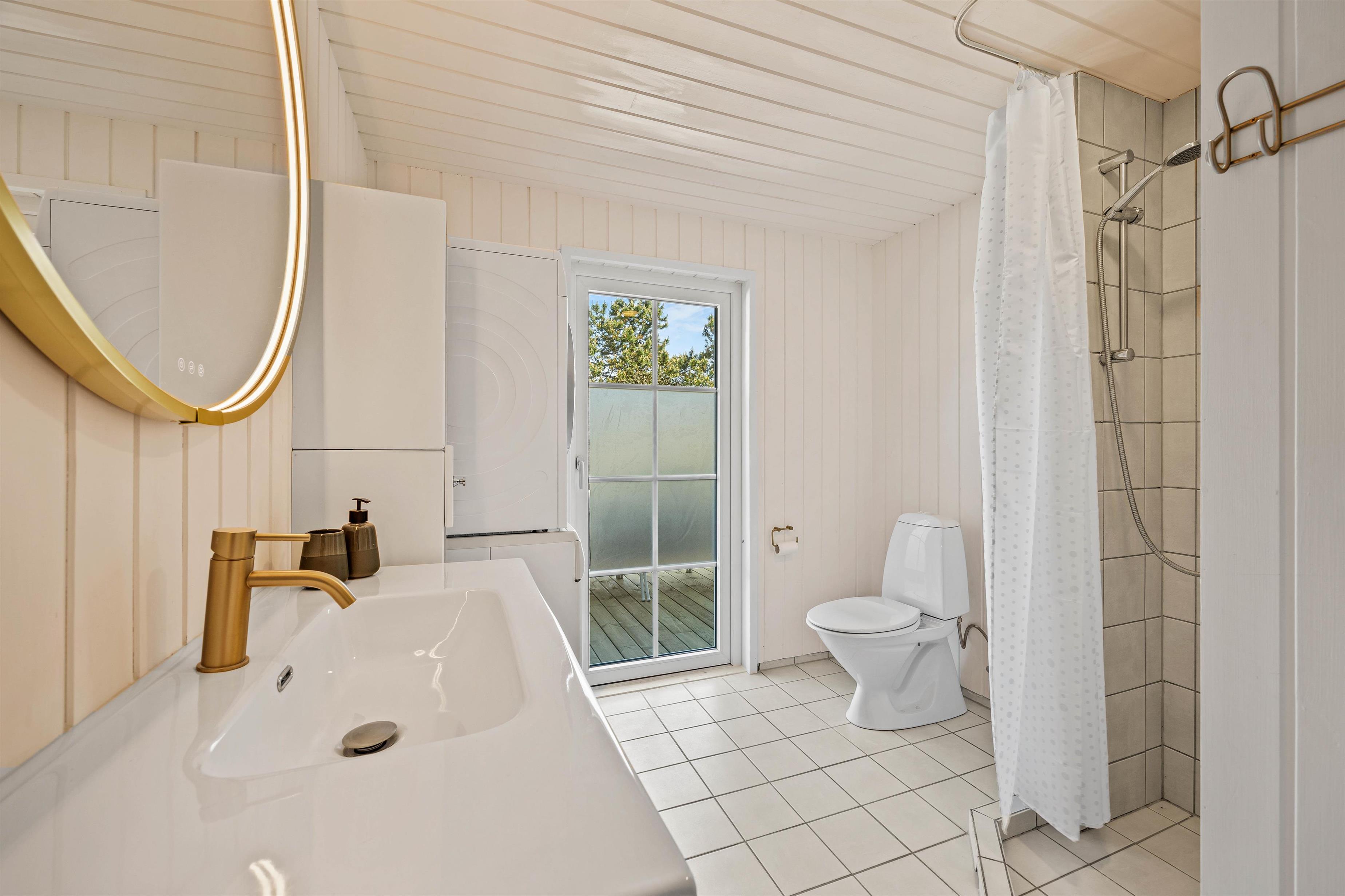 Derudover er der i sommerhuset 2 badeværelser. På begge badeværelser er der gulvvarme, og derfor kommer I ikke til at starte jeres feriemorgener med kolde fødder.