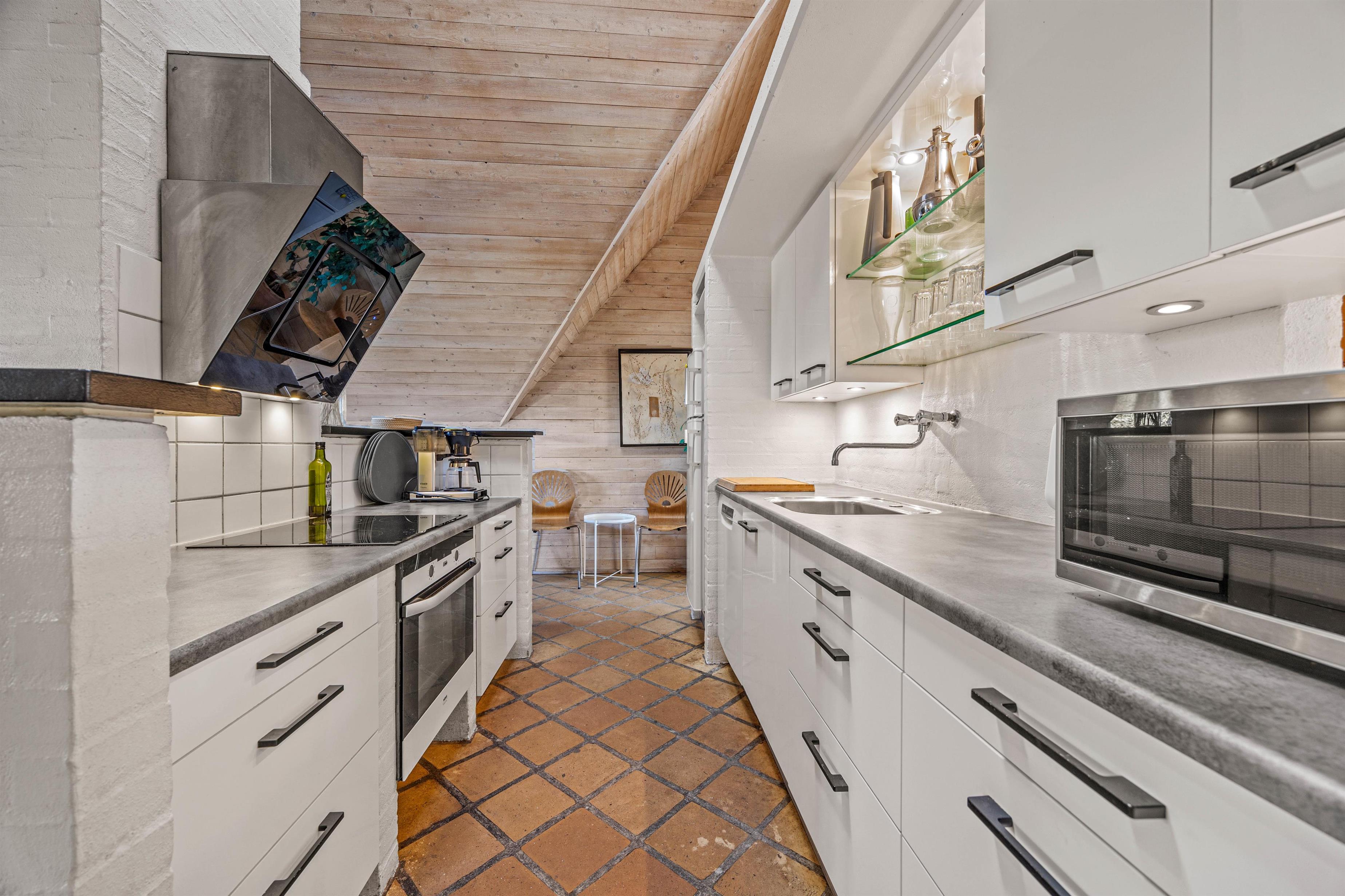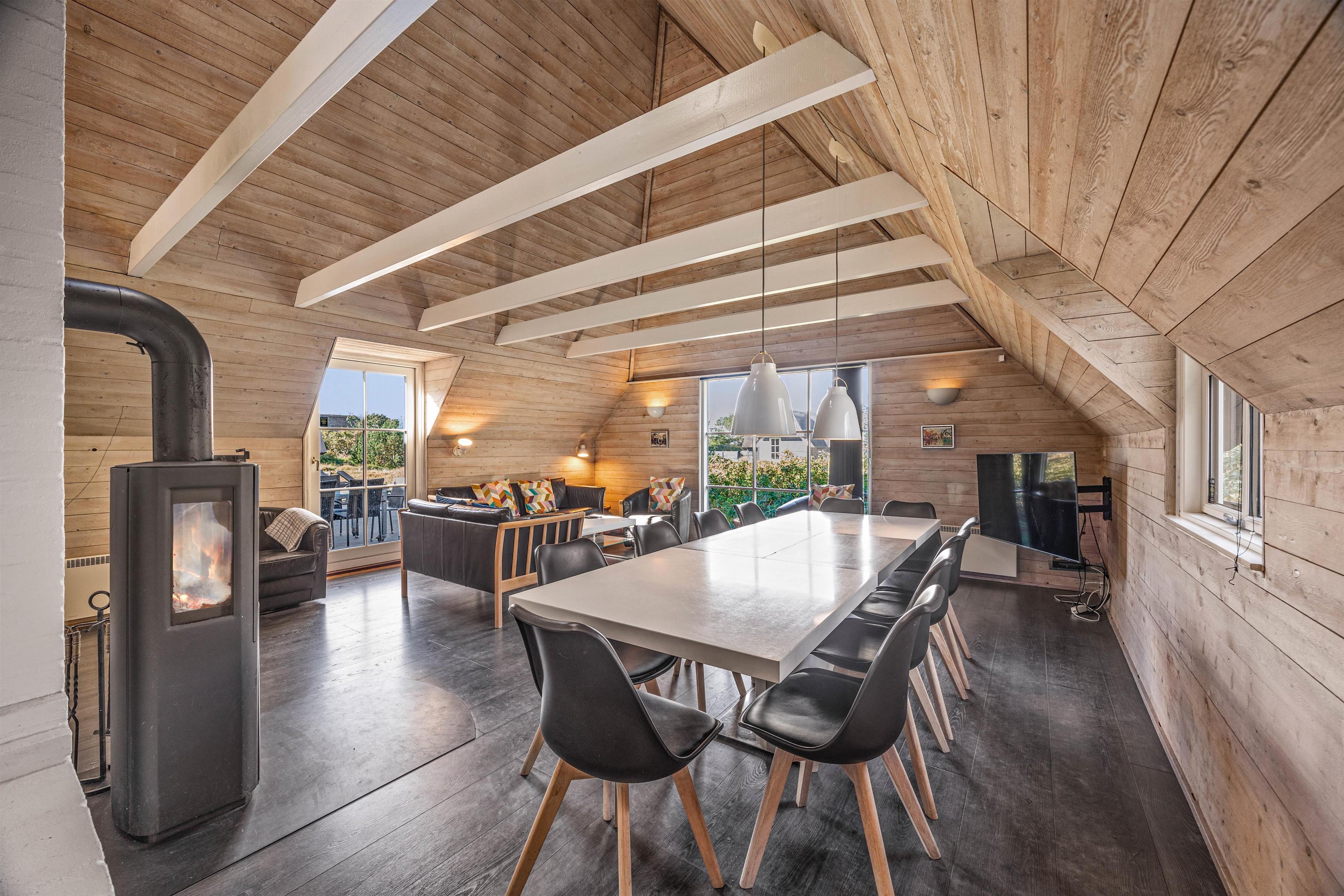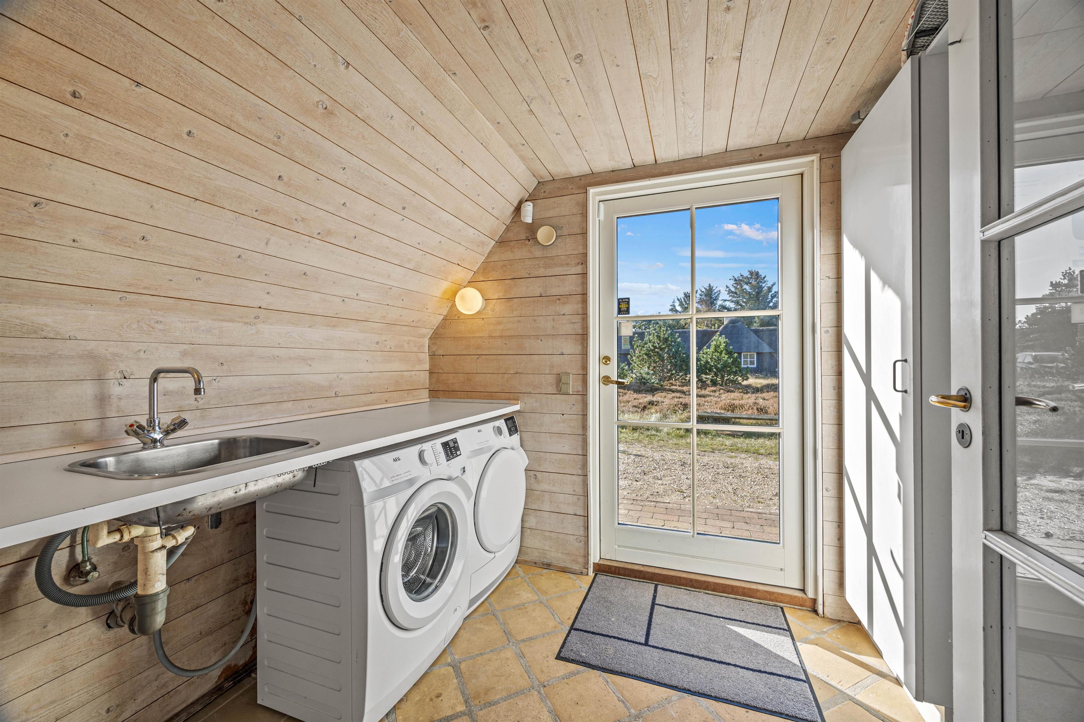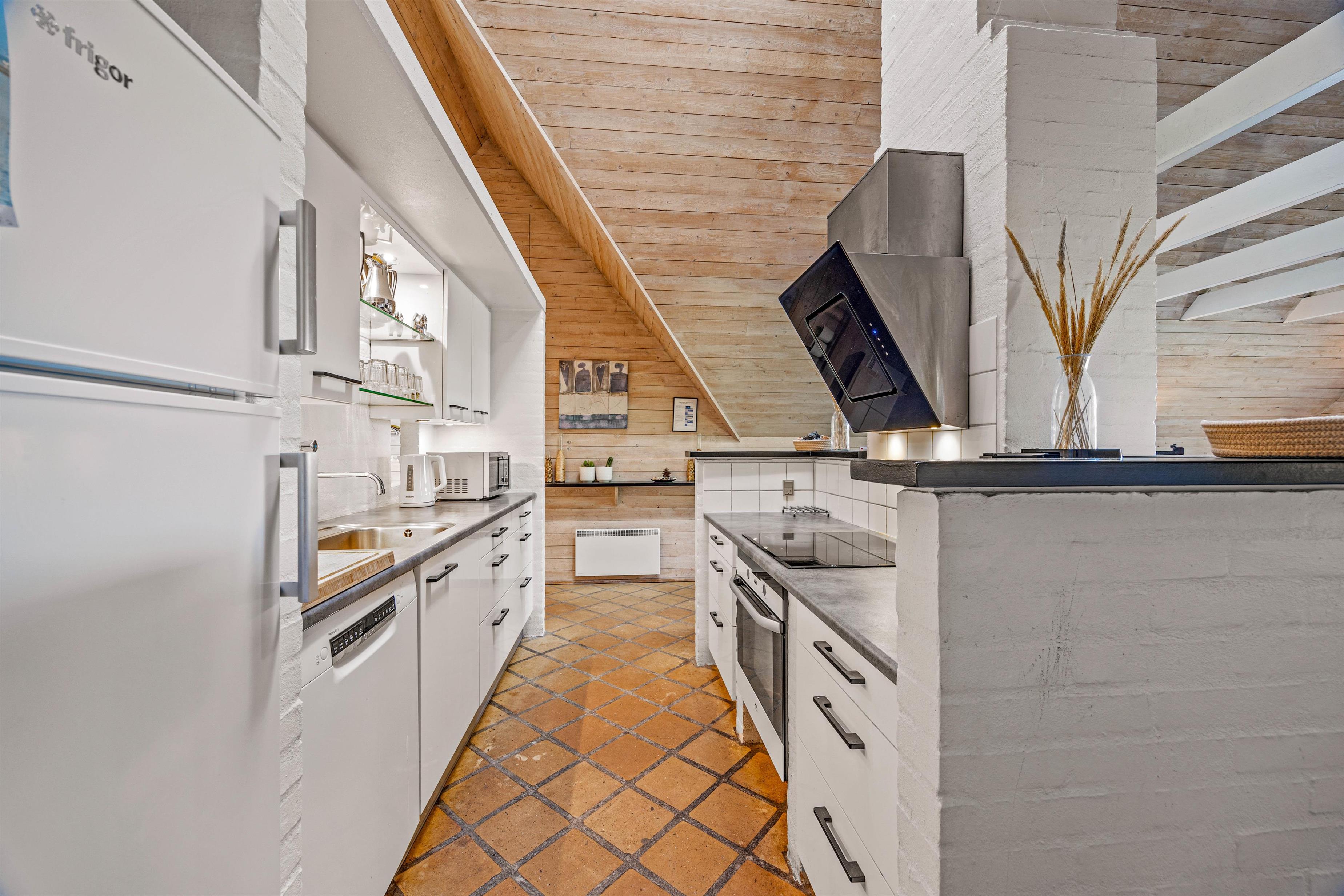 Sommerhuset byder på en lang række faciliteter, der vil gøre jeres ophold endnu mere komfortabelt. I stuen spreder brændeovnen en hyggelig atmosfære, og den moderne luft-til-luft varmepumpe sikrer en behagelig temperatur året rundt. Køkkenet er fuldt udstyret, inklusive en opvaskemaskine, og i bryggerset findes både vaskemaskine og tørretumbler.