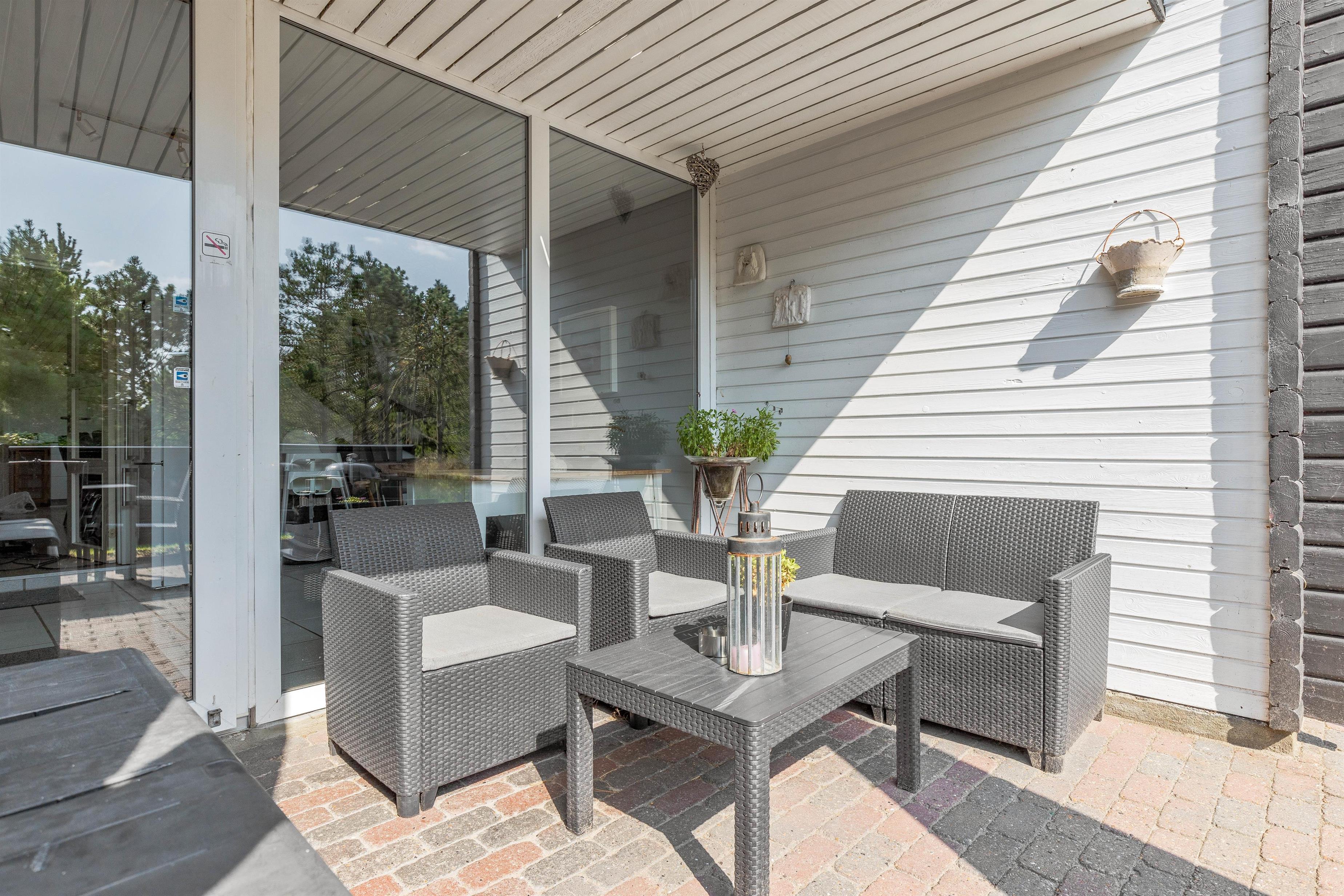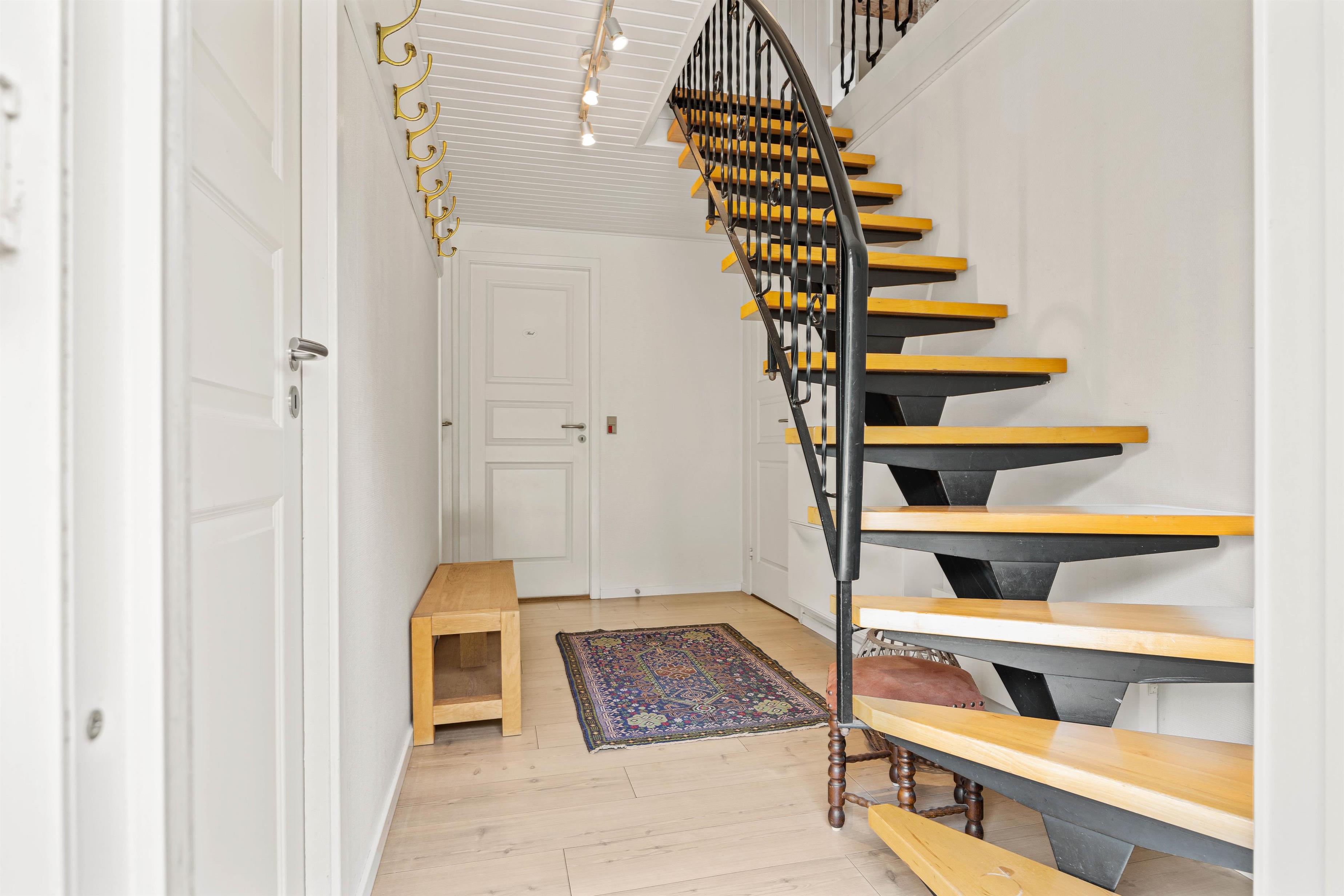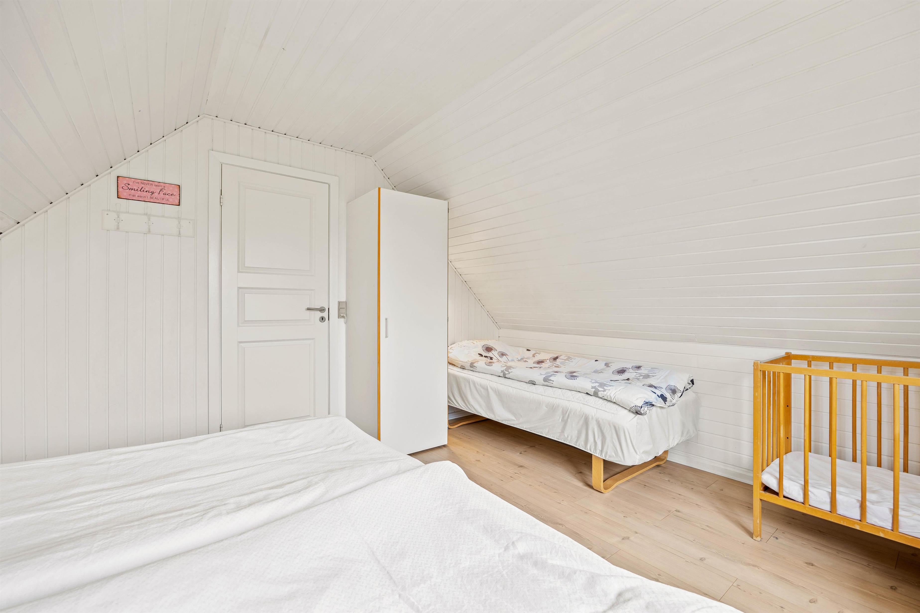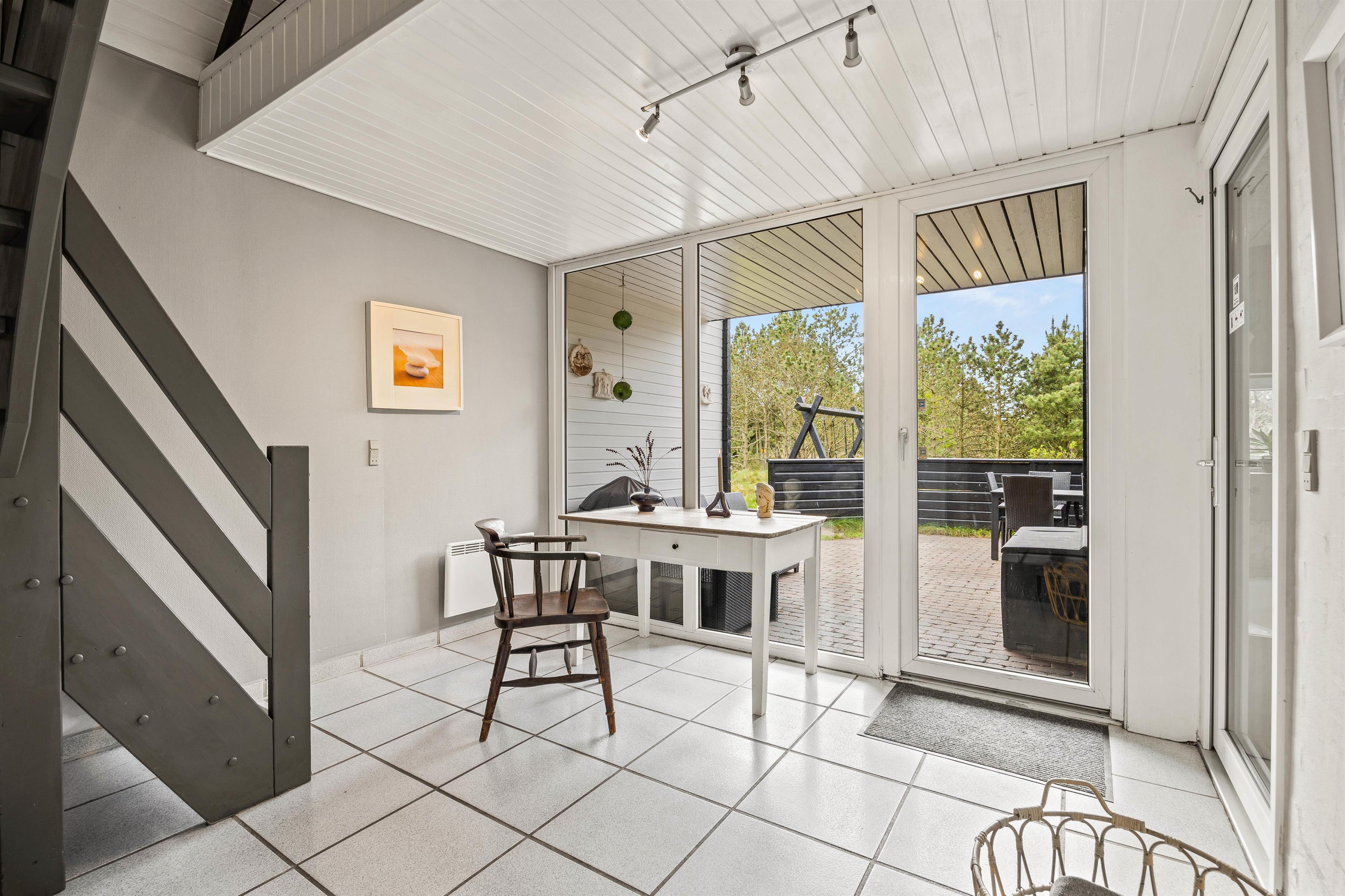 Sommerhuset til 14 personer er lyst og indbydende indrettet. Køkkenet ligger i åben forbindelse til spiseplads og den hyggelige, lille tv-stue. Her kan I hygge jer med et spil kort eller en god film, mens brændeovnen knitrer i baggrunden og sætter prikken over i’et til feriestemningen. Sommerhuset har også en energibesparende varmepumpe, som I kan benytte til at holde temperaturen i rummet behagelig