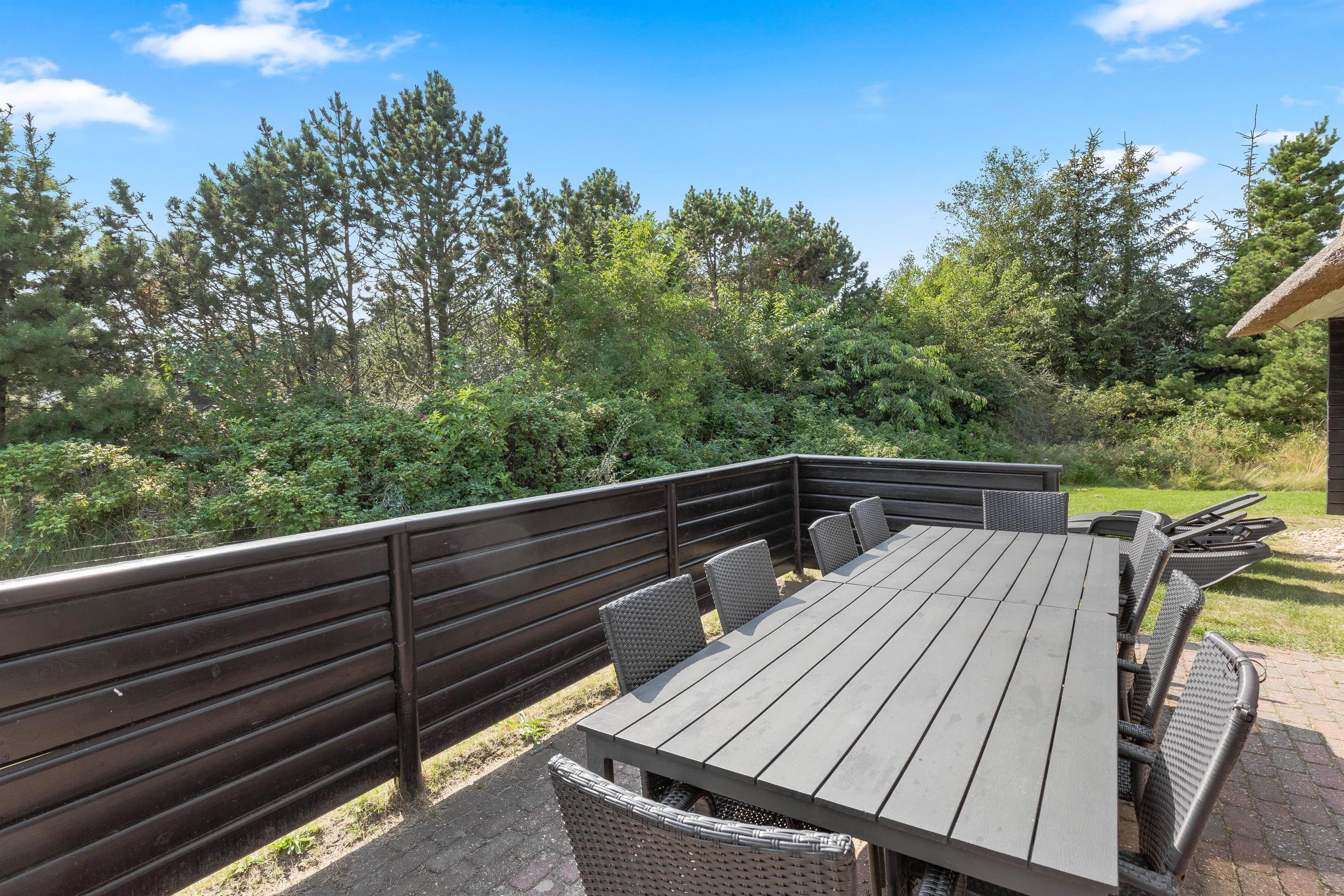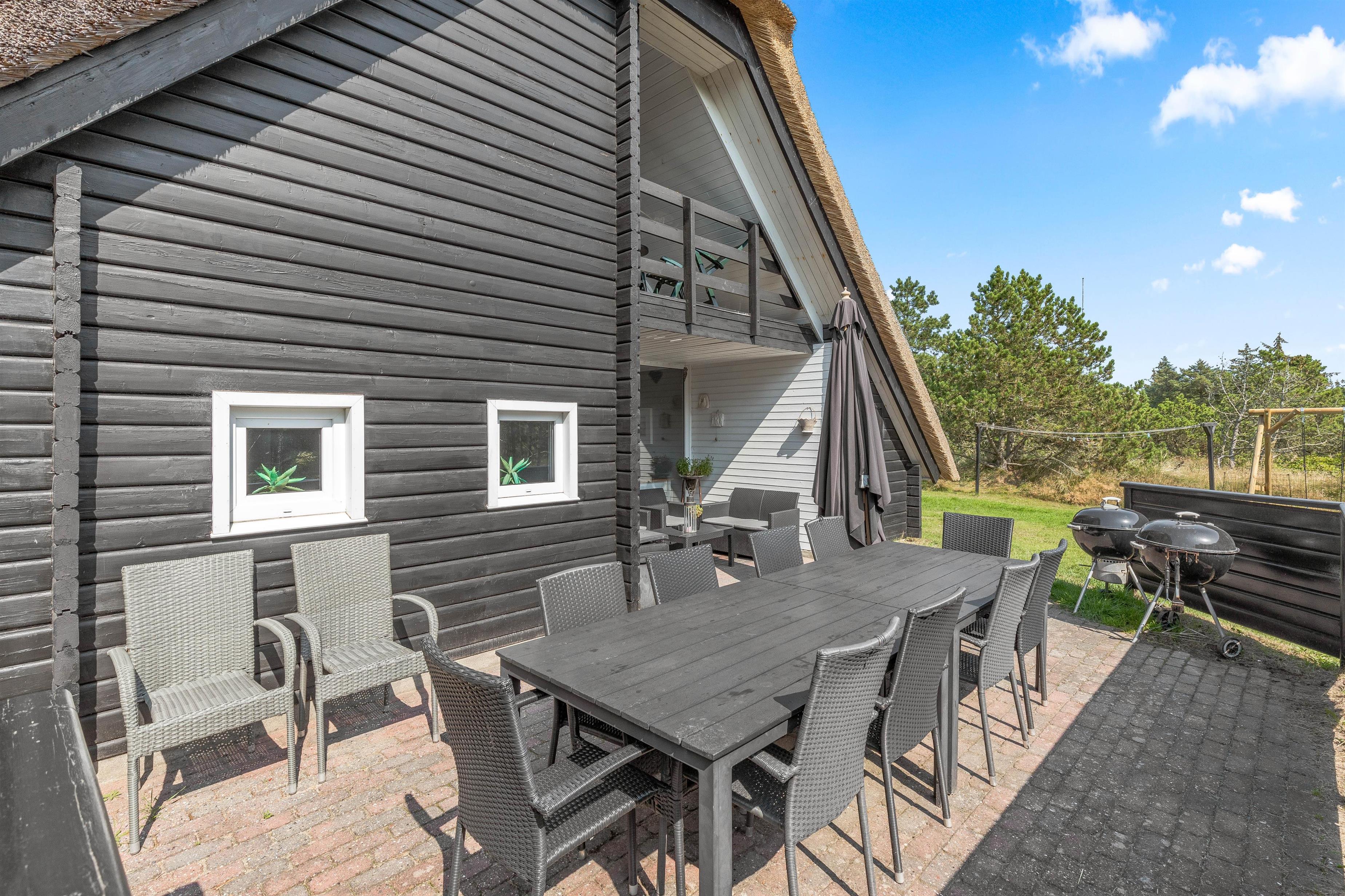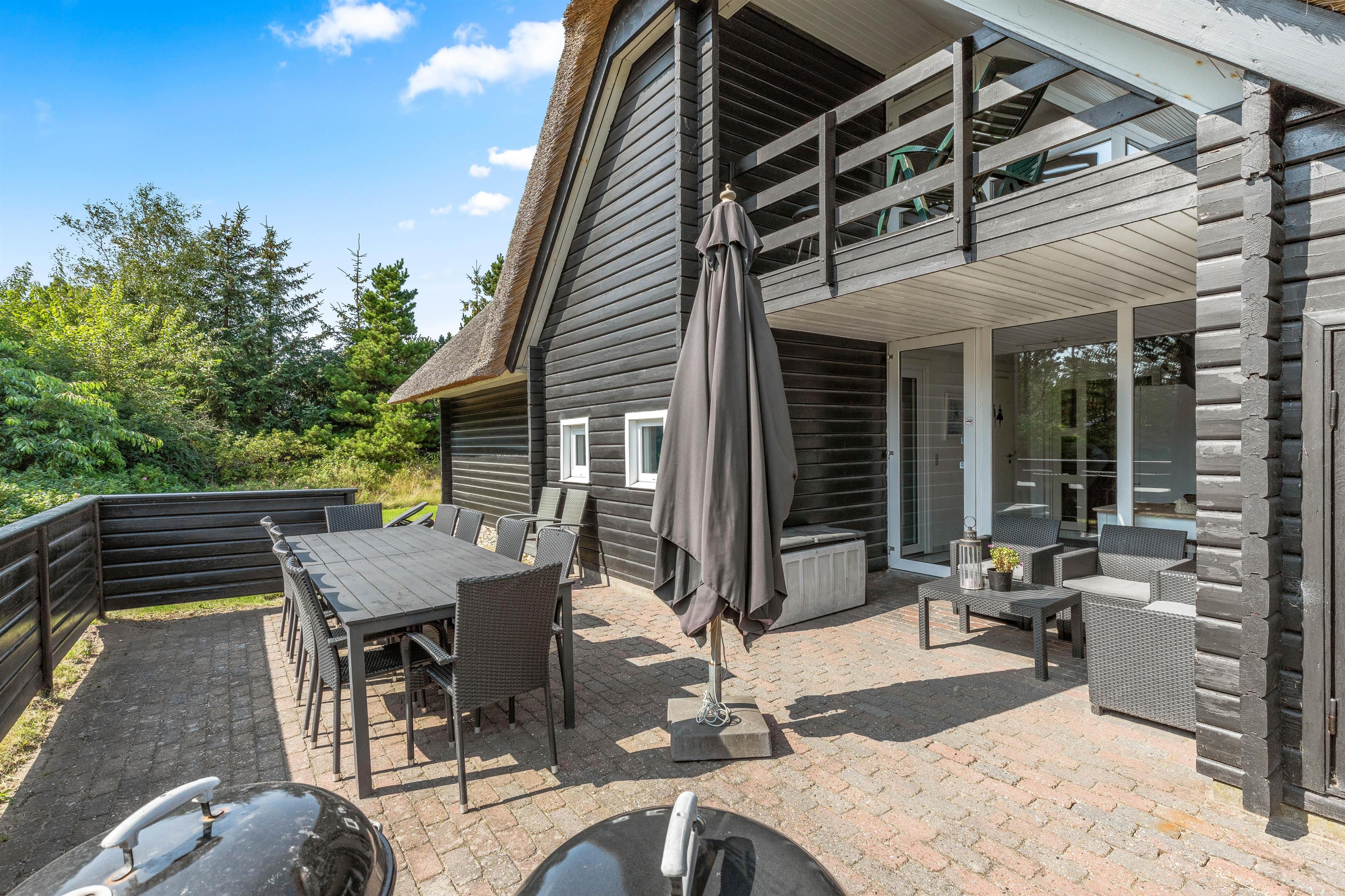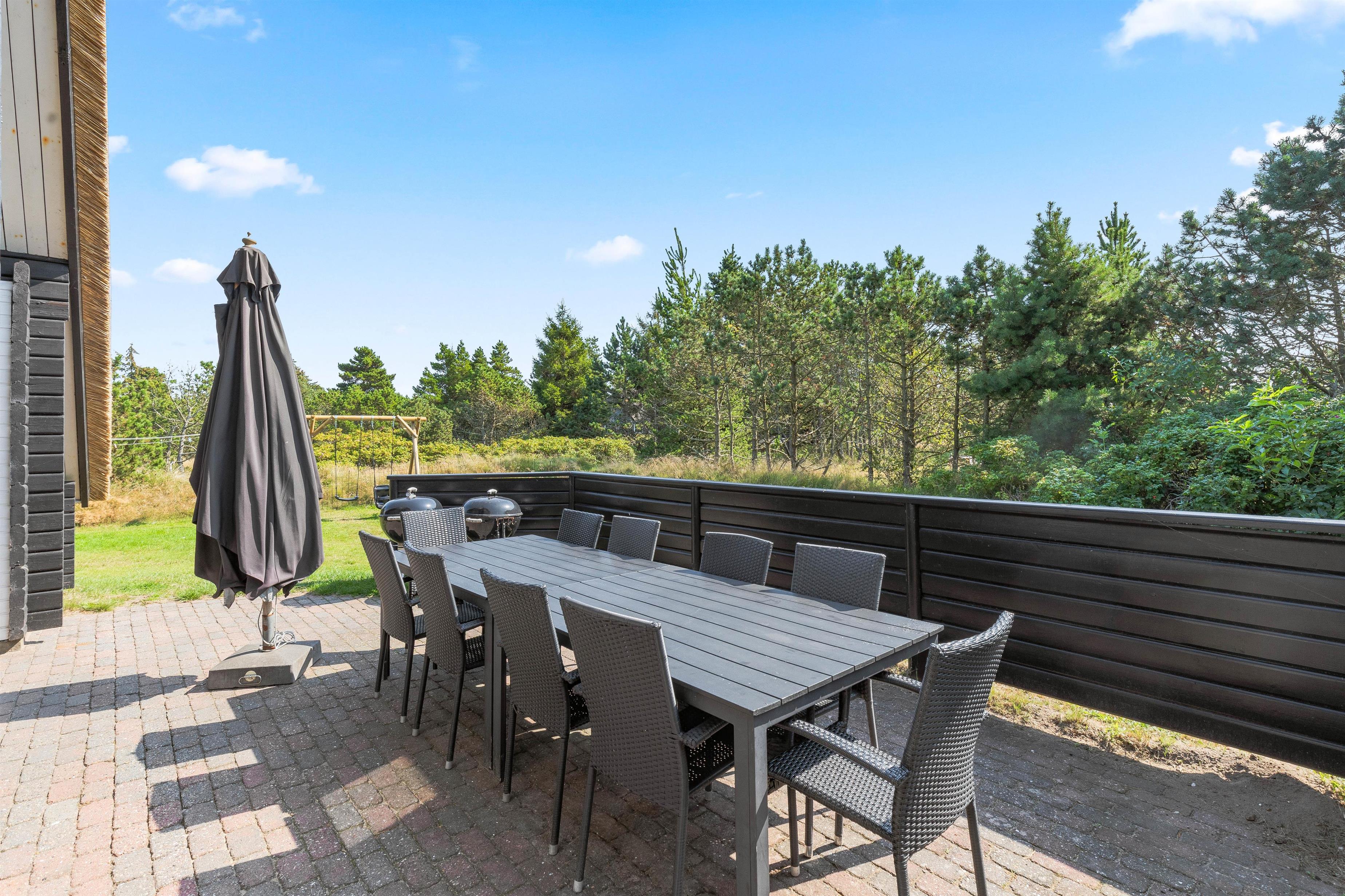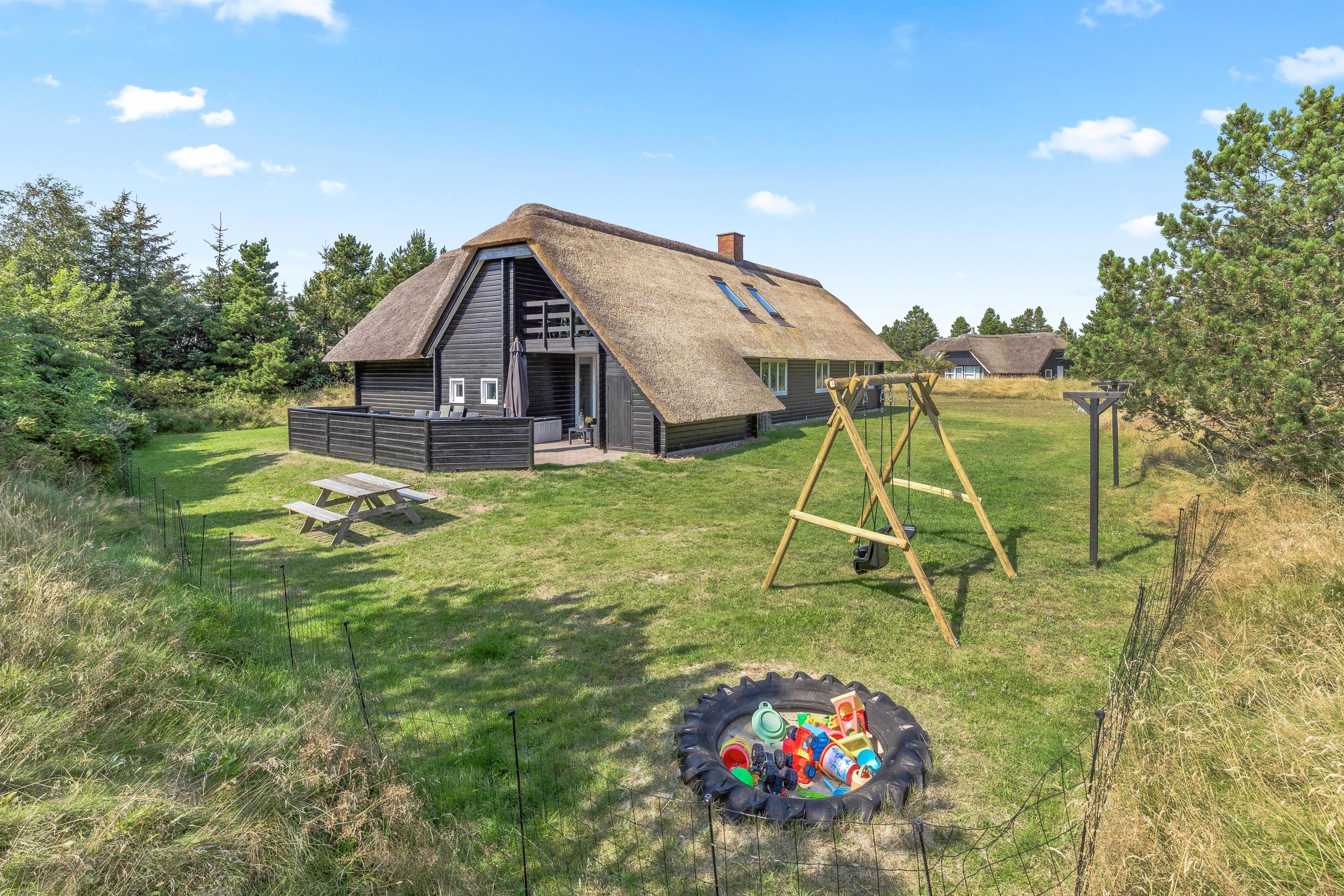 Sommerhuset ligger på en dejlig plænegrund med sandkasse og gyngestativ til familiens yngste. Imens børnene leger, kan I slappe af på den afskærmede terrasse og nyde sommersolen. Til aften kan I tænde op i grillen og stege saftige bøffer til en hyggelig grillmiddag og nyde den smukke vestjyske stjernehimmel fra udespaen.