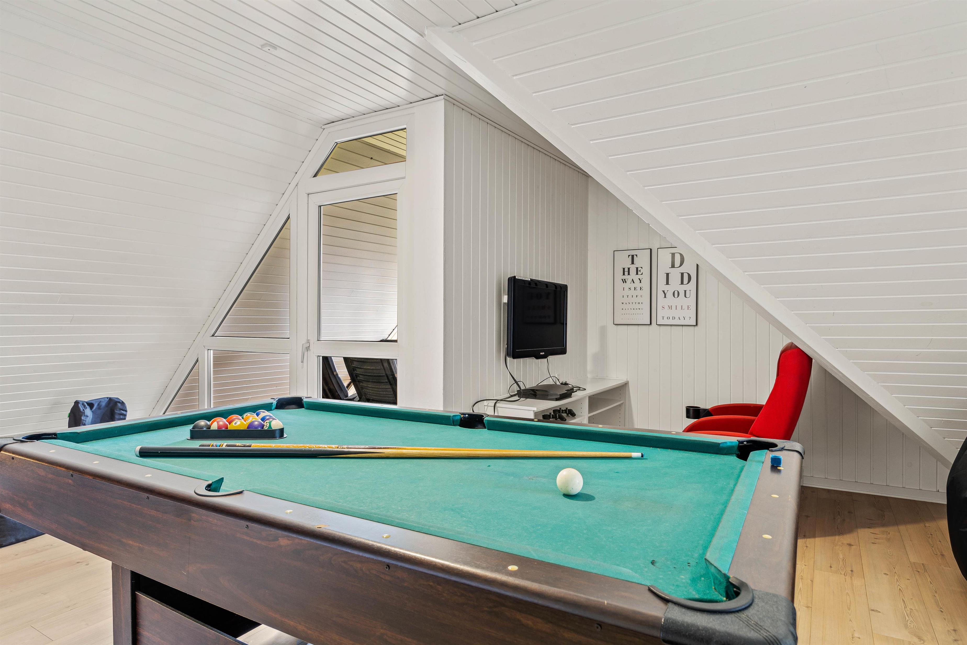 På Sandtoftevej 38B i Blåvand finder I dette skønne aktivitetssommerhus med en lækker pool og billard. Her kan op til 14 feriegæster og 3 hunde nyde en dejlig ferie i hyggelige omgivelser.