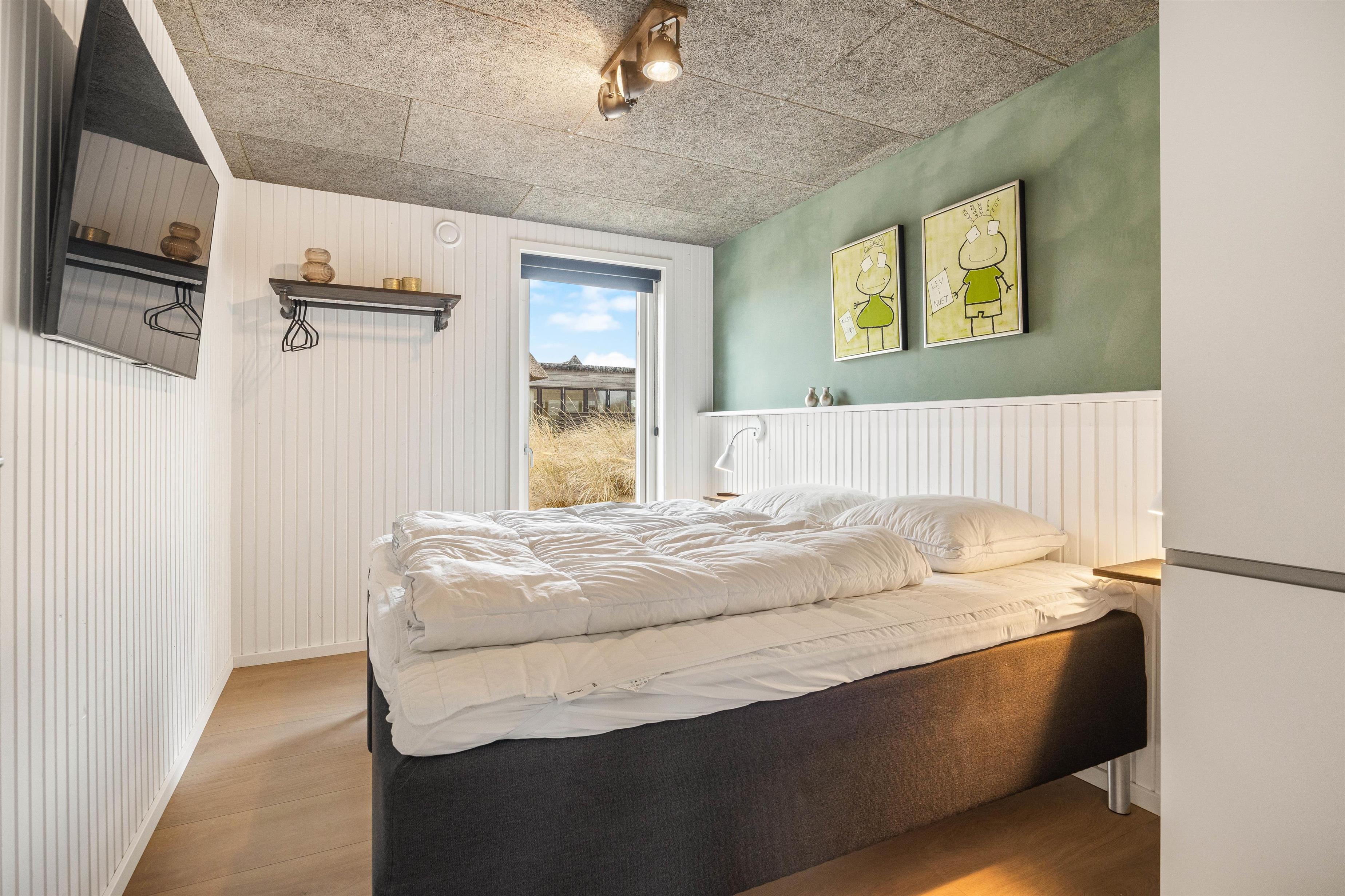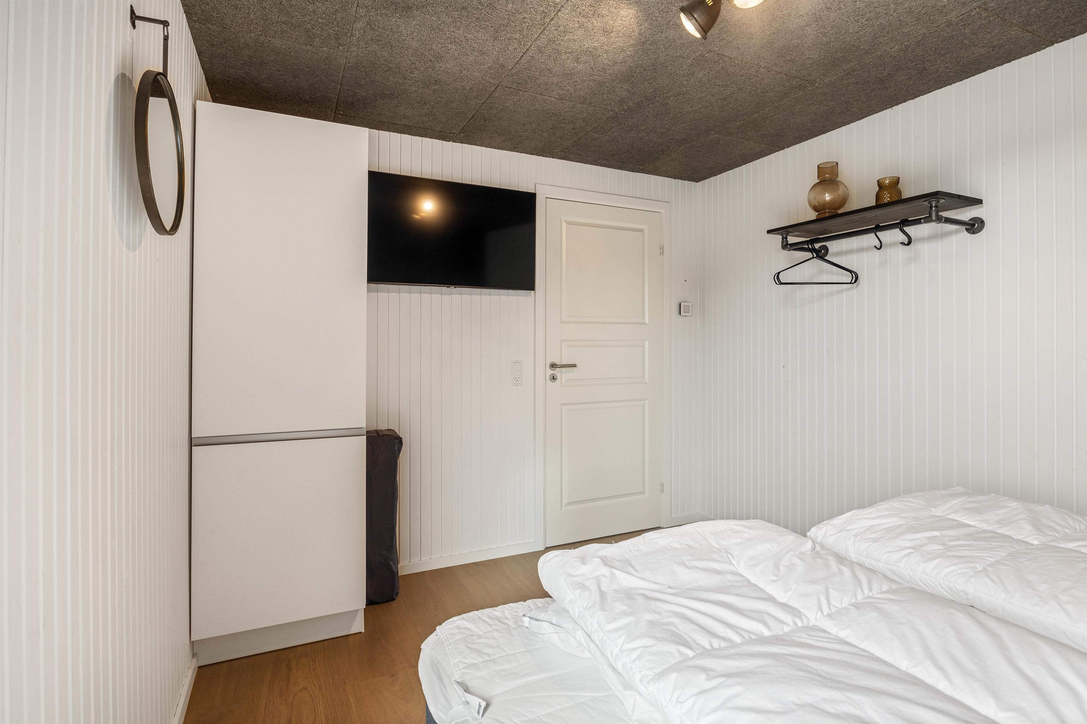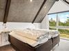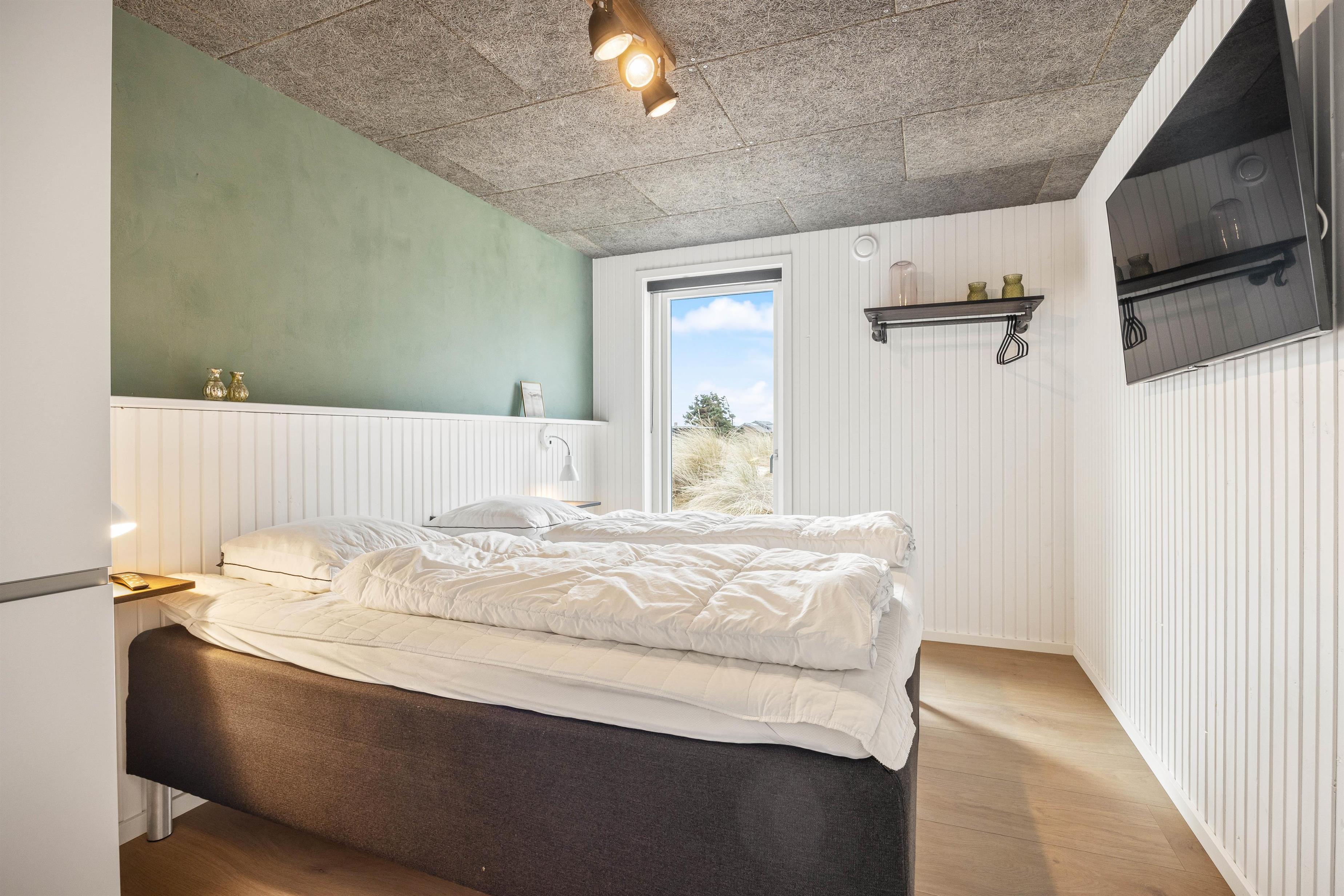 Sommerhusets to badeværelser er moderne og elegant indrettet og har naturligvis gulvvarme. Sovepladserne er placeret på to forskellige sider af huset, så I kan dele dem godt op - f.eks. hvis I holder ferie med 2 familier. I alt er der 4 soveværelser med komfortable dobbeltsenge og 2 hemse med i alt 4 sovepladser. Alle soveværelser er smukt indrettet med lyse paneler og skabe og er udstyret med eget fjernsyn.
