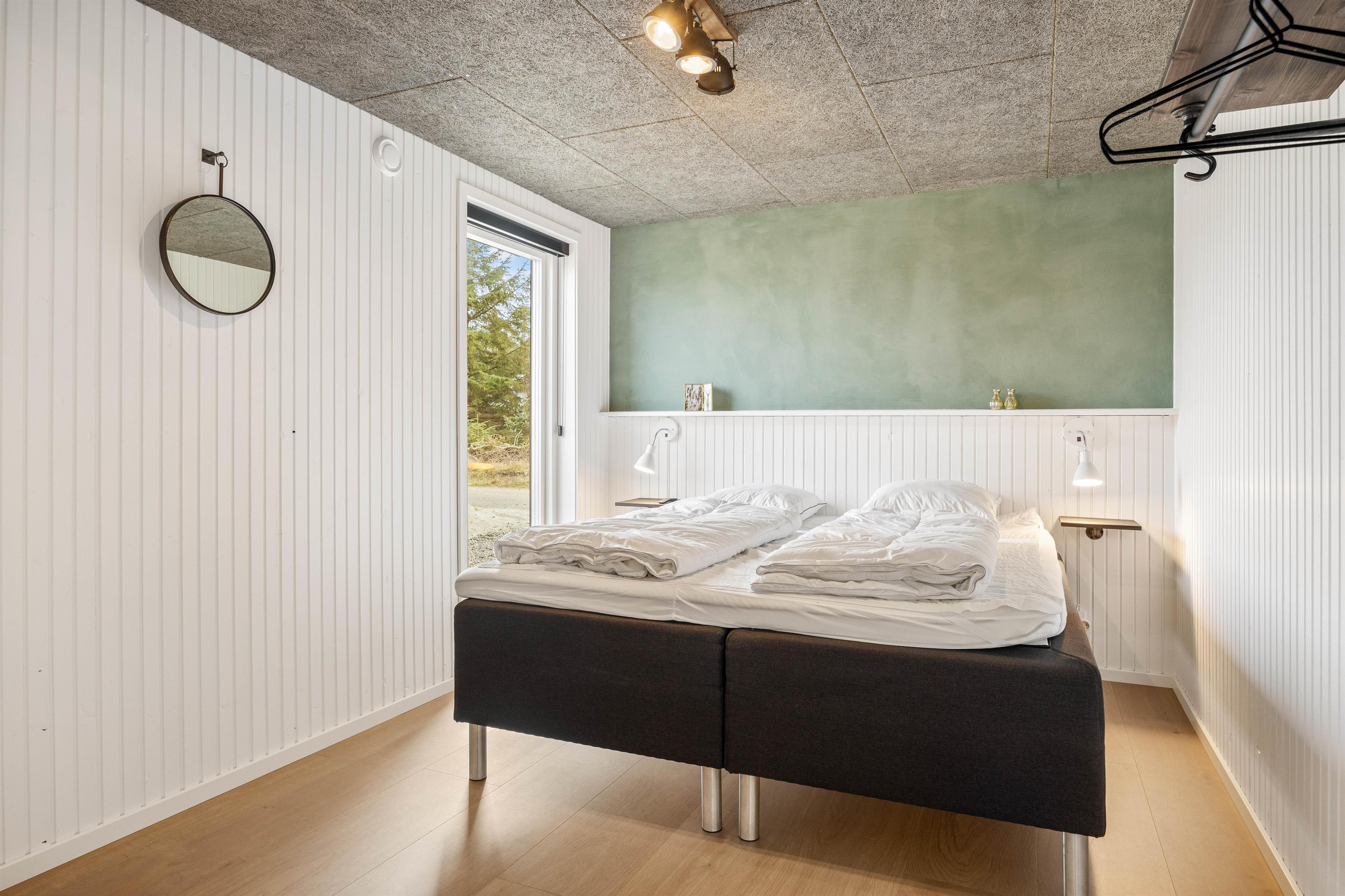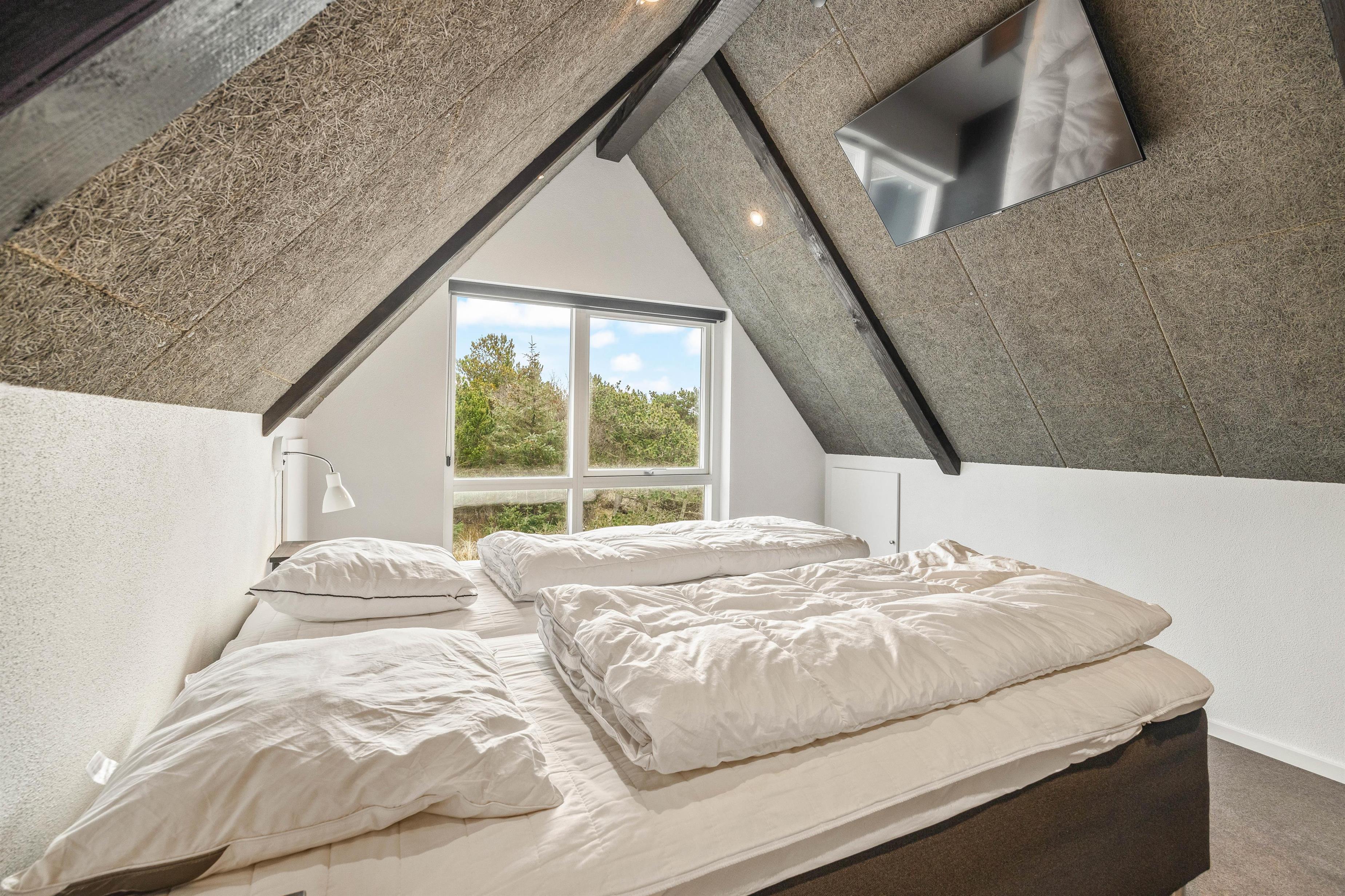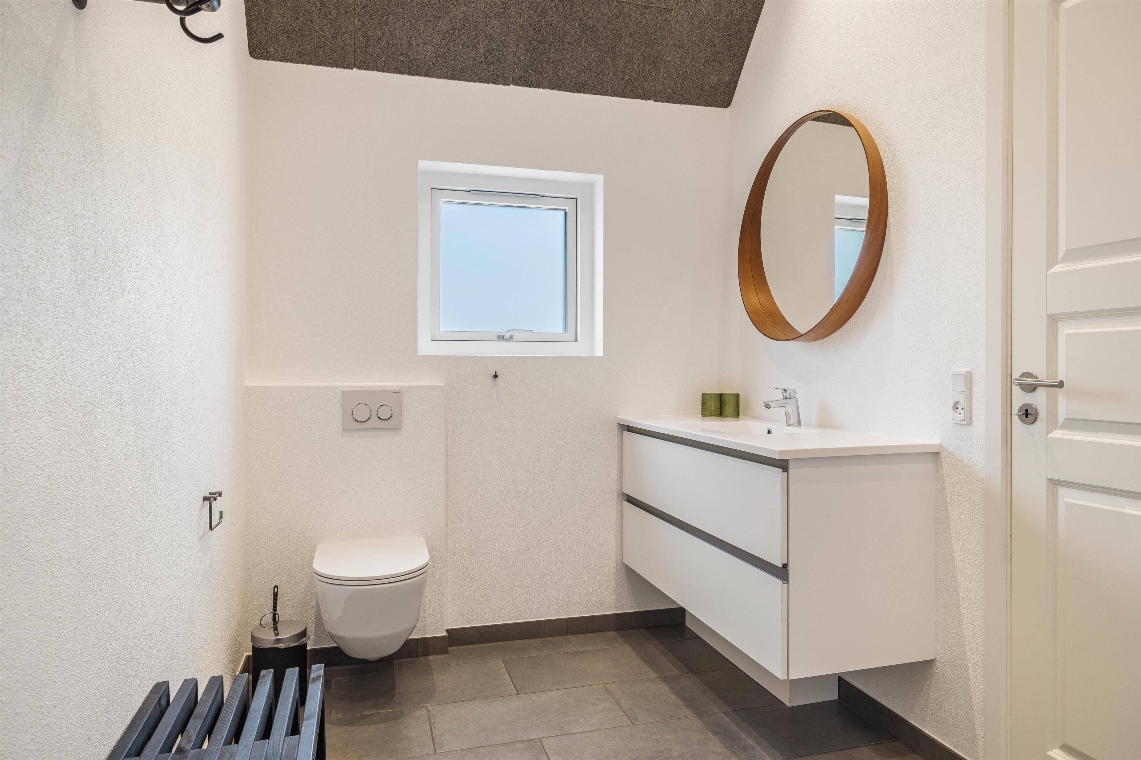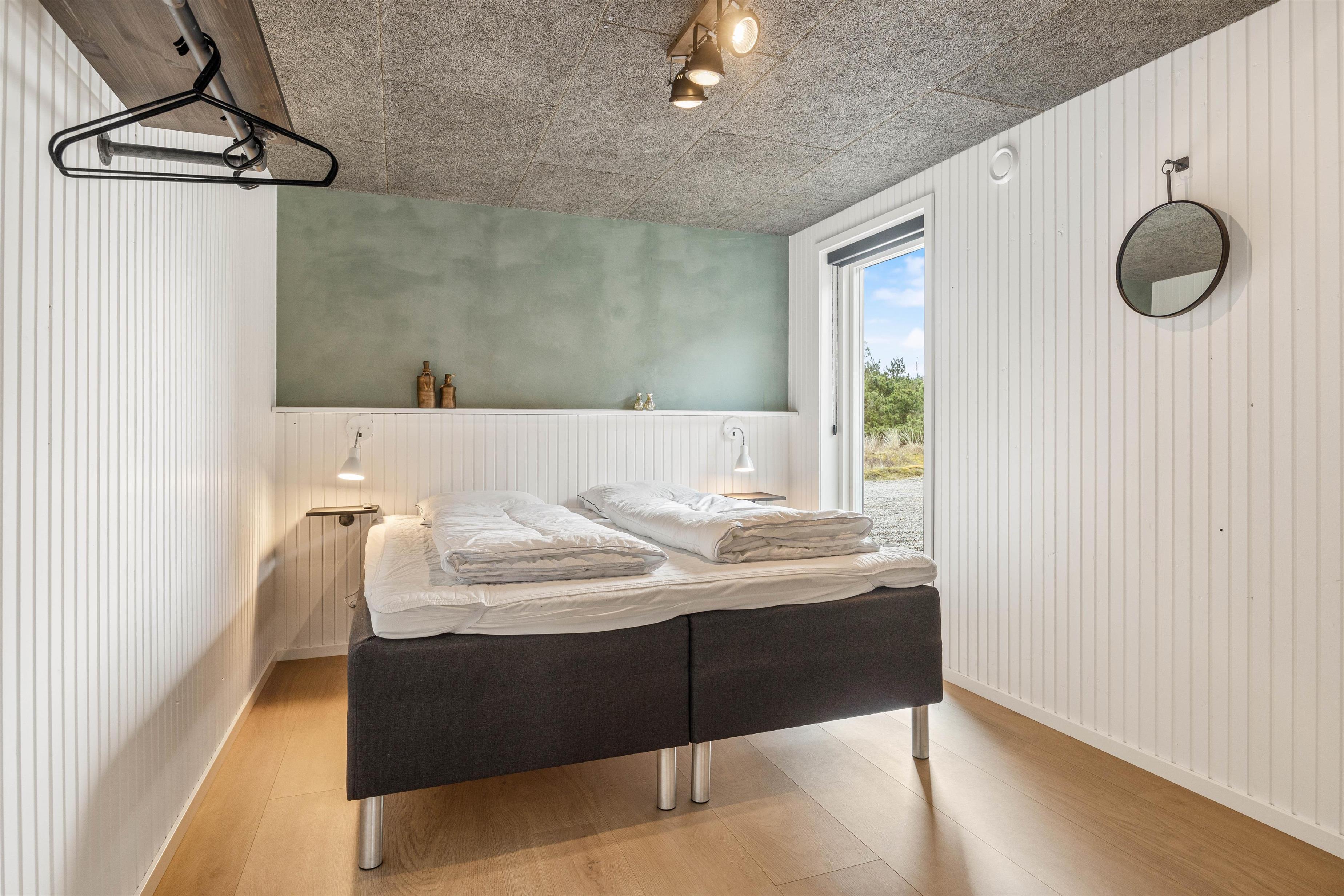 Sommerhusets to badeværelser er moderne og elegant indrettet og har naturligvis gulvvarme. Sovepladserne er placeret på to forskellige sider af huset, så I kan dele dem godt op - f.eks. hvis I holder ferie med 2 familier. I alt er der 4 soveværelser med komfortable dobbeltsenge og 2 hemse med i alt 4 sovepladser. Alle soveværelser er smukt indrettet med lyse paneler og skabe og er udstyret med eget fjernsyn.