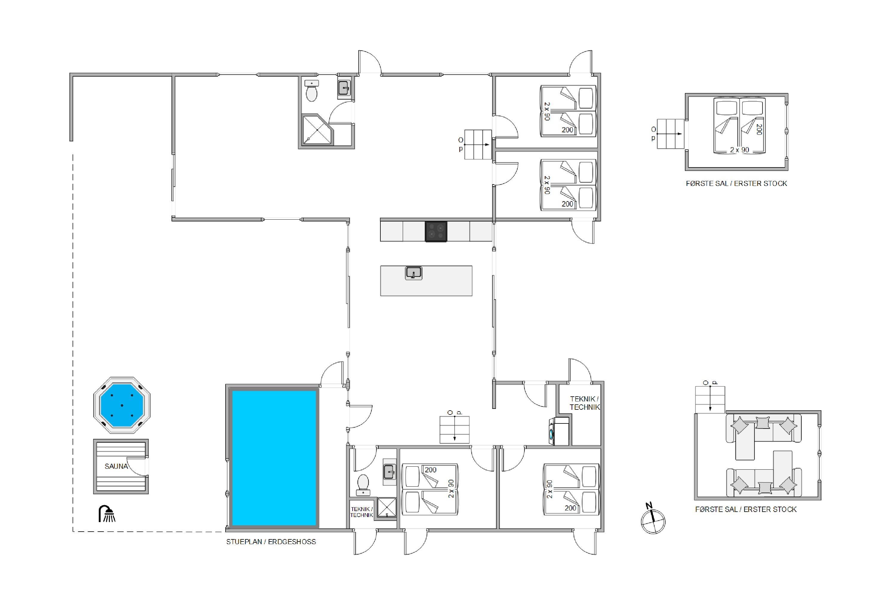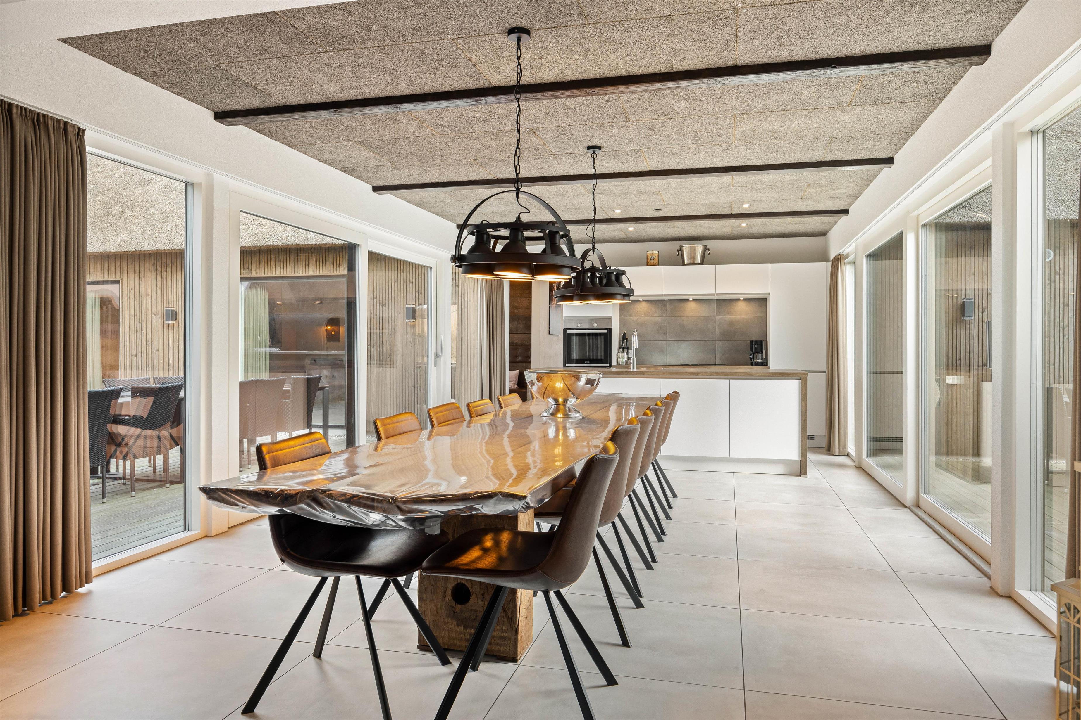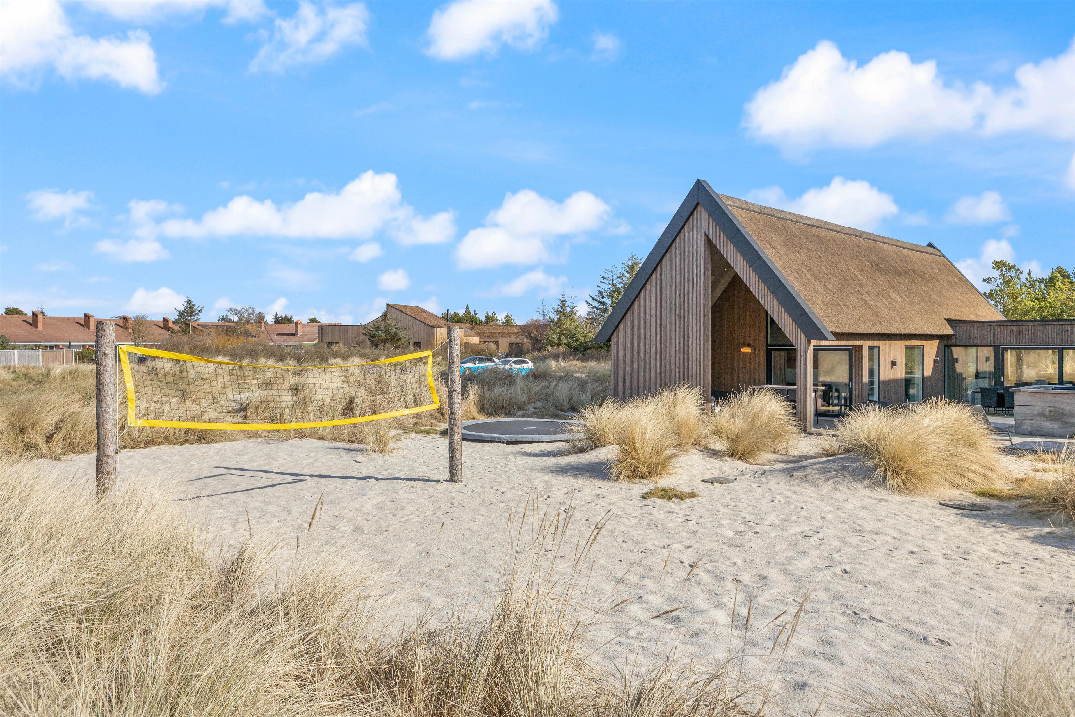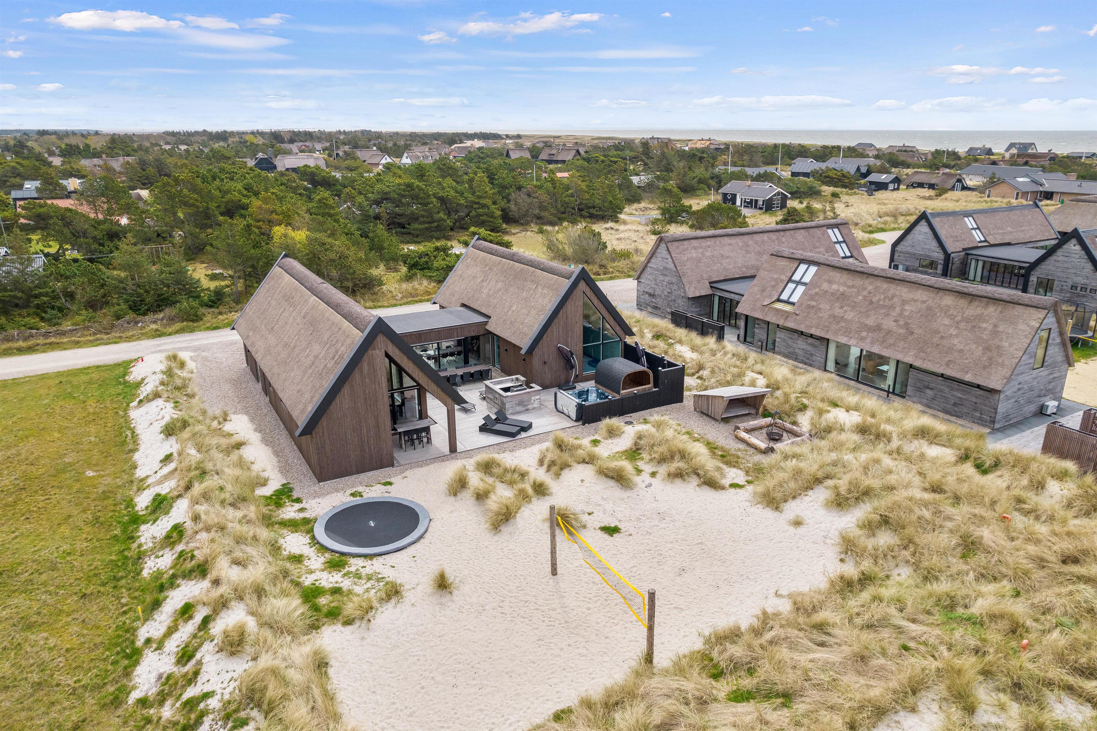 Det moderne poolhus på Sønder-Vasevej 2B i Blåvand emmer af luksus. Sommerhuset er 250 m2 stort og er bygget i 2021, og her finder I mange gode faciliteter såsom et stort aktivitetsrum, pool, spa og udendørssauna. Der er plads til 12 personer (de 2 sofaer på den ene hems er sovesofaer), og sommerhuset egner sig derfor godt til en ferie med flere familier eller en stor vennegruppe. Det dejlige sommerhus ligger blot et stenkast fra indkøbsmuligheder og den vestjyske sandstrand, hvor I kan få en masse timer til at gå.