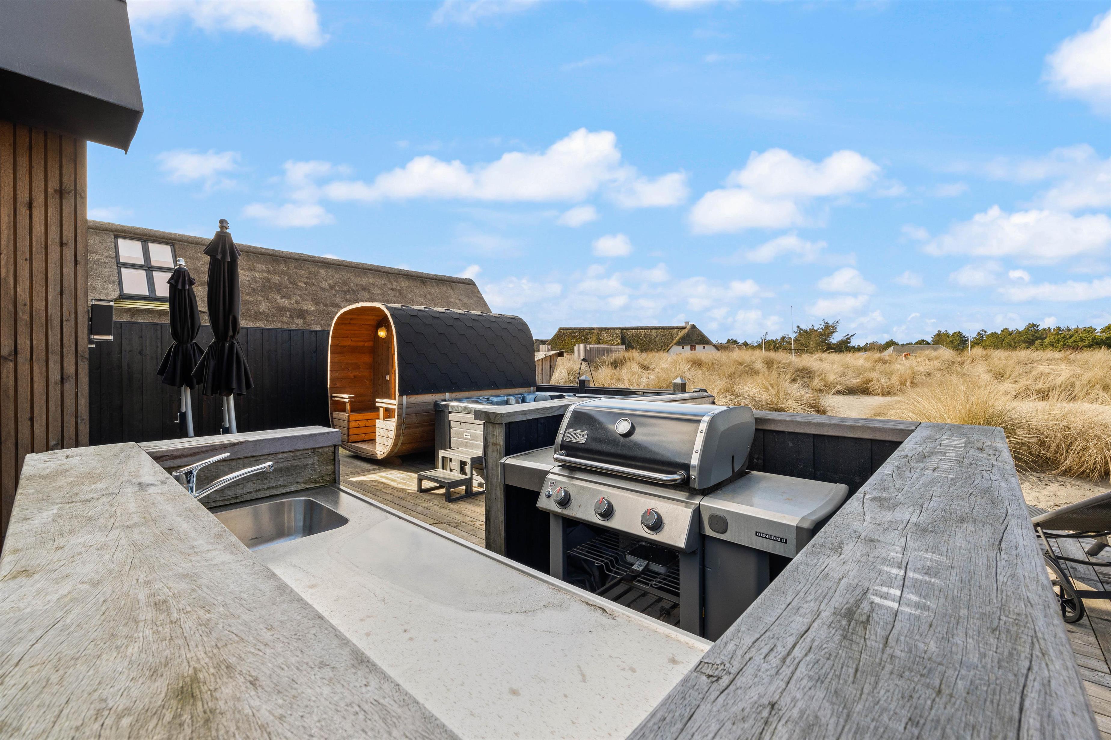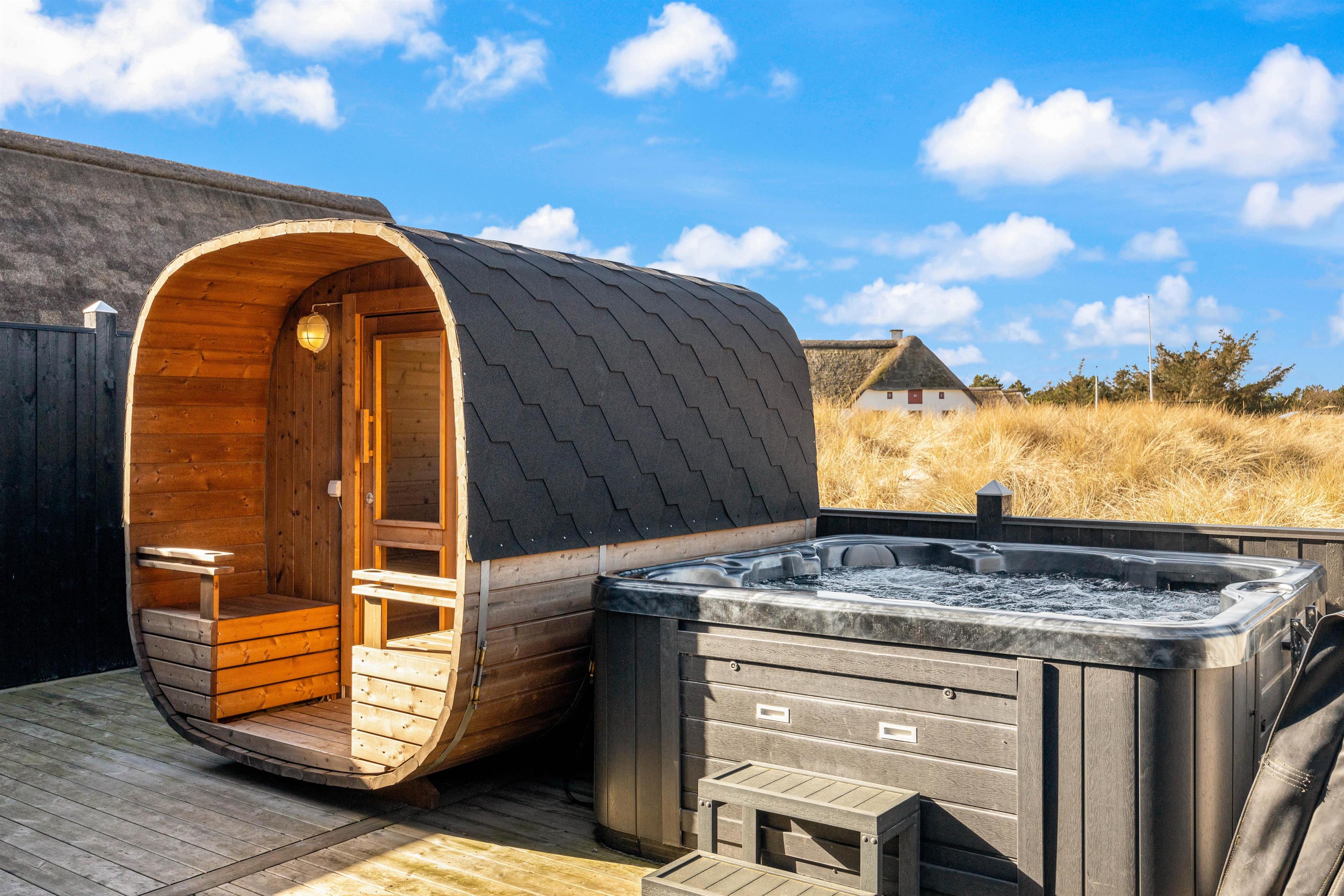 Gæster i dette feriehus må elske luksus og wellness, og her kan I jo nyde både en dejlig varm udesauna og en boblende spa til en stille morgenstund eller den smukke solnedgang. Fra 1. april til 31. oktober er der også en udebruser, hvor I kan få et forfriskende skyl eventuelt efter en tur i det brusende Vesterhav.