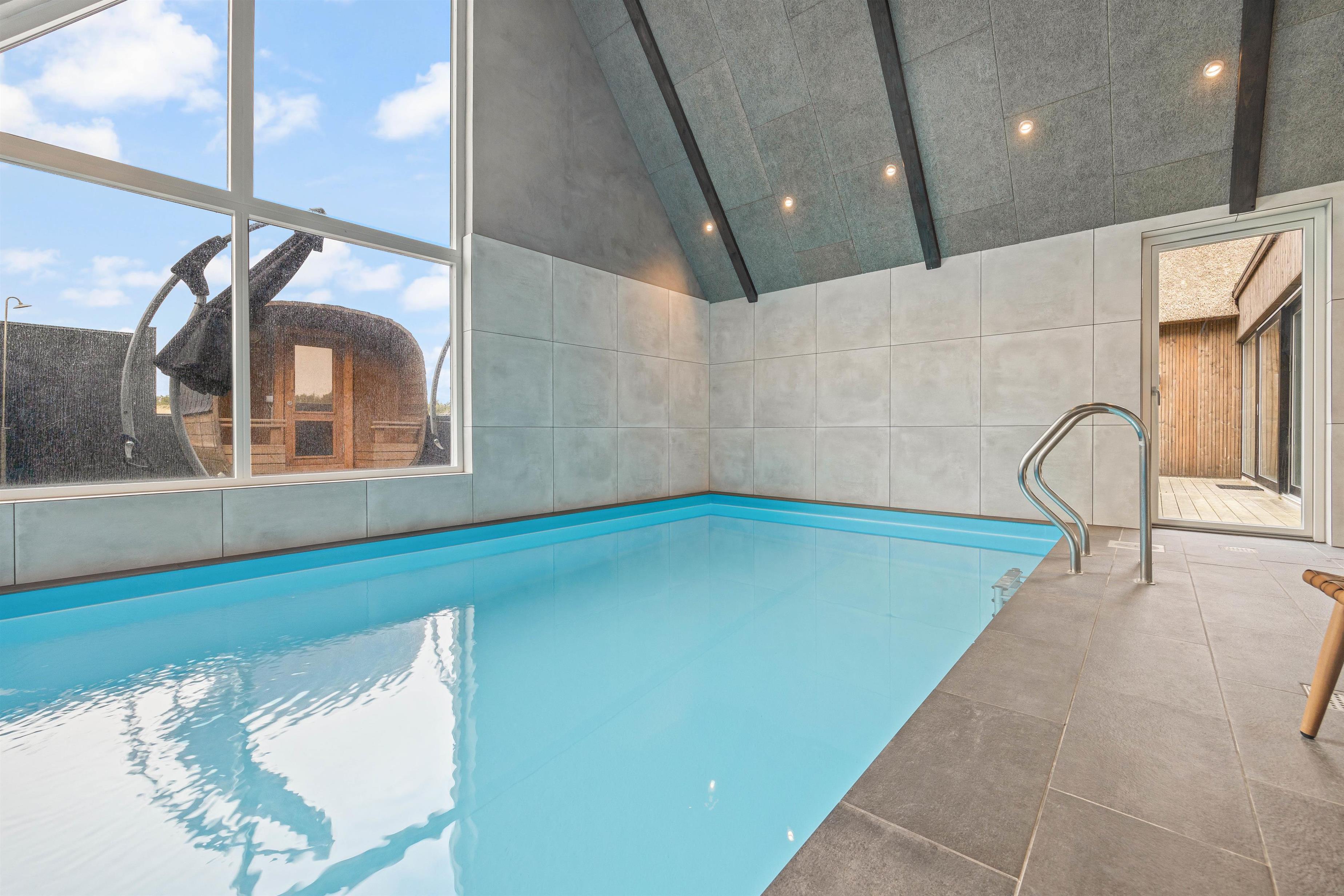 Et af de helt store plusser ved sommerhuset er den moderne pool, som både indbyder til afslapning og til timevis af sjov og plask i det blå vand, og med den udendørs spa og sauna, er der alle muligheder for at få wellness som en del af ferien.