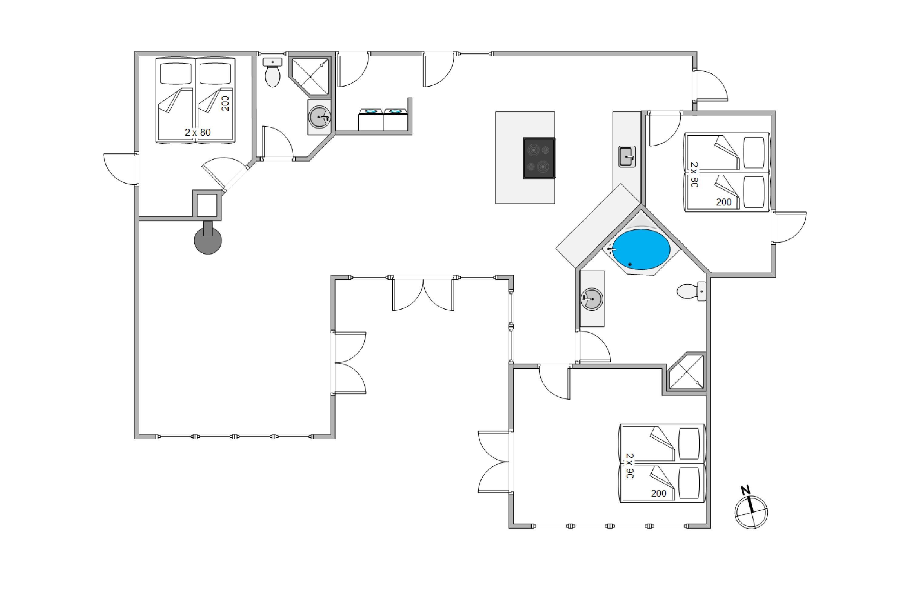 Takket være de 2 badeværelser i sommerhuset er der ingen lange ventetider til at børste tænder om morgenen. Et af badeværelserne byder på et spabad, hvor I kan slappe af efter en lang gåtur ved stranden. Som et ekstra plus er der gulvvarme på begge badeværelser, og der er både vaskemaskine og tørretumbler i feriehuset.