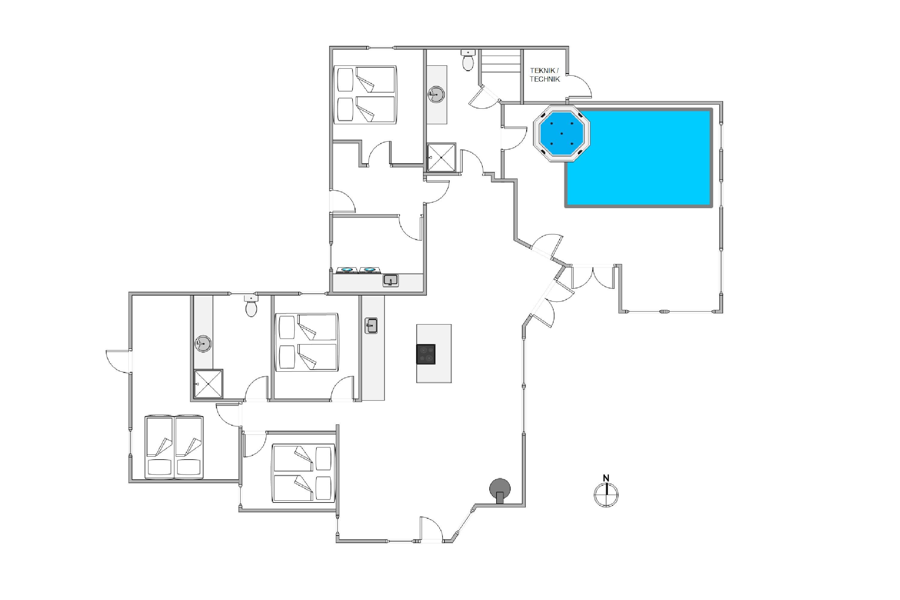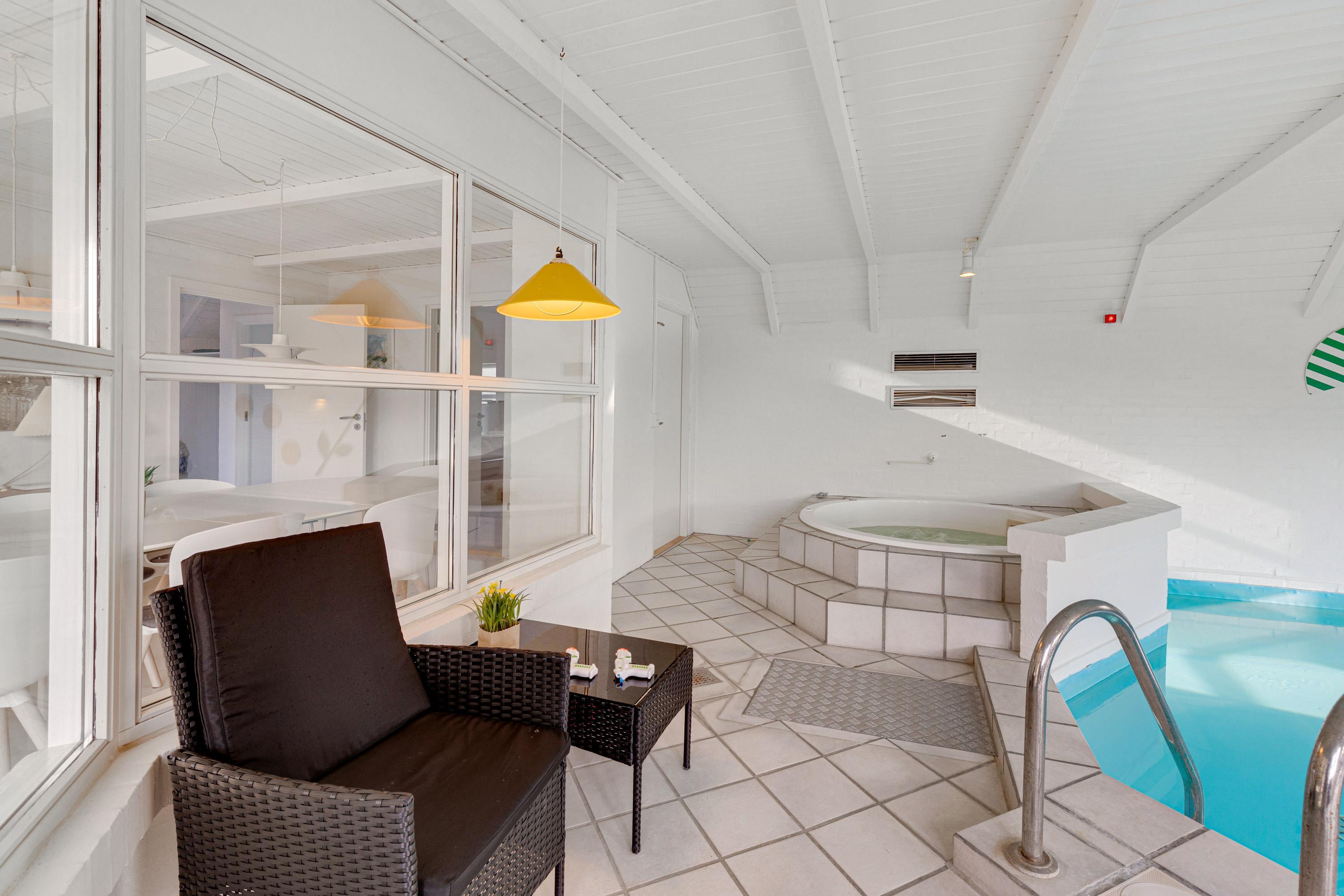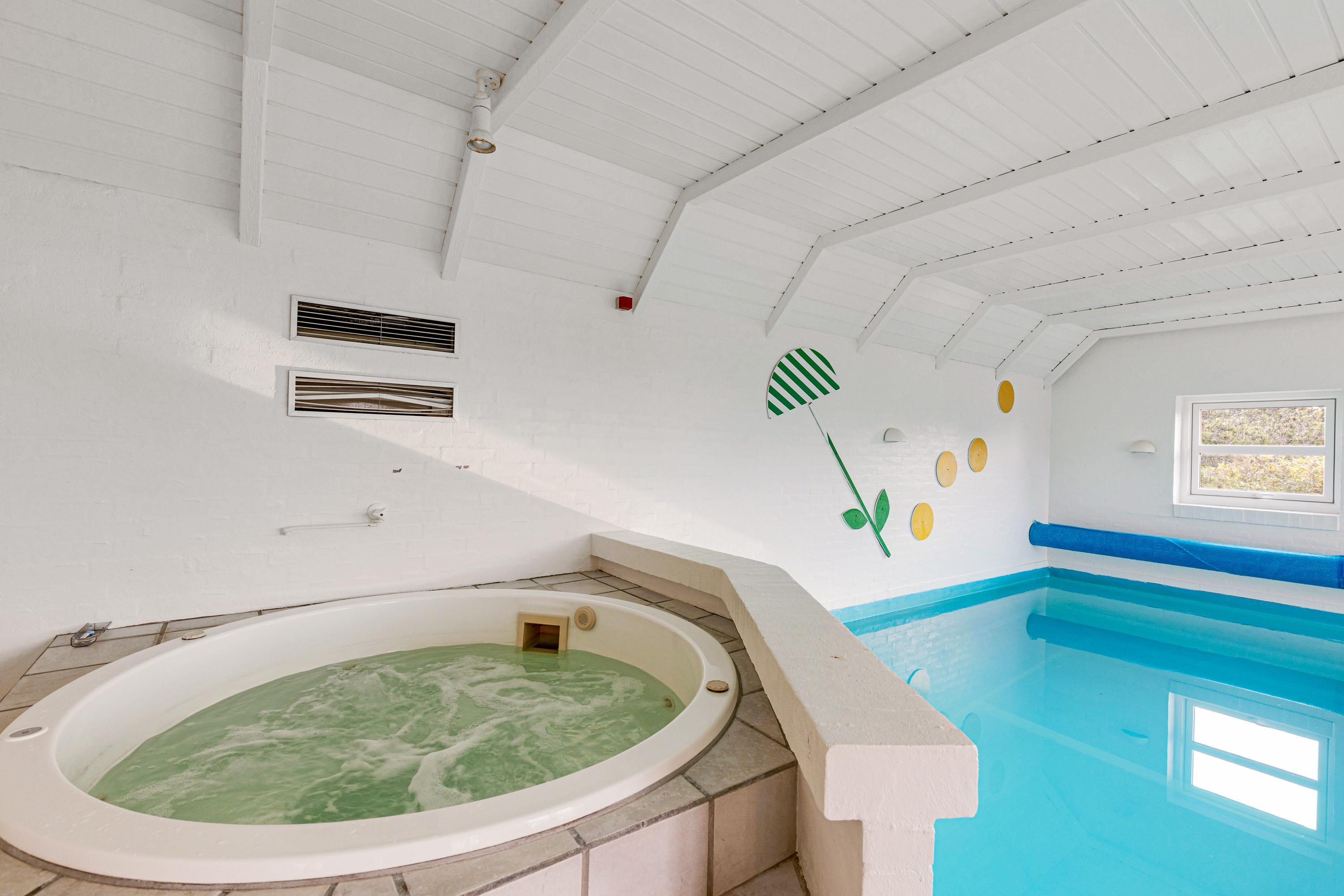 Et af sommerhusets højdepunkter er helt sikkert den store poolafdeling, som ud over en 20 kvadratmeter stor swimmingpool er indrettet med et stort spabad og et tilstødende badeværelse med sauna. Der er altså både noget for dem, der gerne vil være aktive, og dem, der hellere bare vil slappe af.