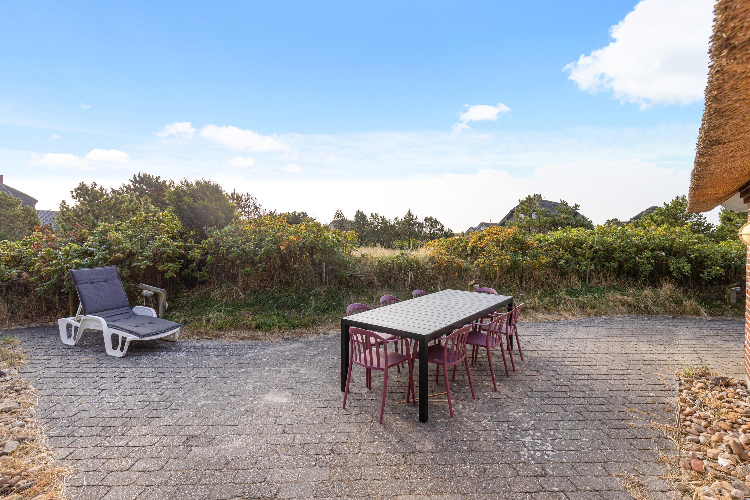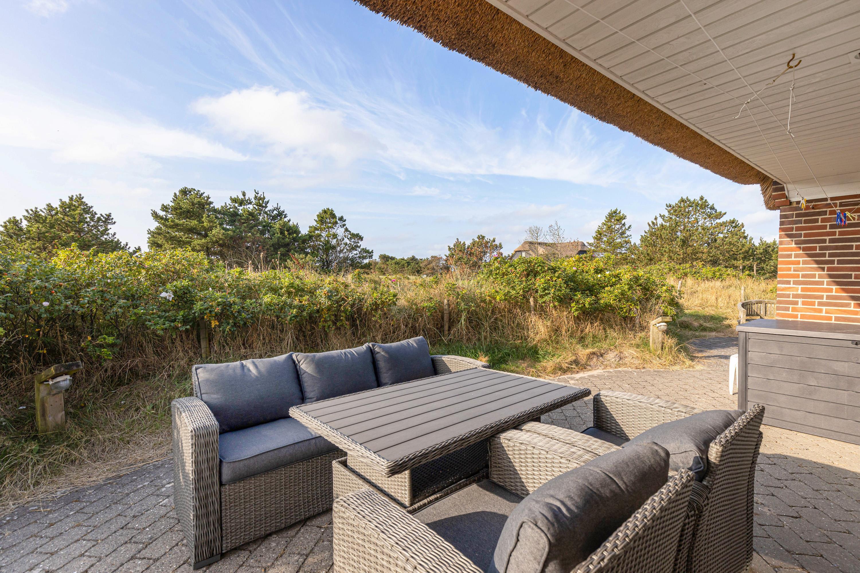Udenfor på den 2491 m2 store naturgrund finder I et stort, afskærmet terrasseområde mod vest. Her kan I nyde den friske luft i de læfyldte omgivelser med Vesterhavets brusen i baggrunden – og herfra har I de perfekte siddepladser til at overvære den flotte solnedgang.