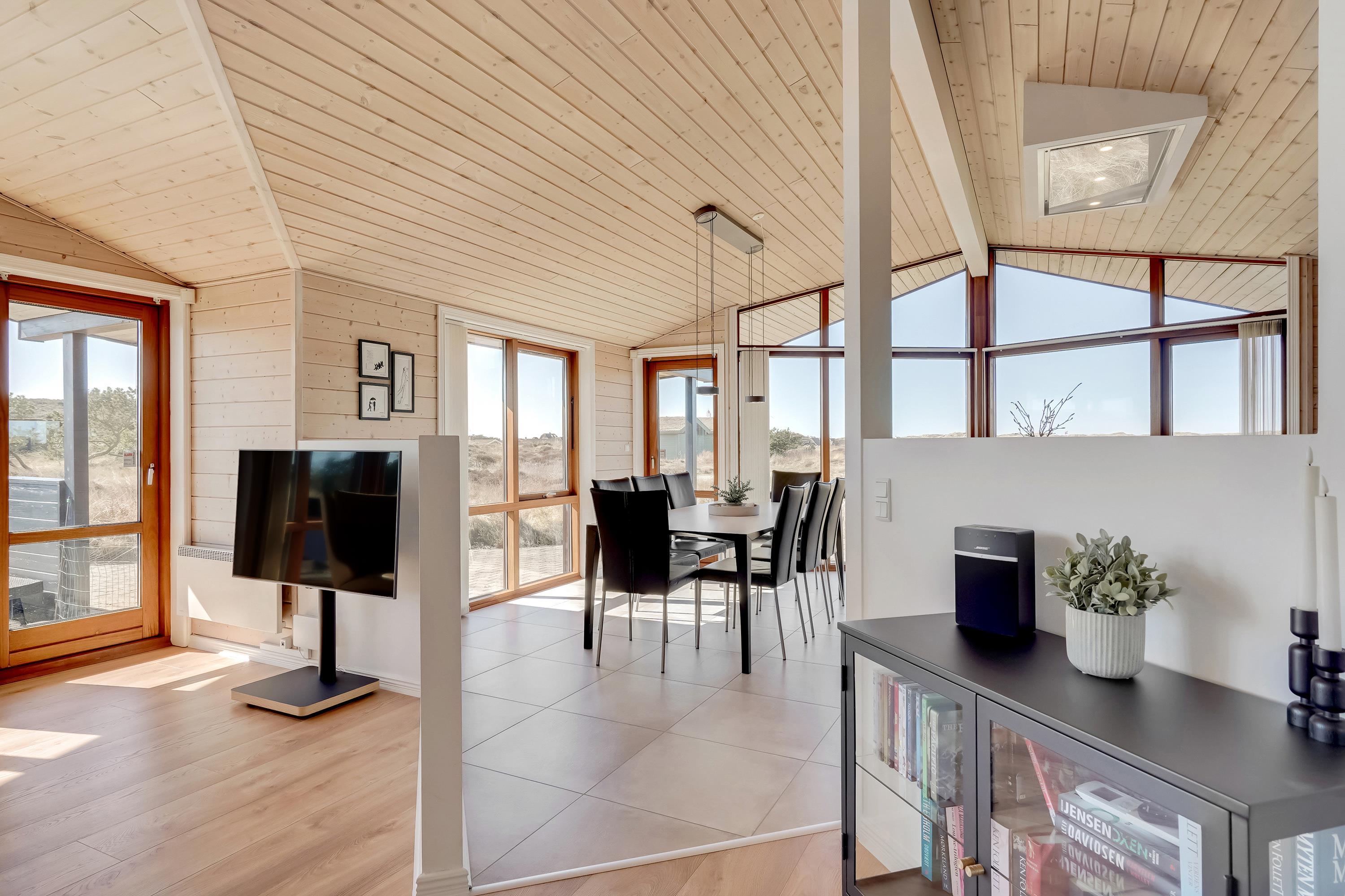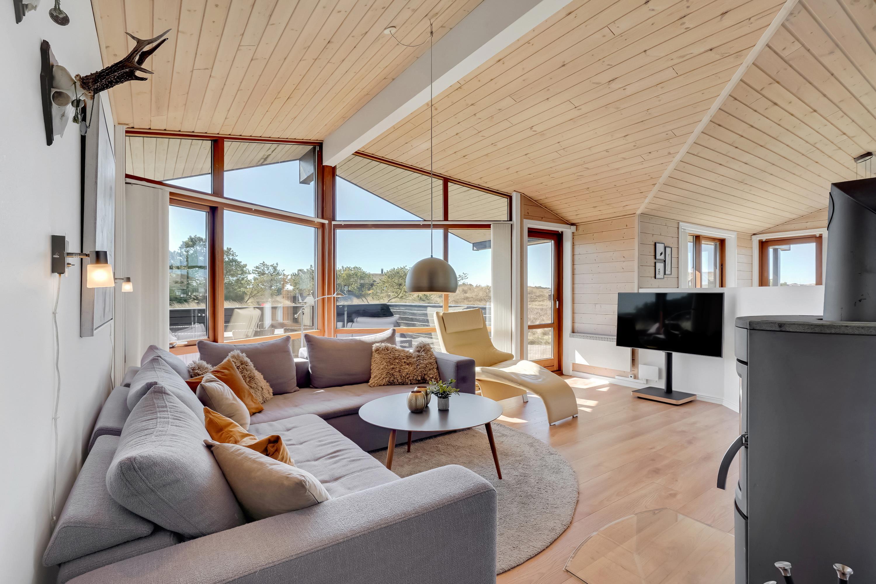 Et ophold i sommerhuset i Blåvand lover uforglemmelige feriedage fyldt med komfort og afslapning. Kast jer ud i Nordsøens blå bølger, udforsk Blåvands betagende natur og byliv, eller nyd afslappende timer i denne smagfuldt indrettede feriebolig, hvor I fra de store vinduer kan følge med i vejrets skiften. Her vil du kunne få læst den bog, du har tænkt på i lang tid - og måske kommer et rådyr forbi huset?