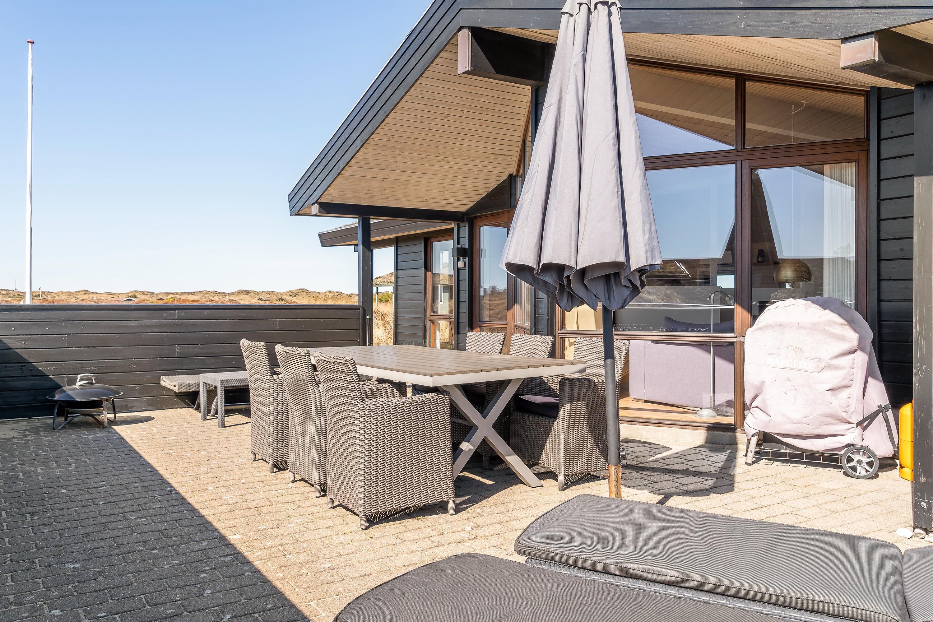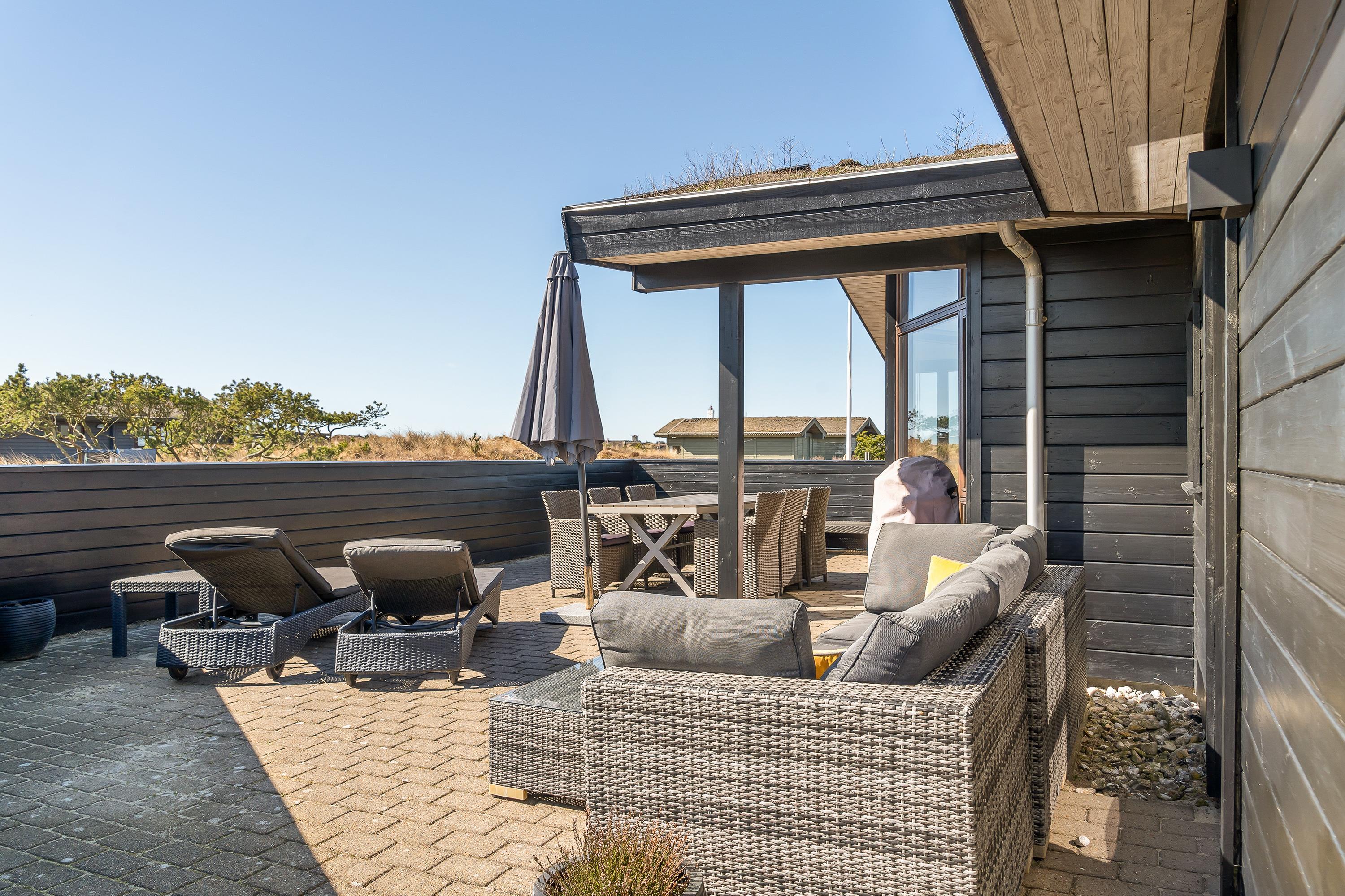 Ikke kun selve huset, men også naturgrunden med havemøbler og en grill giver jer mulighed for at slappe af i det fri eller arrangere en BBQ, så I kan hygge i fællesskab. Har man brug for fred og ro i eget selskab, kan man nyde den friske luft og roen på den åbne terrasse, måske over en god bog.