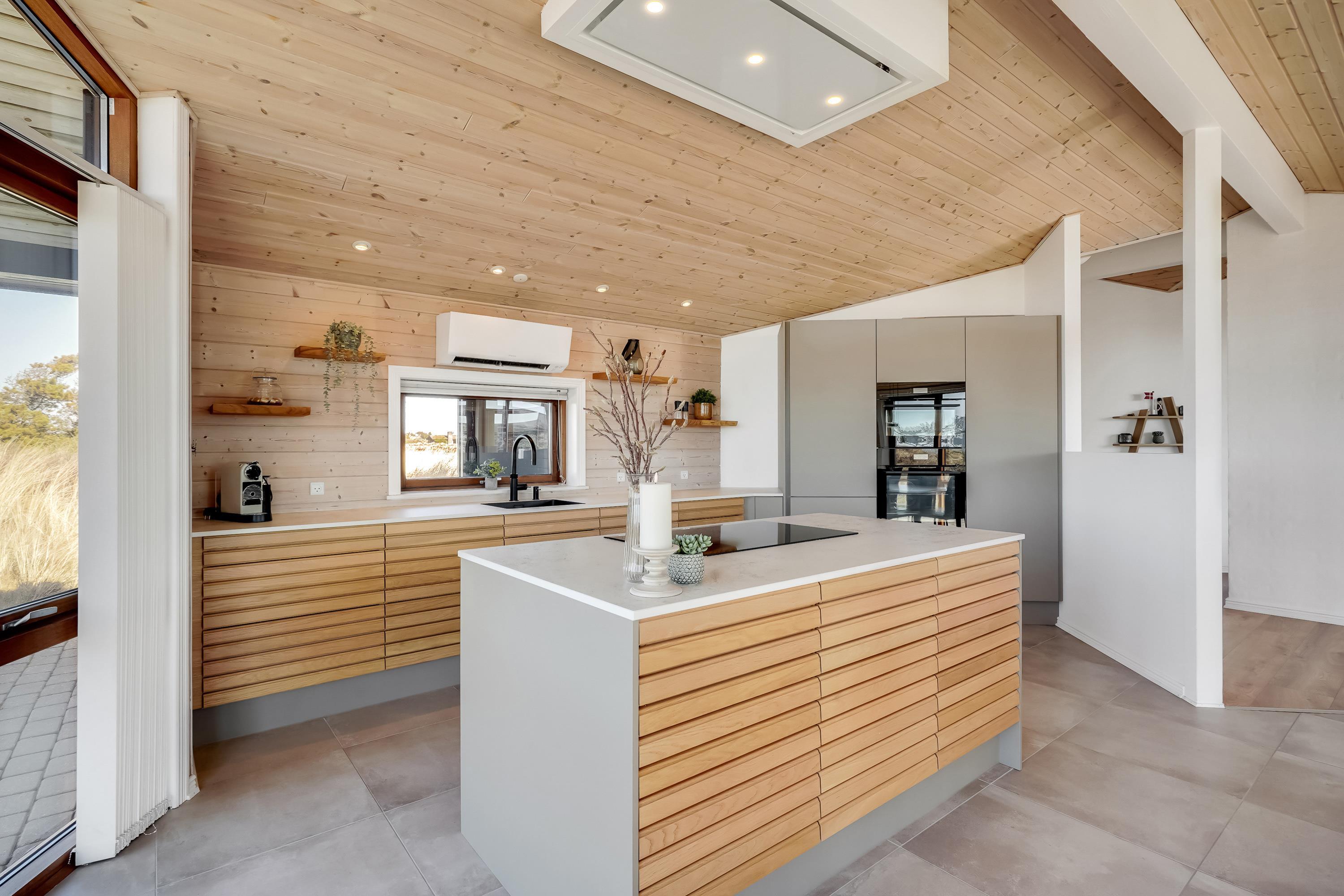 Det fuldt udstyrede køkken inkluderer ikke kun en opvaskemaskine, der letter arbejdet med vask af servicet, men også en separat fryser på 90 liter og en mikroovn, så I har plads til mange mad-indkøb og nemt og hurtigt kan tilberede dejlige feriemåltider og nyde dem fuldt ud.