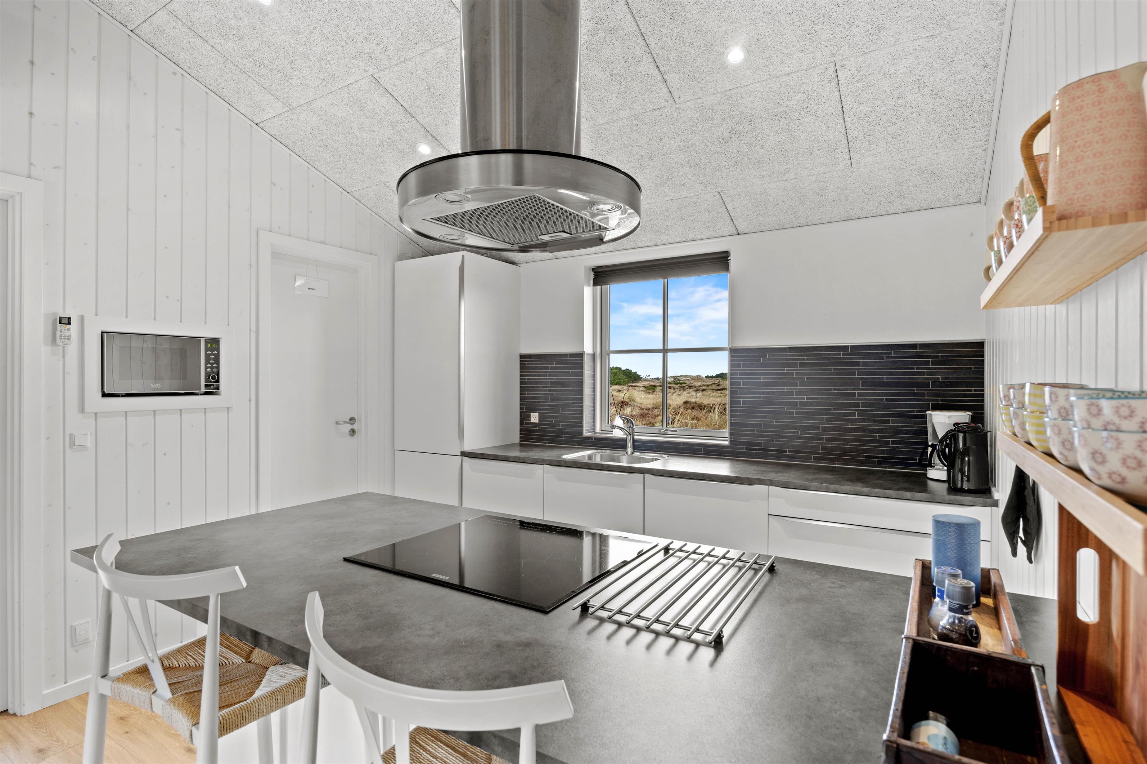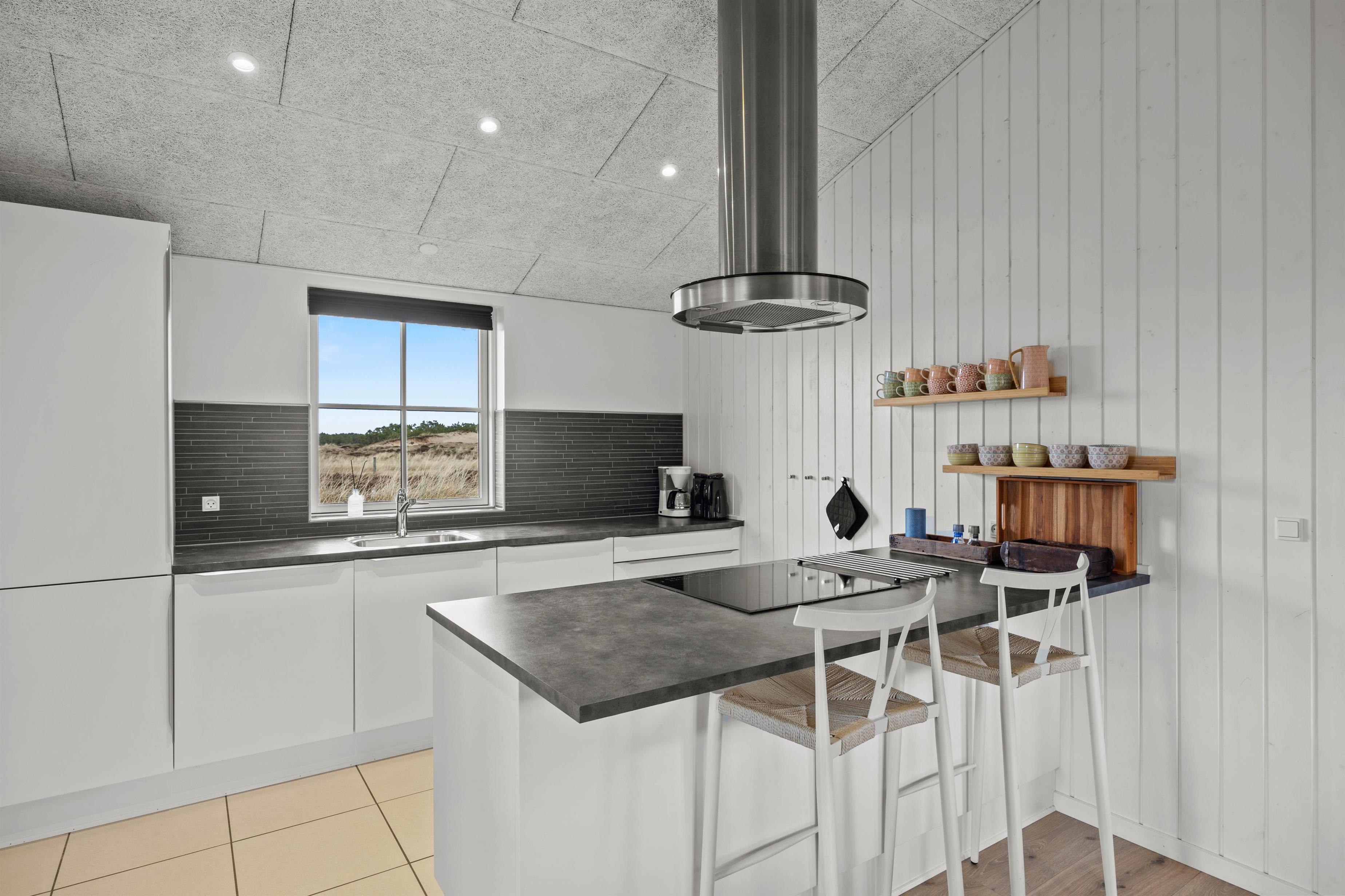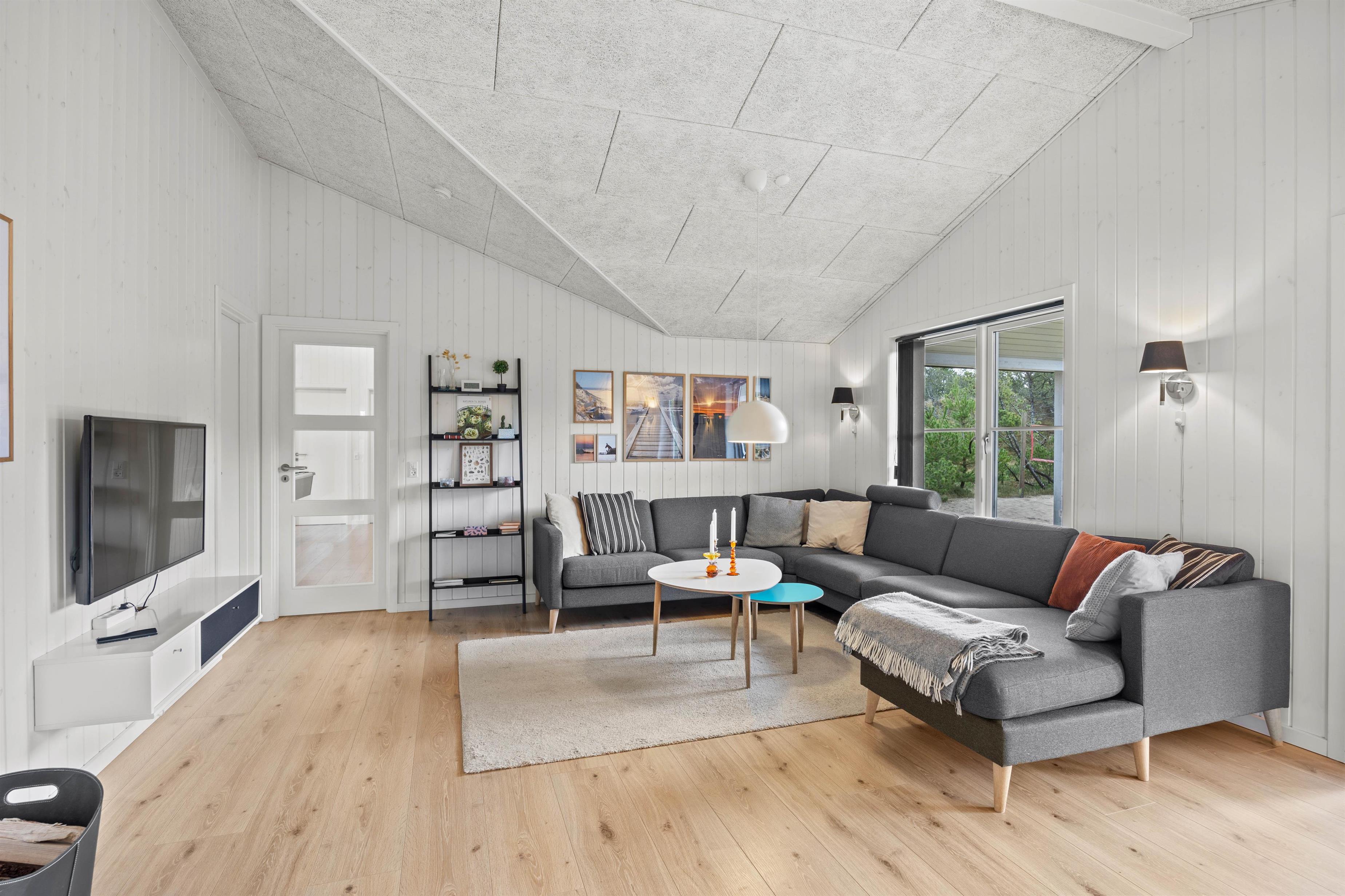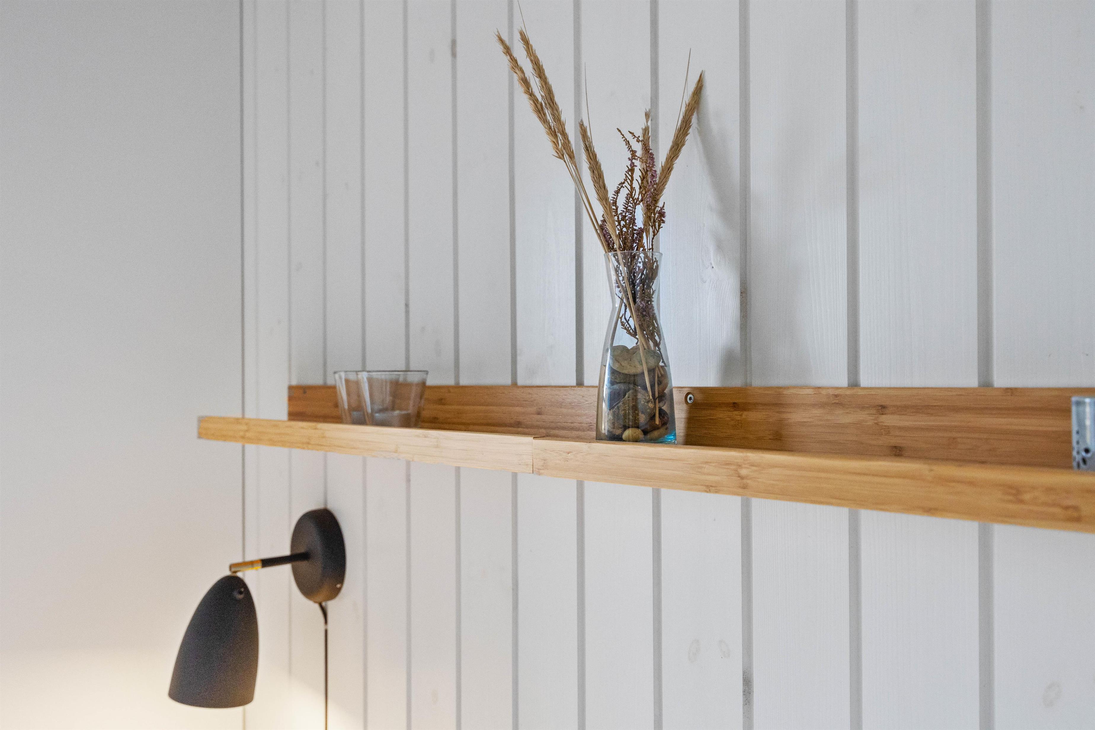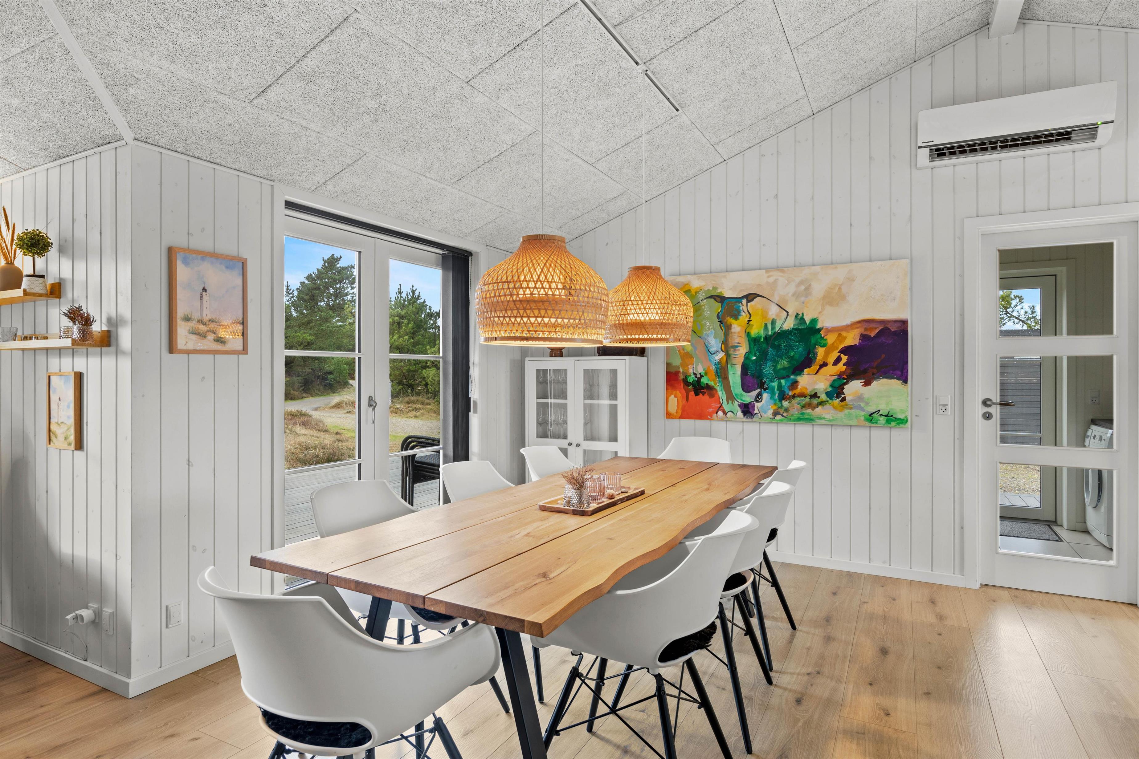 Lyse lofter, gulve og vægge, skaber sammen med en moderne og smagfuld indretning den helt rigtige ferieatmosfære. Stue- og spiseafdelingen med den hyggelige brændeovn fungerer som husets midtpunkt, og det veludstyrede køkken rummer alt, hvad feriekokkene har brug for.