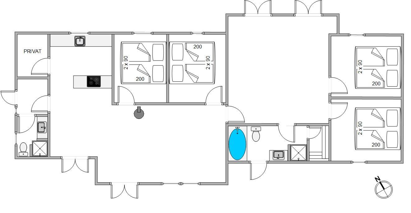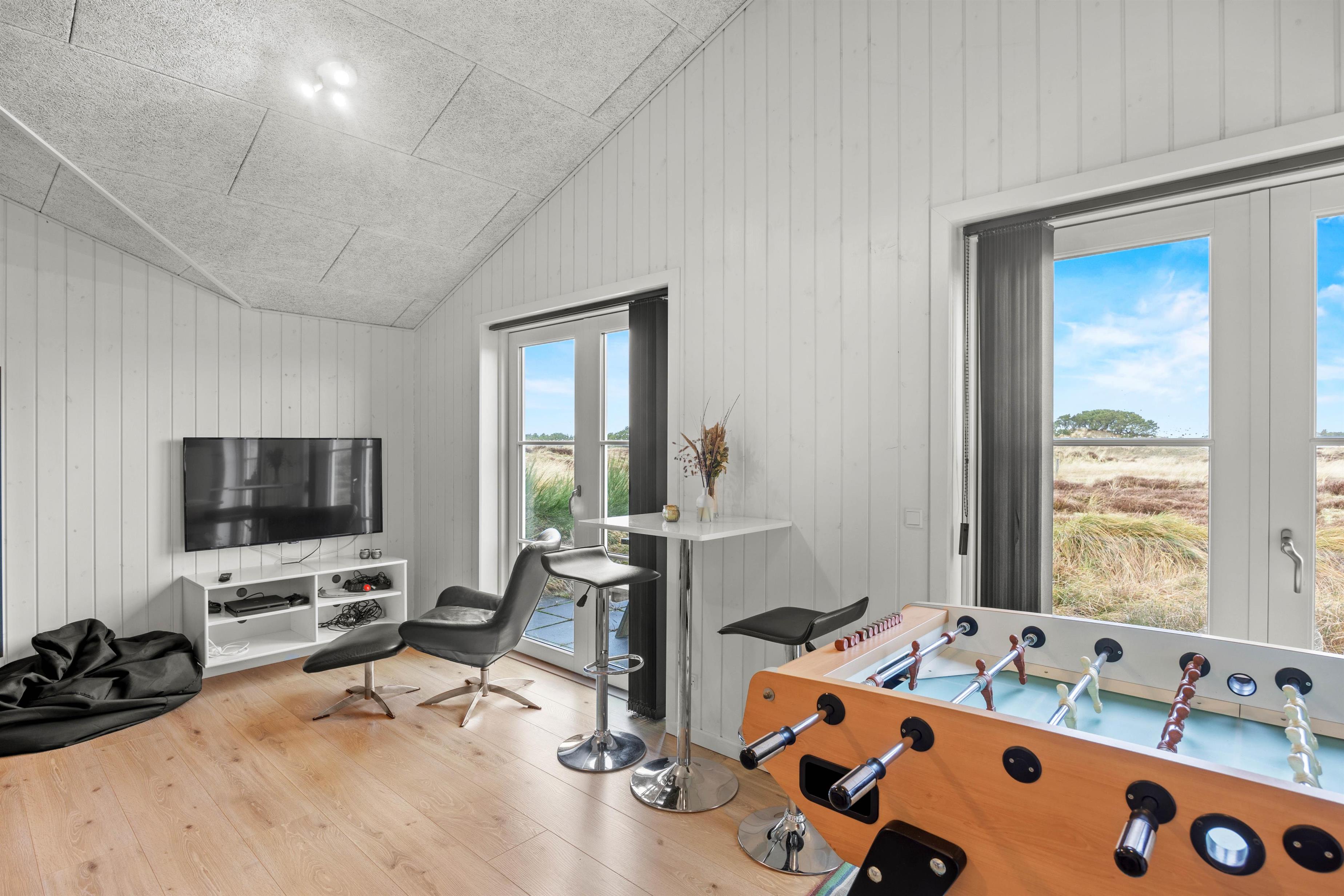 Lyse og åbne rum samt en moderne indretning sætter i dette nye hus rammerne for en både aktiv og afslappende ferie. Det femstjernede hus til 8 personer er udstyret med flere lækre faciliteter, som garanterer underholdning for både store og små; wellness for krop og sjæl i saunaen og spabadet, og intense volleyballkampe og billardturneringer.