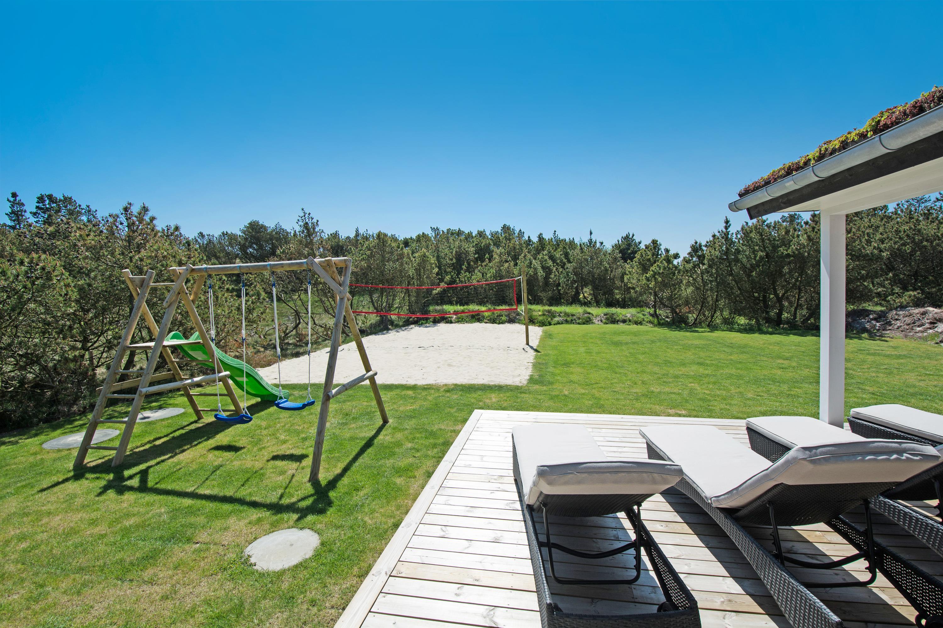 Til børnene er der sat rutsjebane og gyngestativ op, og ud over græsplænen er der også sat en volleynet op, så hele familien kan samles om et spændende spil volleyball på en varm forårs- eller sommerdag - inden det er tid til kolde forfriskninger.