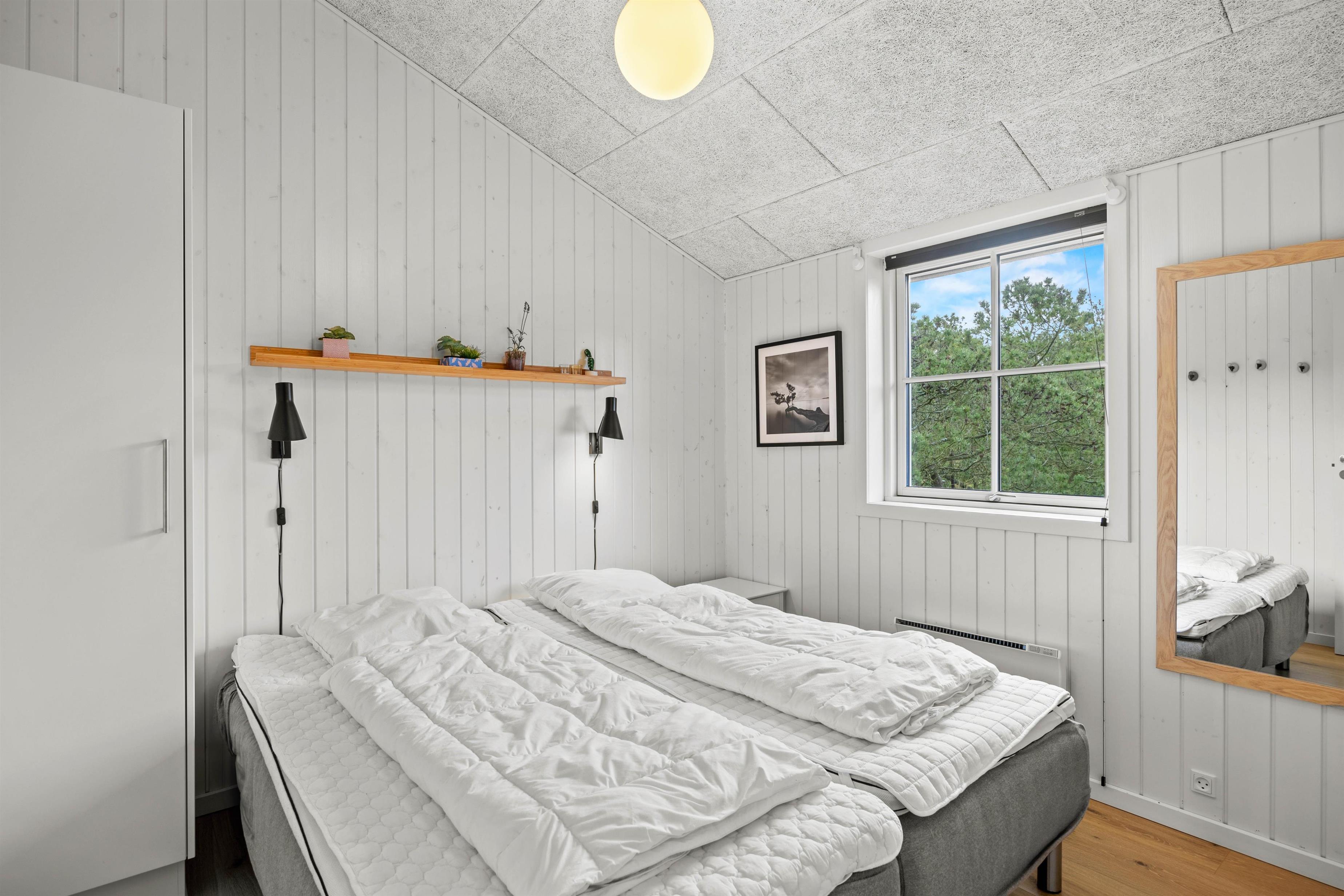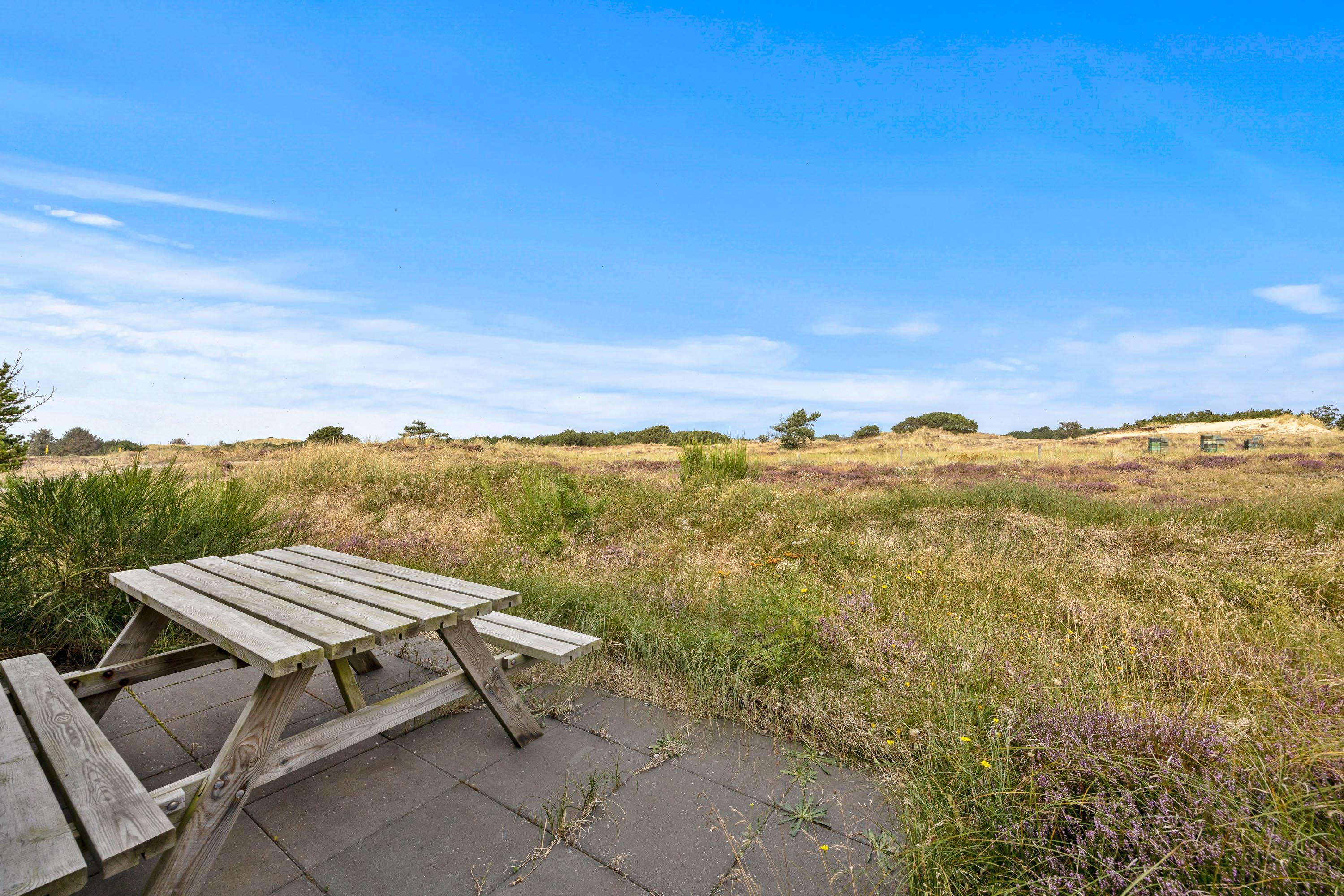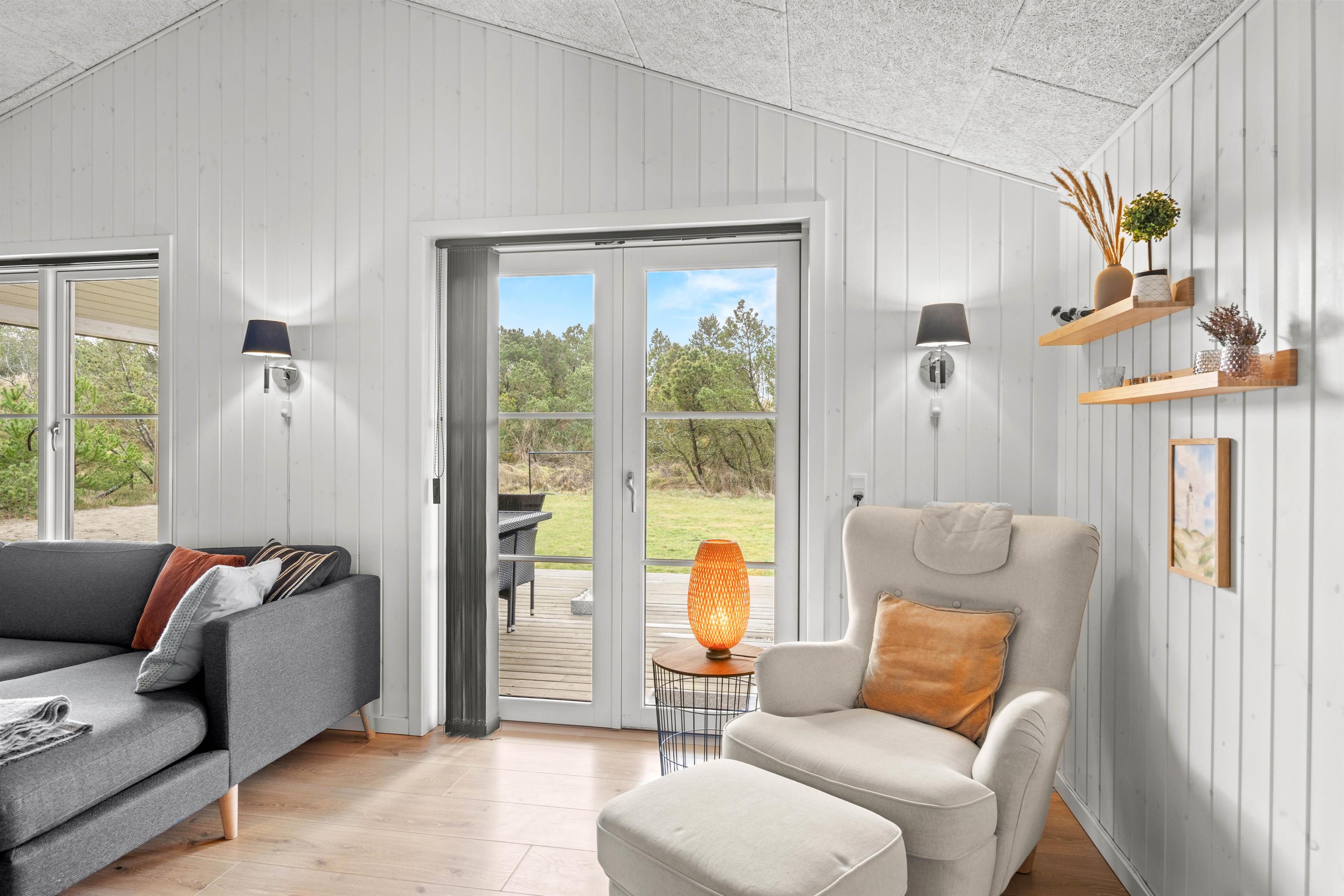 Helt ugeneret i udkanten af ferieområdet ligger dette feriehus, på en dejlig grund midt i den grønne natur. Den store træterrasse, der omgiver huset, er godt udstyret med gode havemøbler og både gas- og kulgrill, så I kan dase i solen dagen lang og runde dagen af med en lækker grillmiddag i den lune og stille sommeraften.