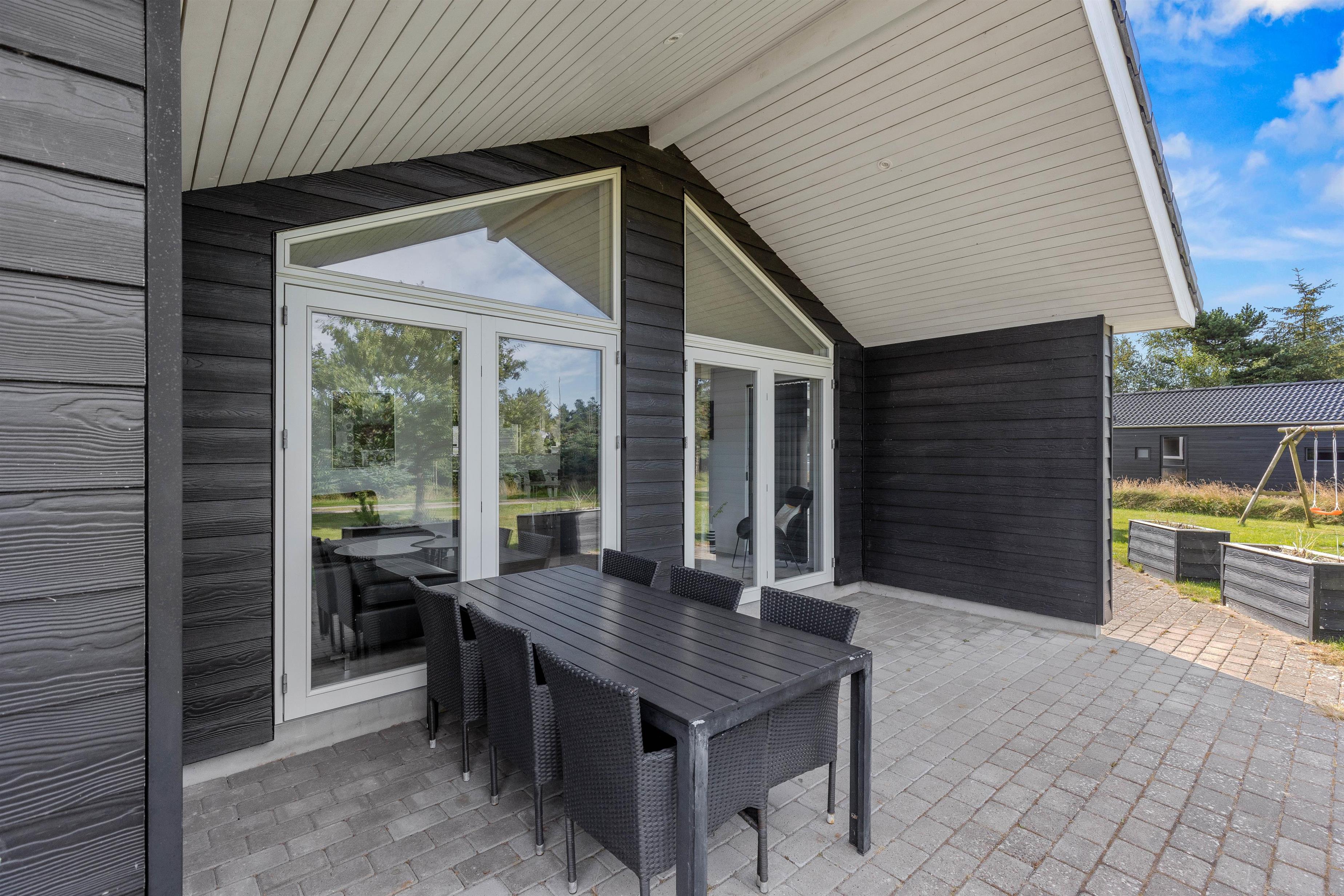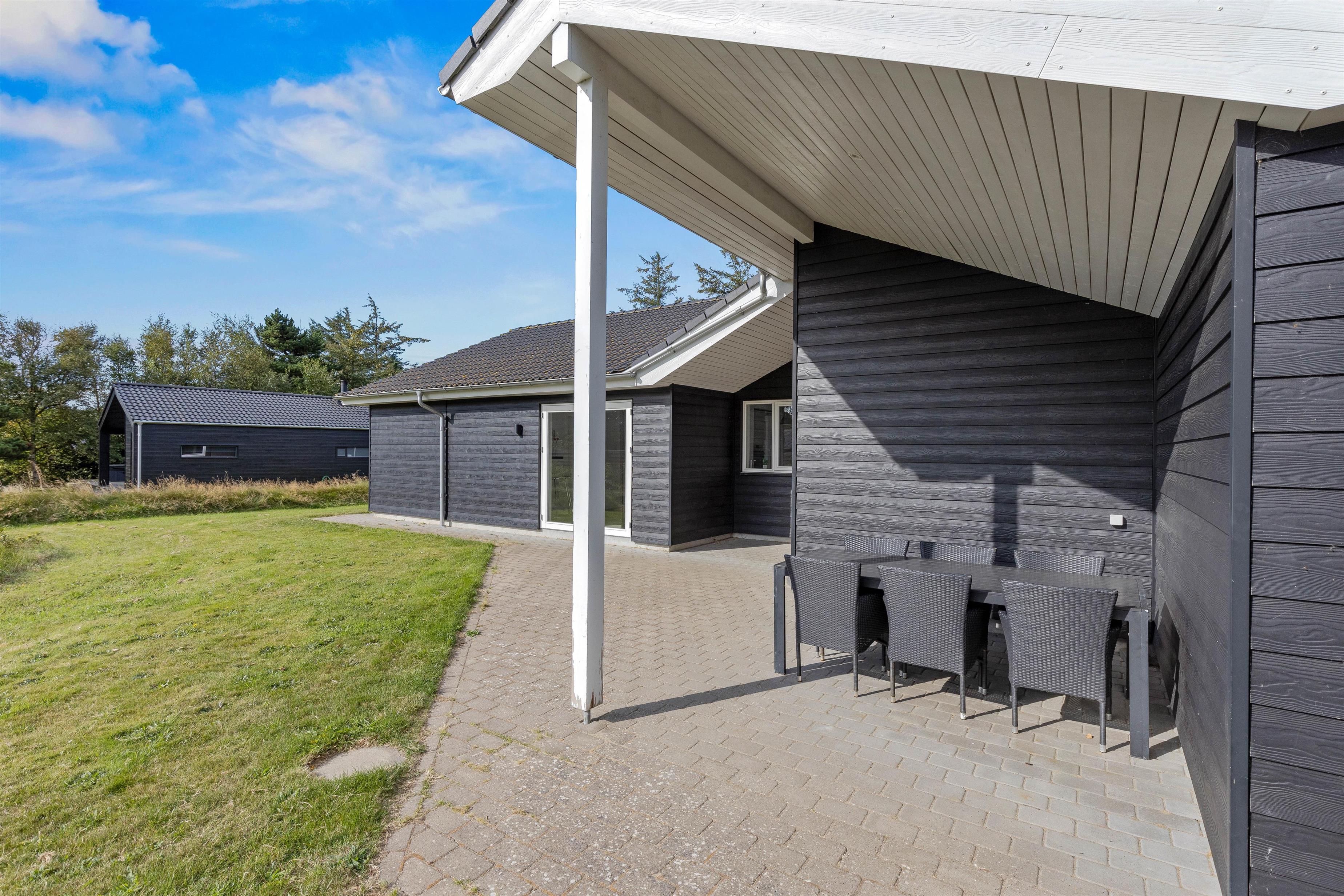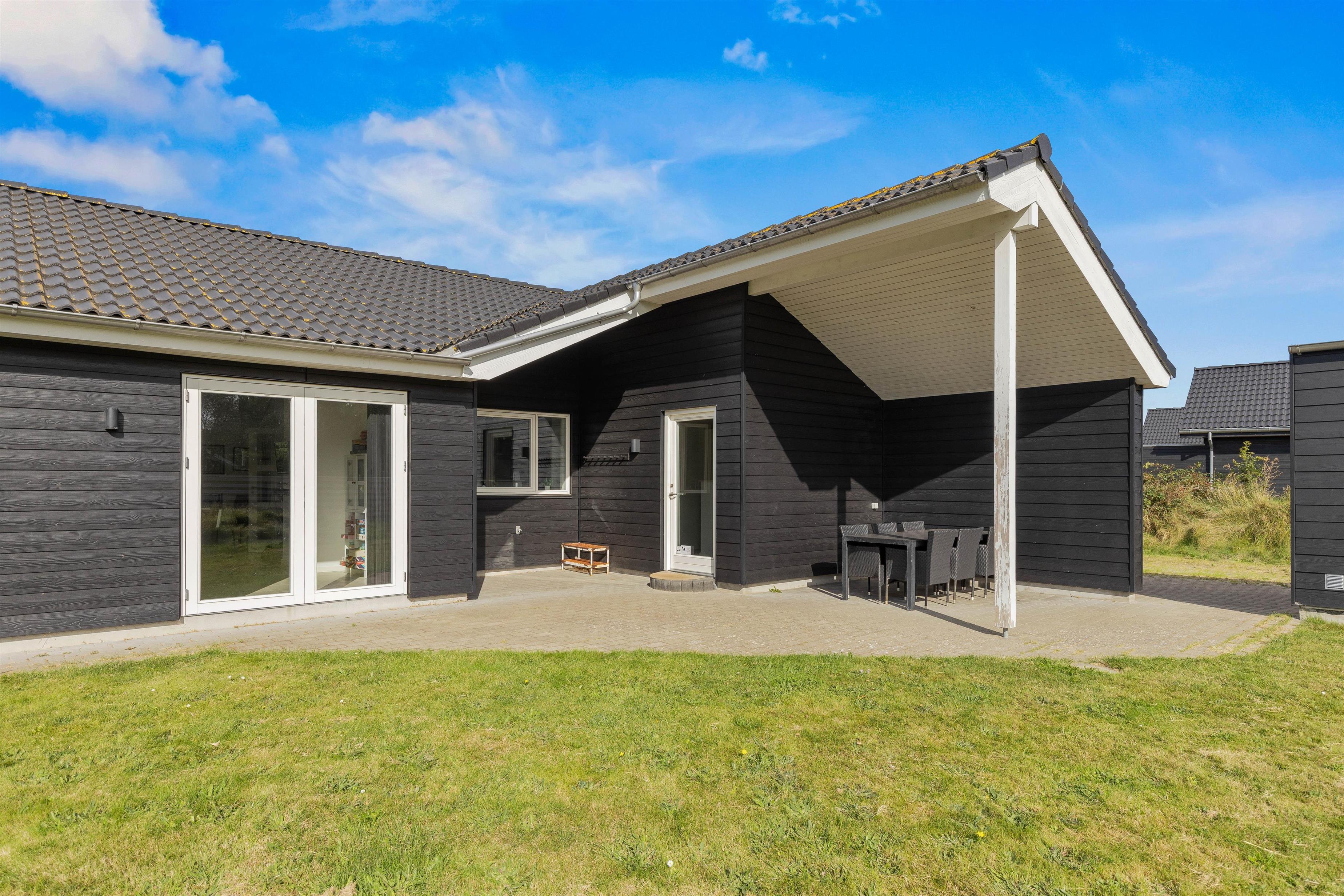 Fra aktivitetsrummet og stuen har I direkte udgang til terrassen, der er delvist overdækket. Her står både havemøbler, liggestole og grill klar til jer, så I kan nyde sommersolen i løbet af dagen og slutte af med en hyggelig grillaften.