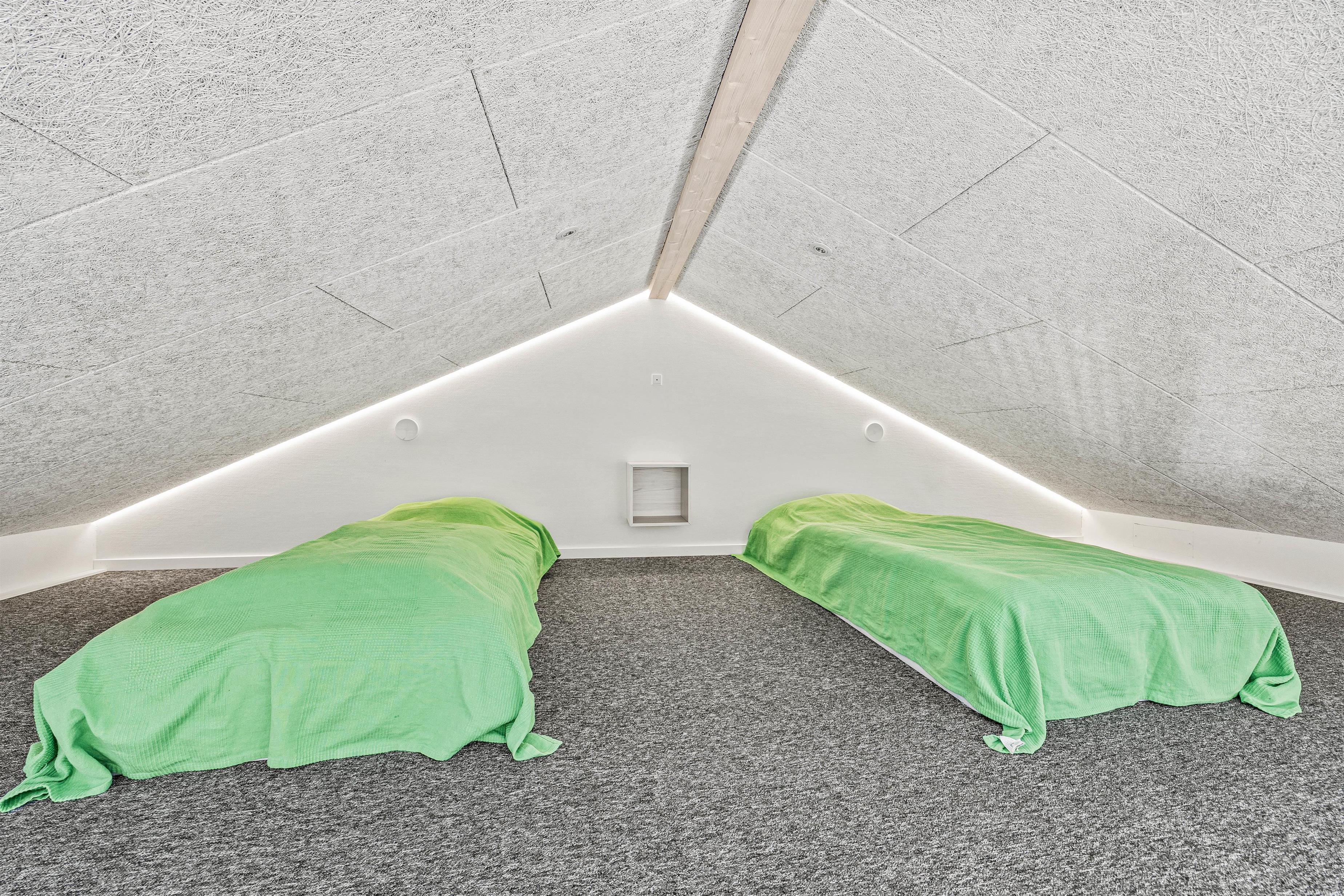 De 8 sovepladser fordeler sig på 3 gode værelser samt en hems. Der er 2 værelser med en dobbeltseng og et værelse med 2 enkeltsenge, mens der på hemsen er 2 madrasser. Her vil børnene helt sikkert elske at tilbringe tid – Både til natten og i løbet af dagen.