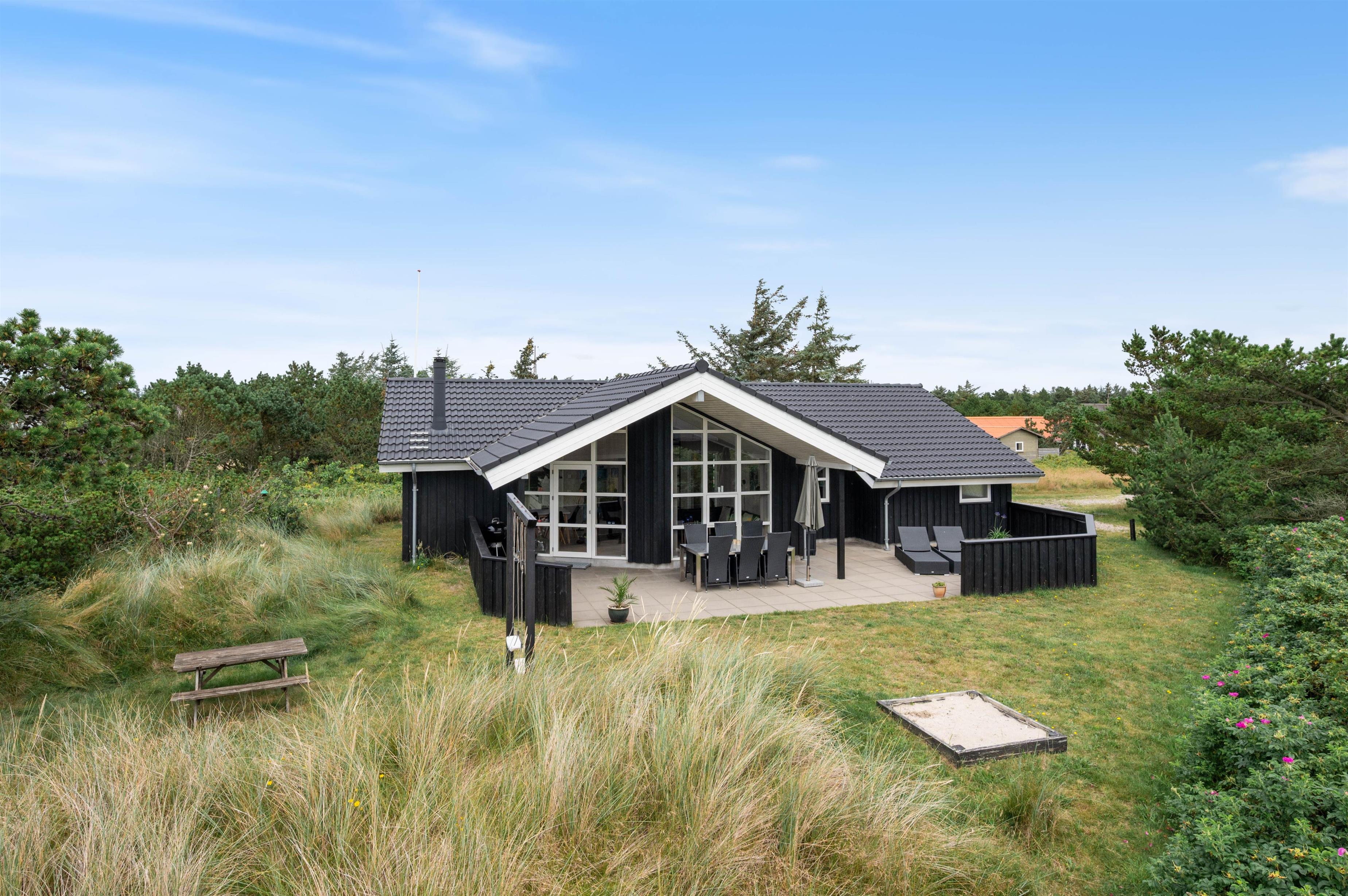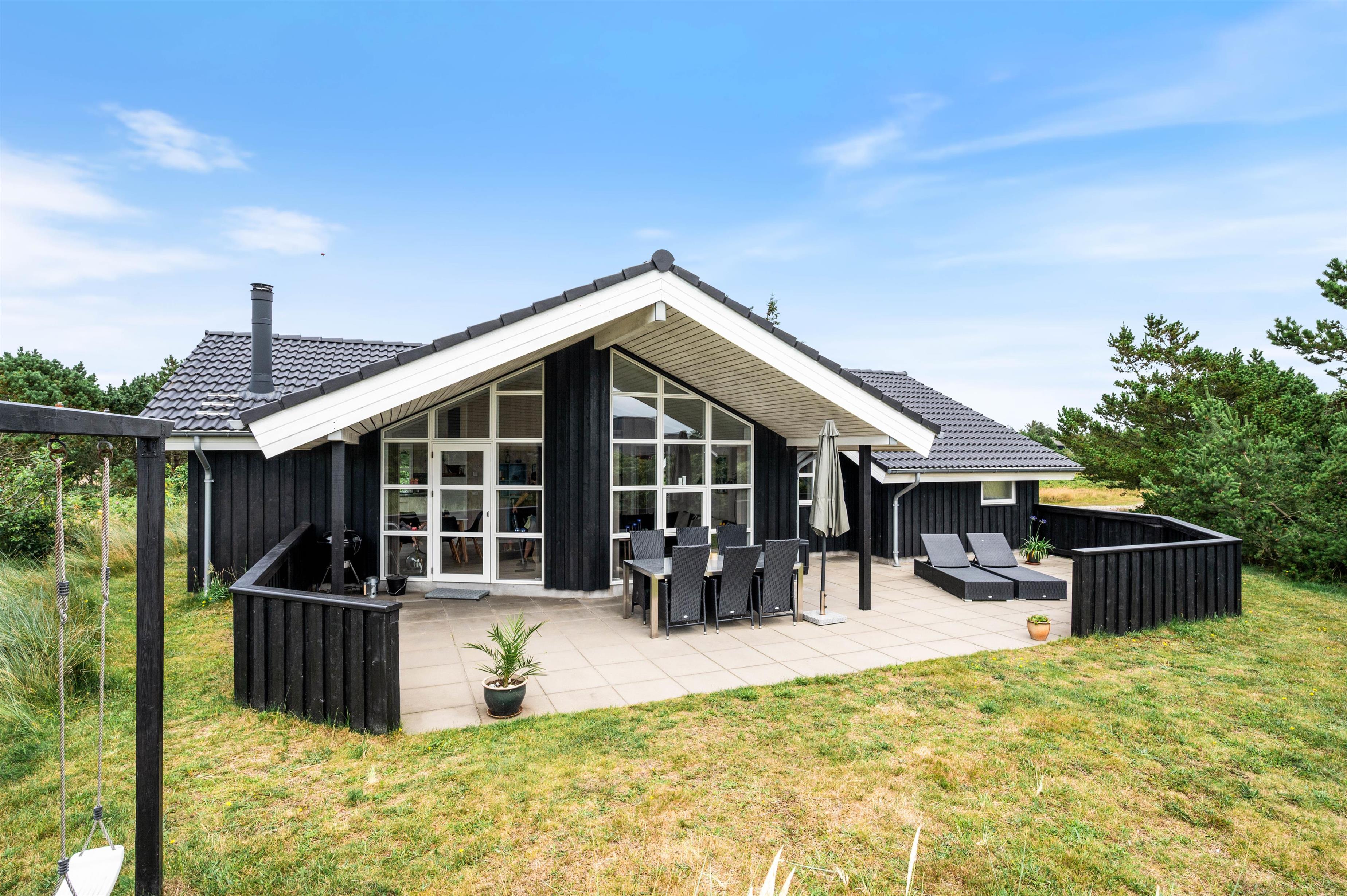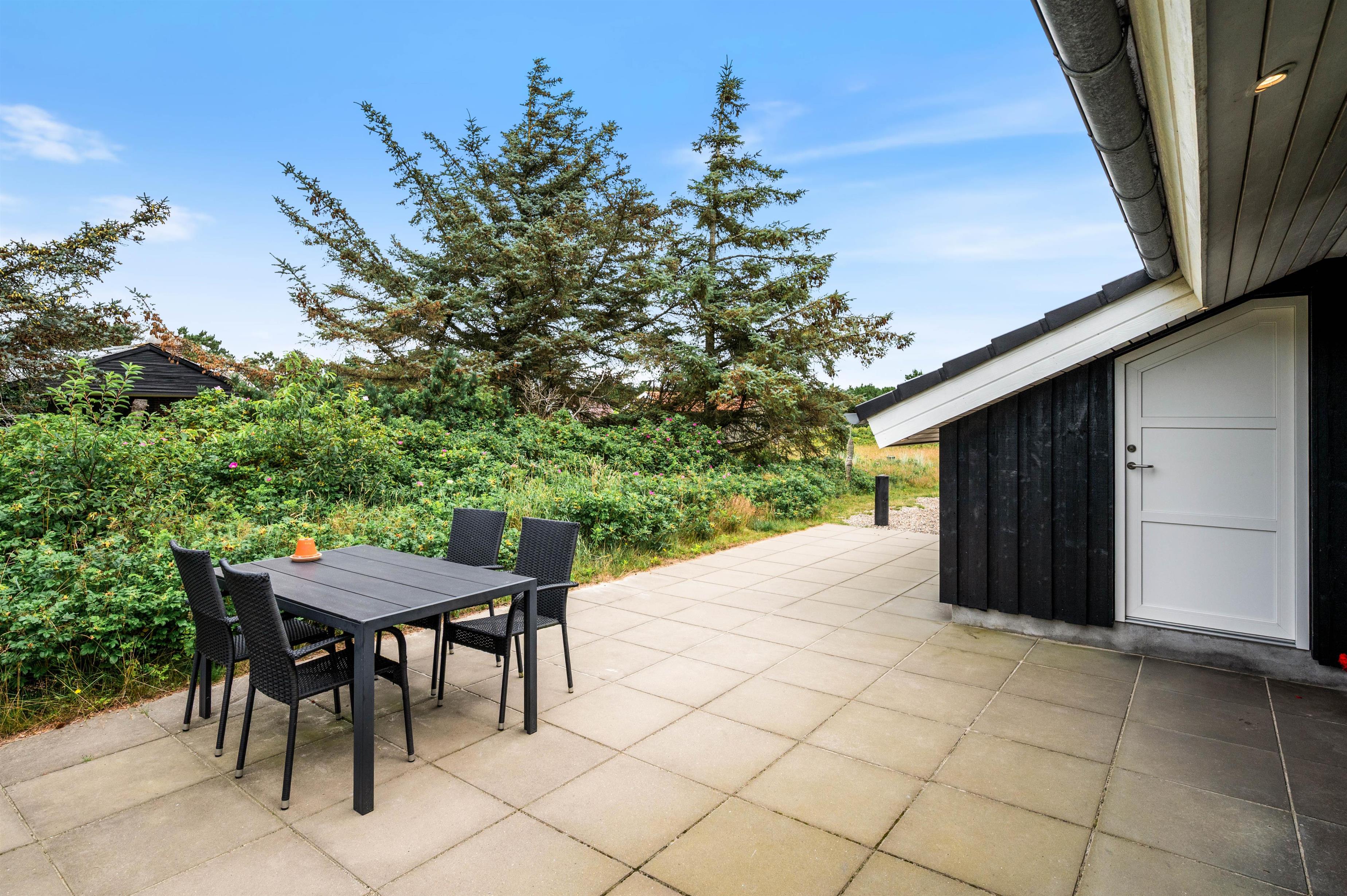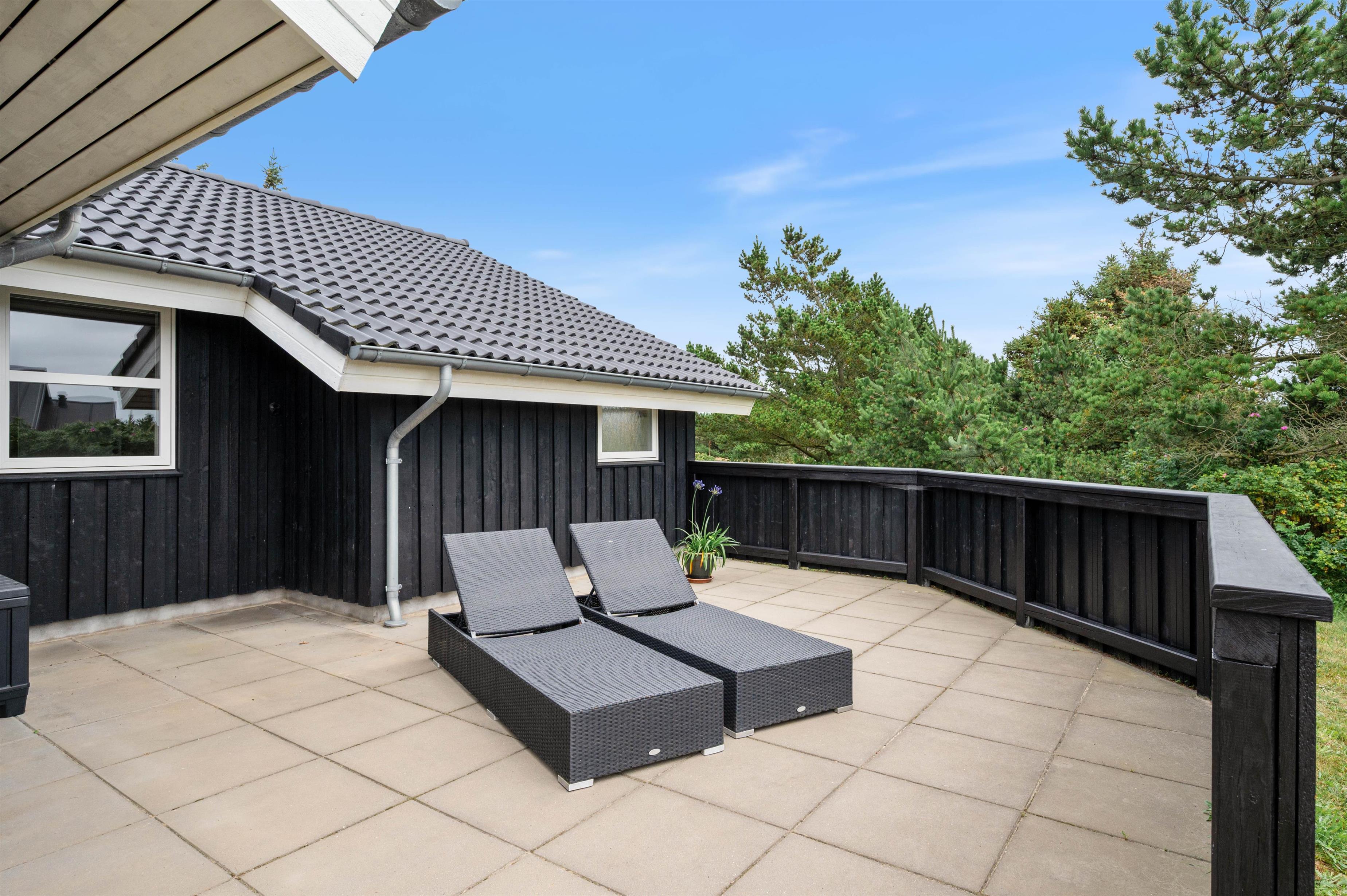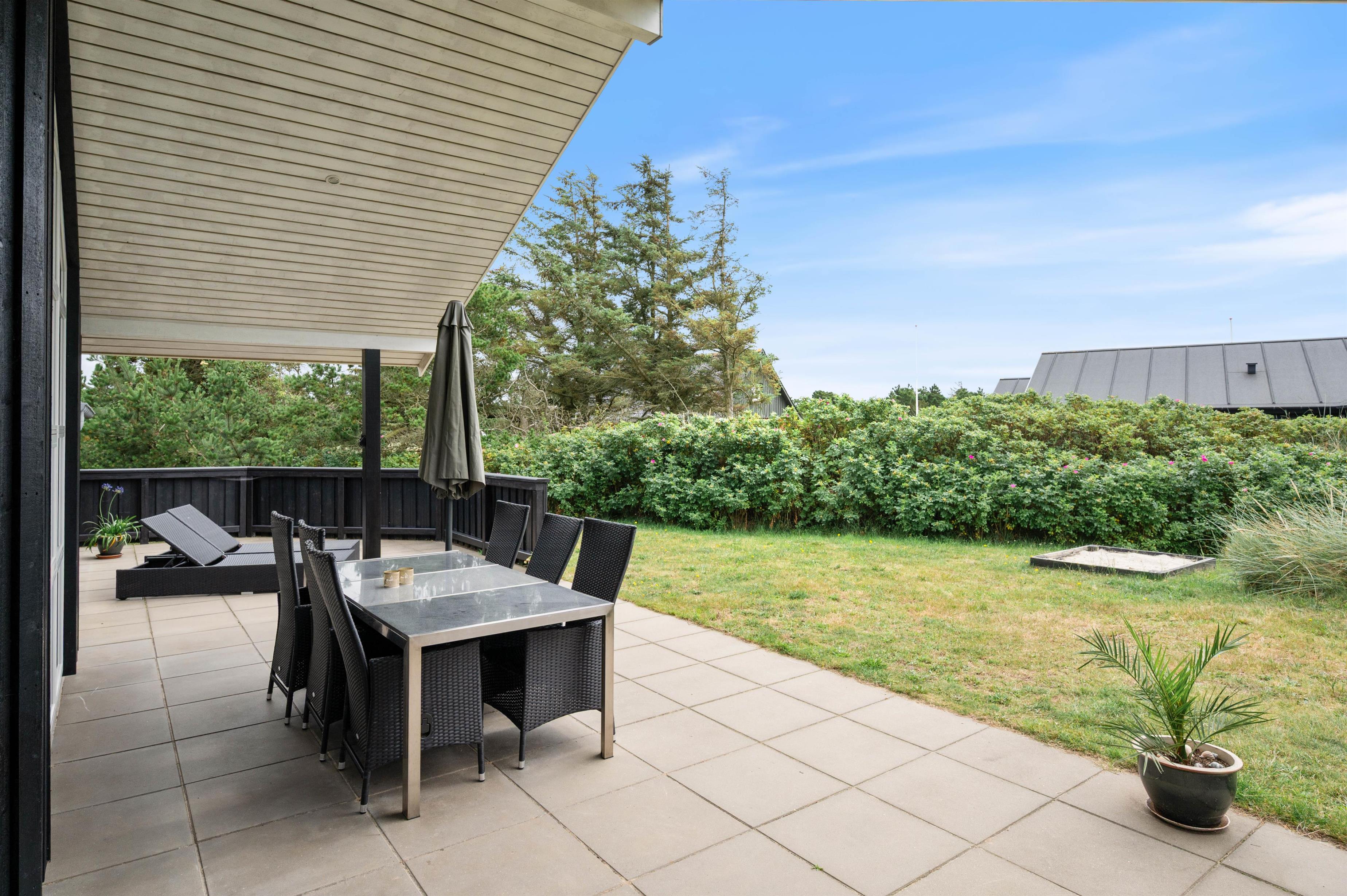 Den store terrasse indbyder til masser af solbadning og til lækre grillaftener. Eller måske bare til at dase lidt på liggestolen med en bog i hånden og lytte til lyden af havet – det er ren afslapning. Til børnene er her både gynge og sandkasse, hvis de stadig trænger til frisk luft og leg efter strandturen.