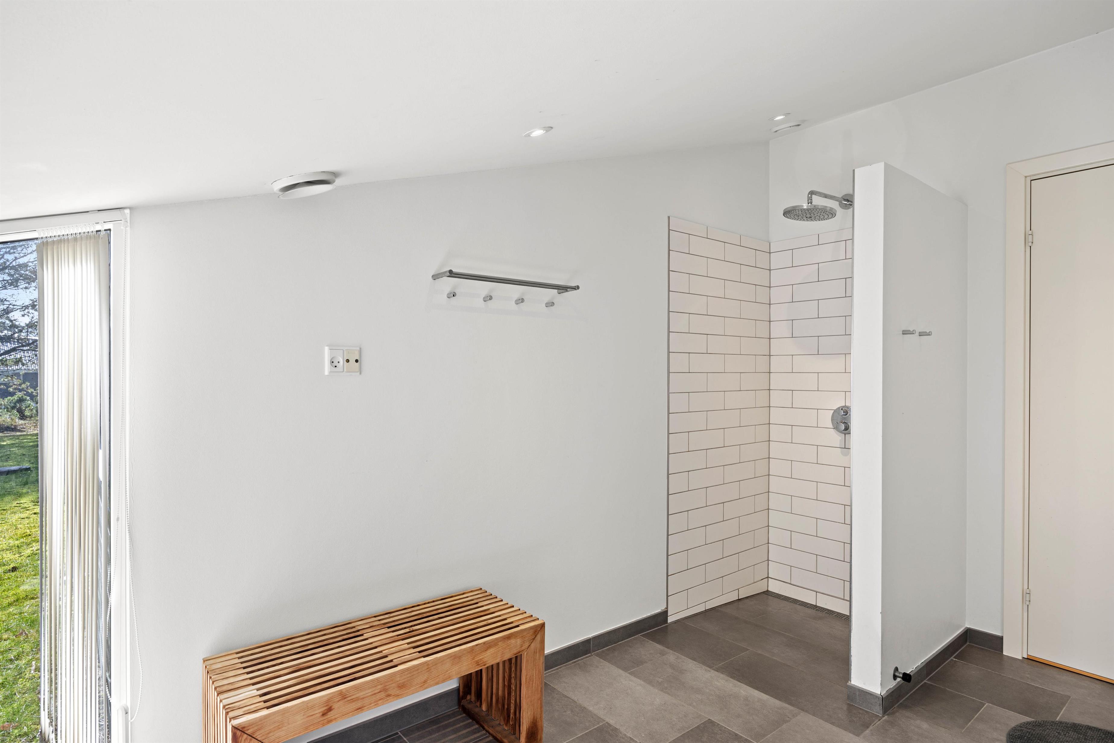 I har mere end god plads til at nyde de skønne solrige dage helt ugeneret på terrassen, der løber hele vejen rundt om huset. Her står både havemøbler og liggestole klar til jer, så I kan holde en dejlig dovnedag i de flotte omgivelser.
