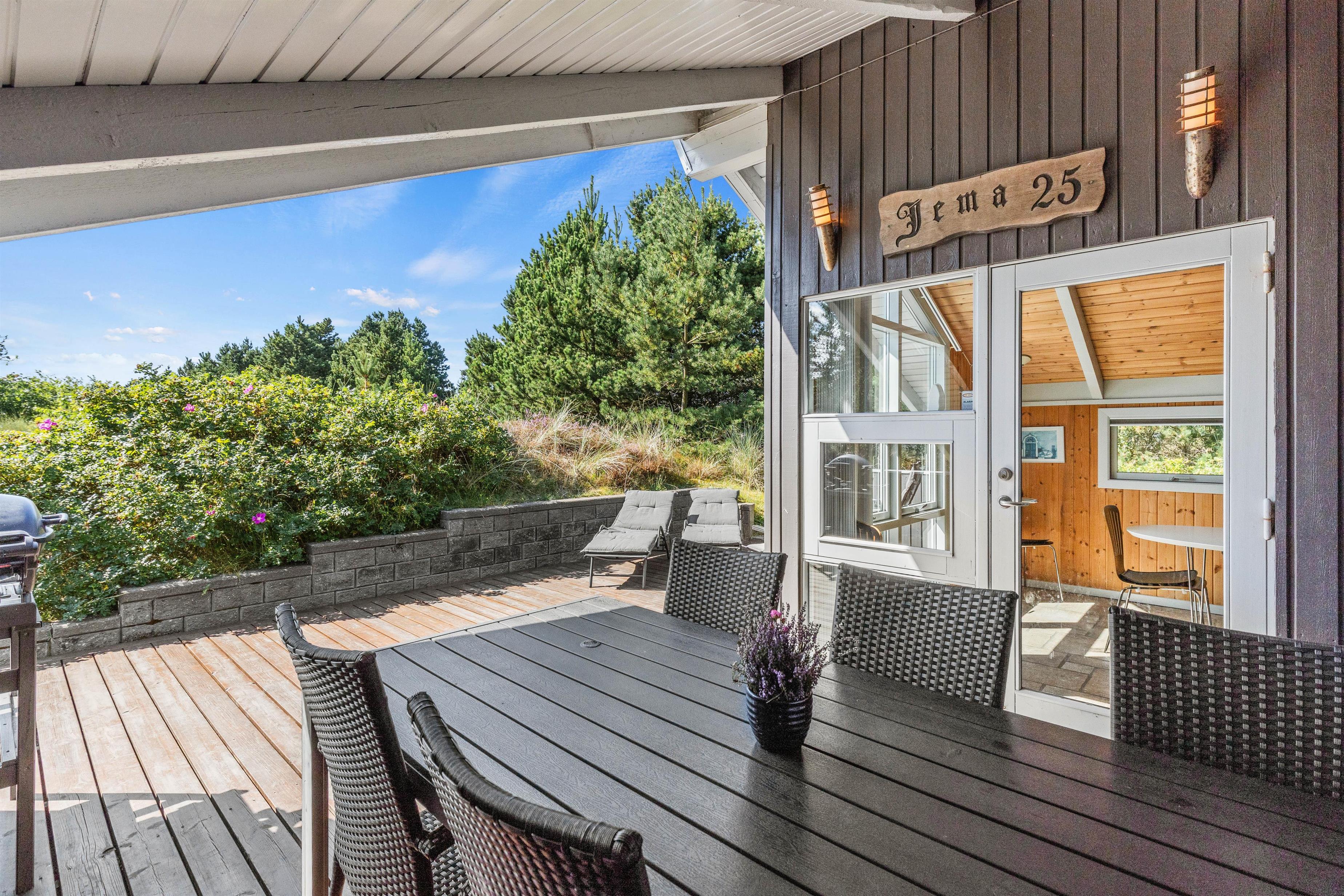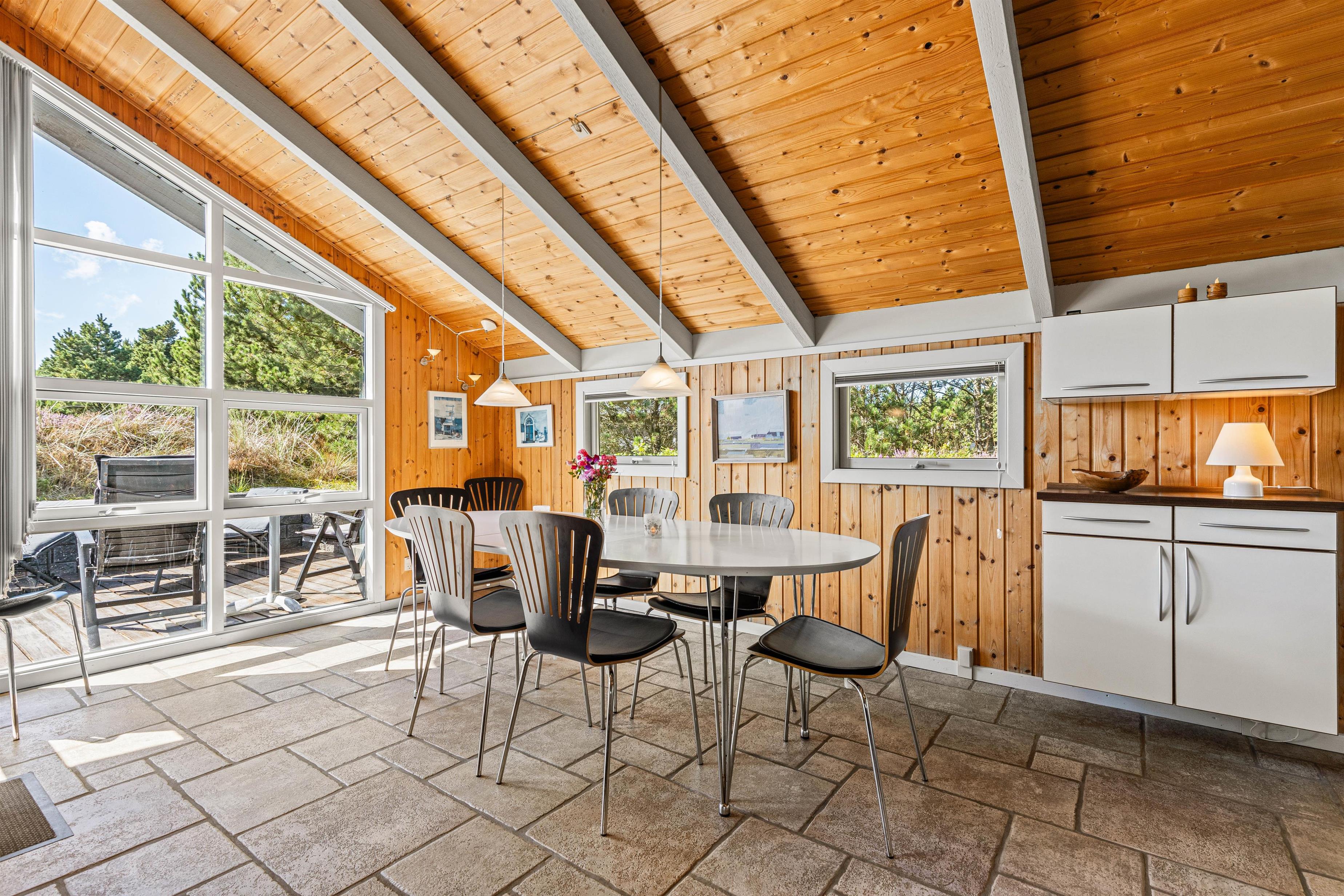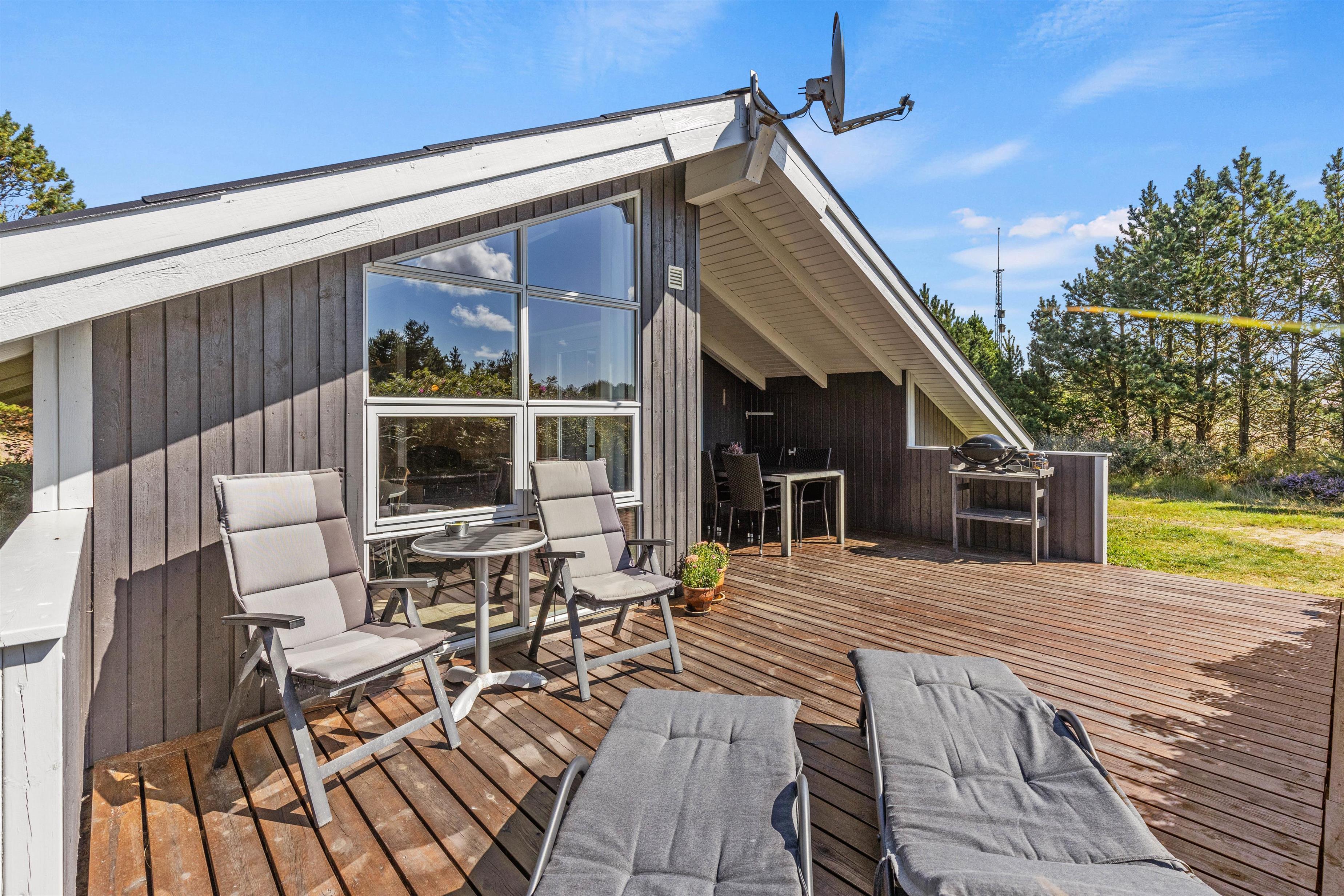 Sommerhuset er placeret på en imponerende klitgrund på hele 2566 m², så I får det vestjyske landskab direkte under fødderne her og kan nyde duften af hybenroserne samt høre vinden suse i fyrretræerne. Måske kigger også noget af det lokale vildt forbi…