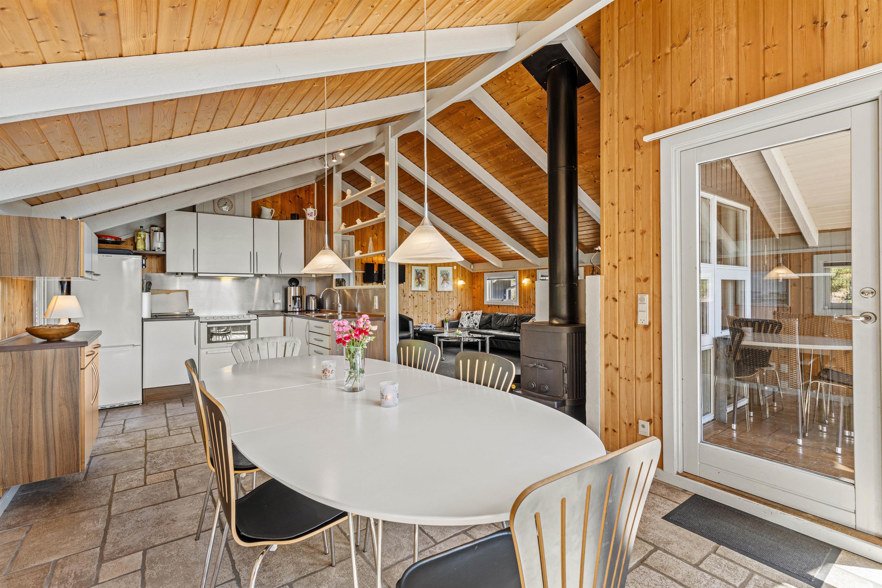 Det veludstyrede køkken med gulvvarme udgør husets hjerte og har, hvad I behøver, for at kunne lave lækre måltider til hinanden. Efter spisningen kan I lade den lille opvaskemaskine gøre arbejdet med afvaskningen af servicet, og når I får brug for at tanke op med madvarer, er butikkerne kun 1,5 km væk og en ekstra fryser med en kapacitet på 50 liter står til jeres rådighed i sommerhuset.