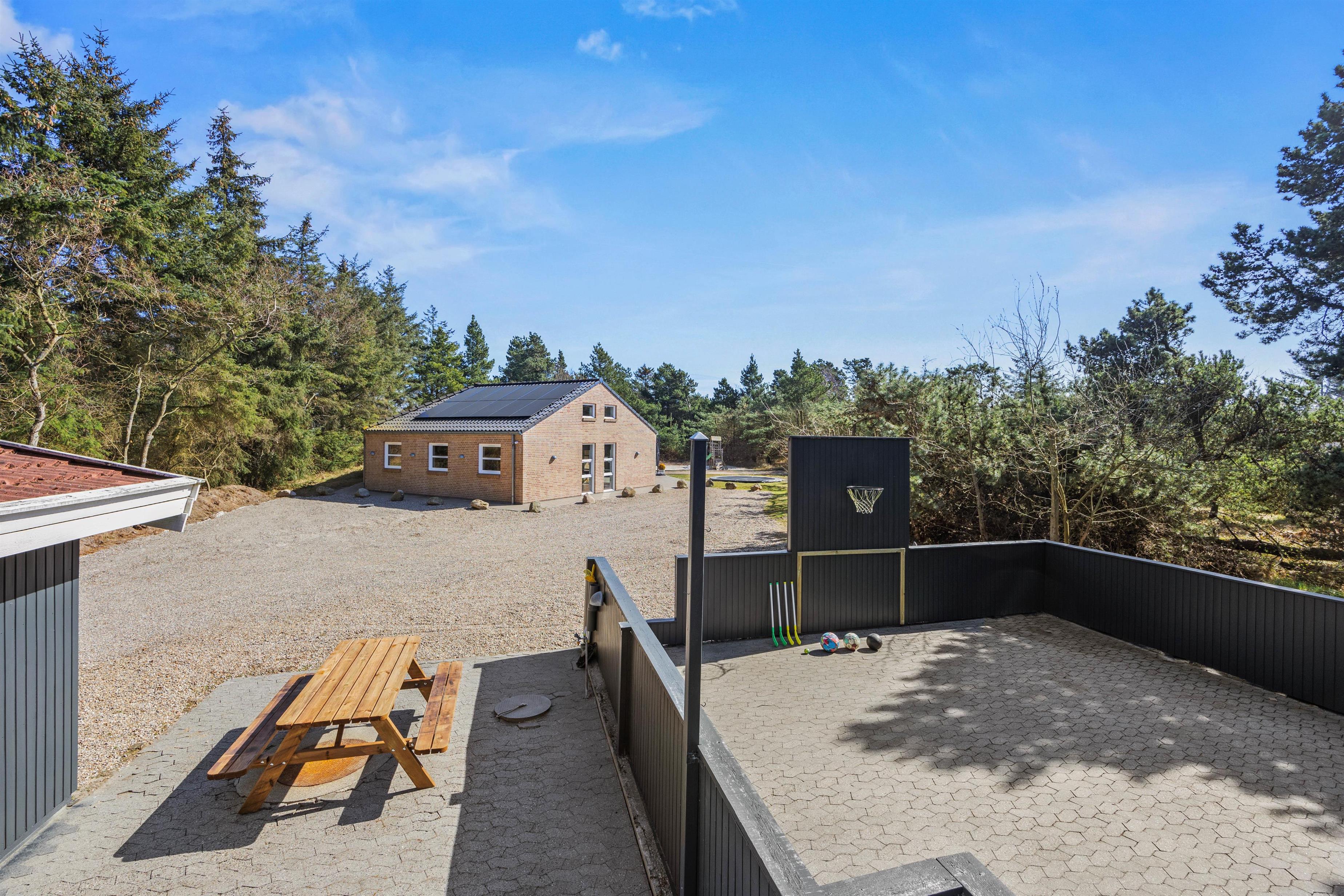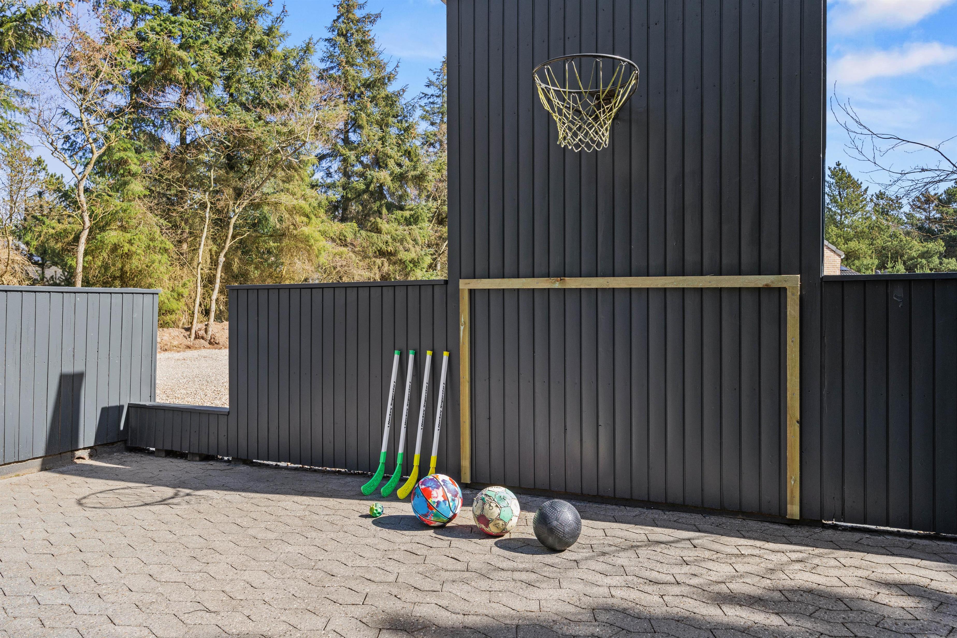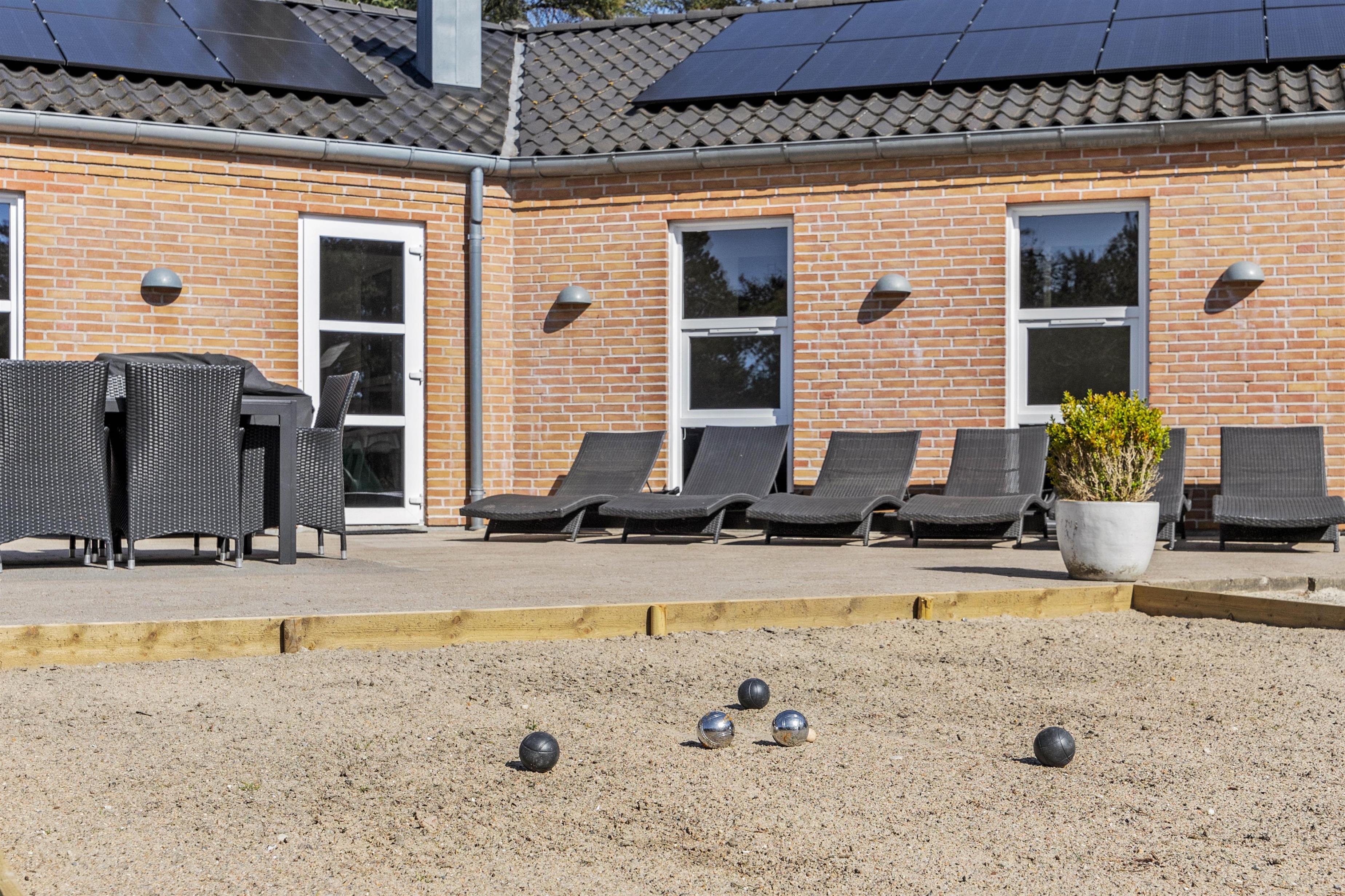 På den 2506 m² store grund venter masser af oplevelser i det fri. Her finder I en stor sandkasse med legetårn og gynger, samt en nedgravet trampolin til det yngre publikum, petanquebane til det ældre og ikke mindst en multibane til fodbold, basketball og streethockey – perfekt til aktive ferier og familiedyster for hele familien.
