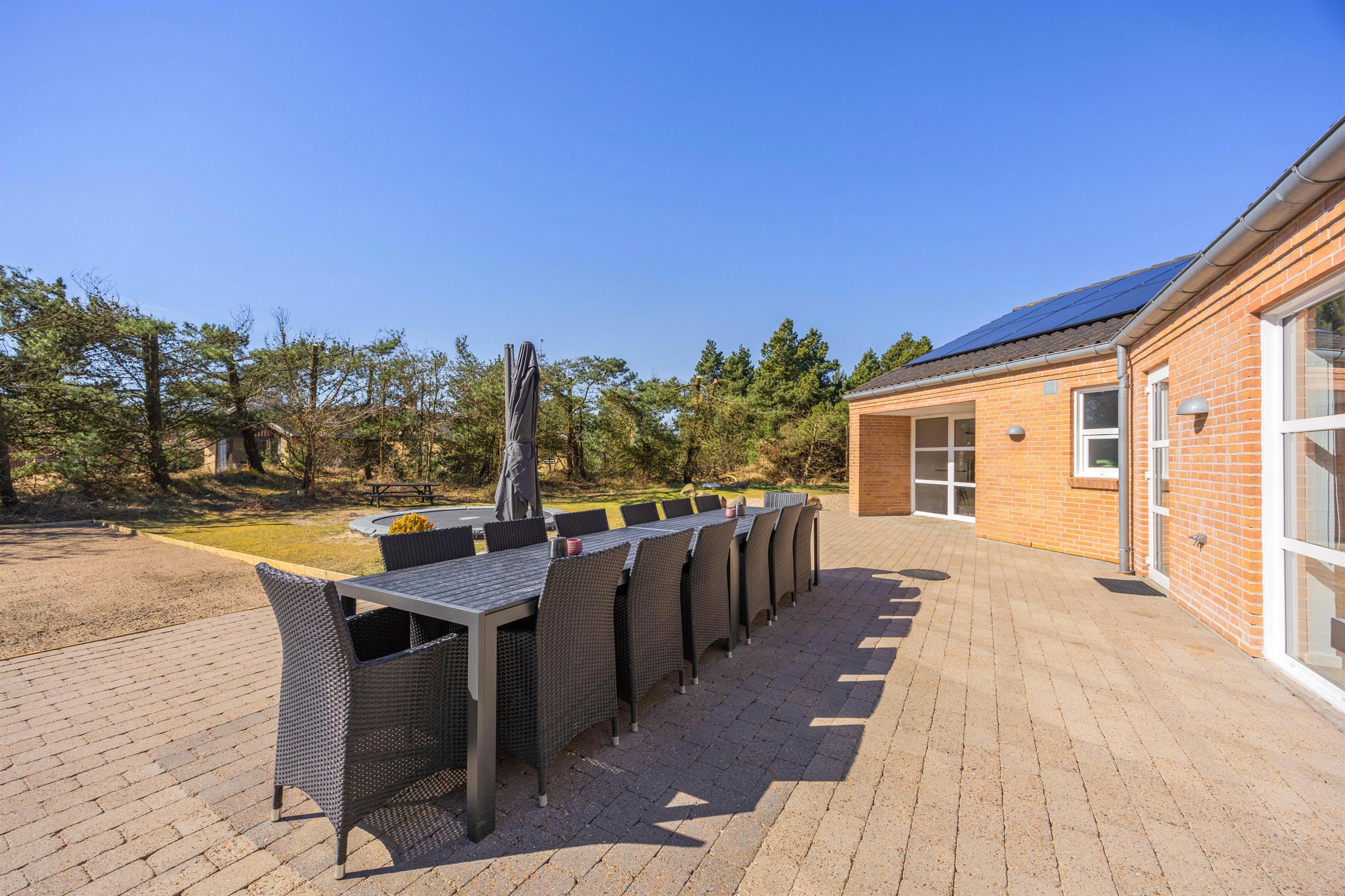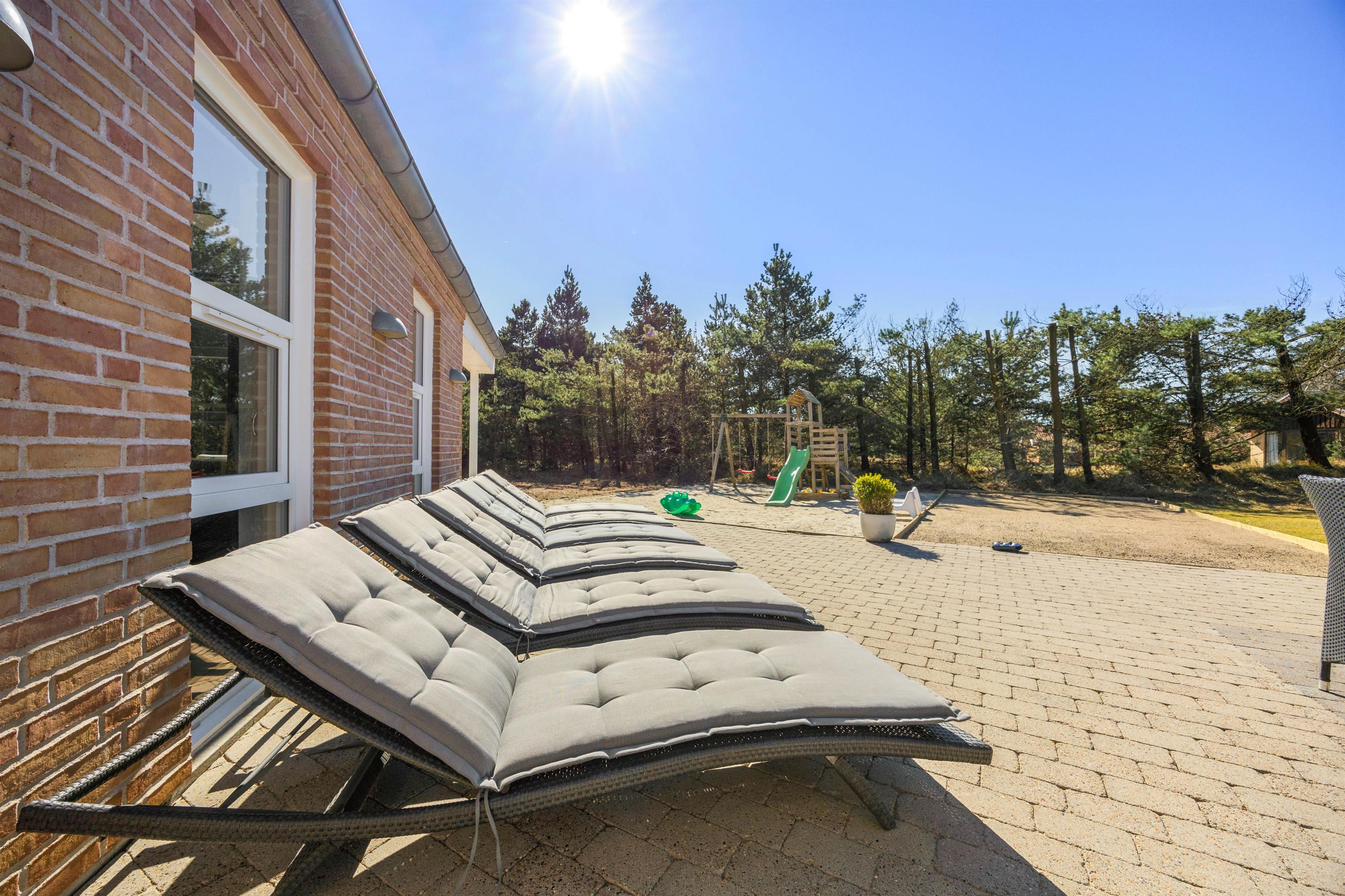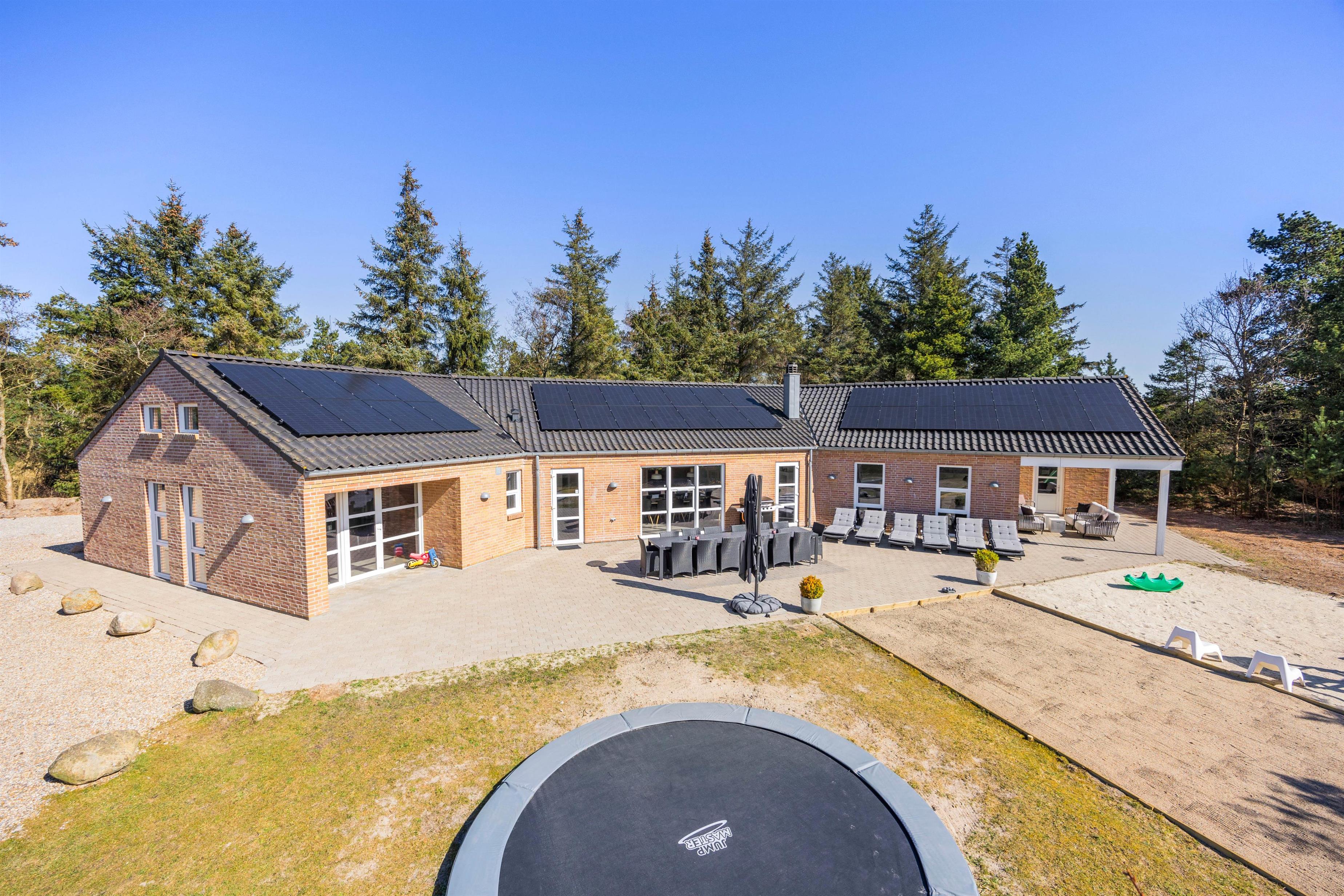 På den 2506 m² store grund venter masser af oplevelser i det fri. Her finder I en stor sandkasse med legetårn og gynger, samt en nedgravet trampolin til det yngre publikum, petanquebane til det ældre og ikke mindst en multibane til fodbold, basketball og streethockey – perfekt til aktive ferier og familiedyster for hele familien.