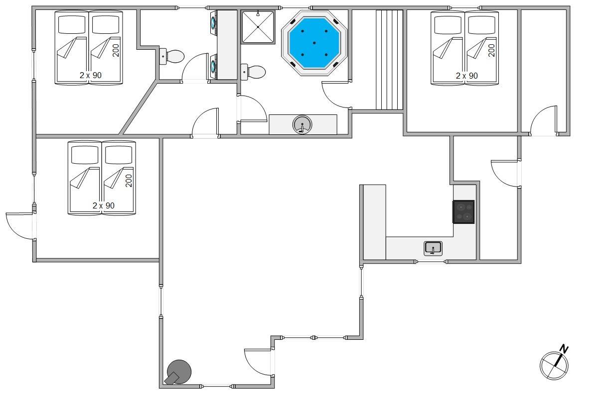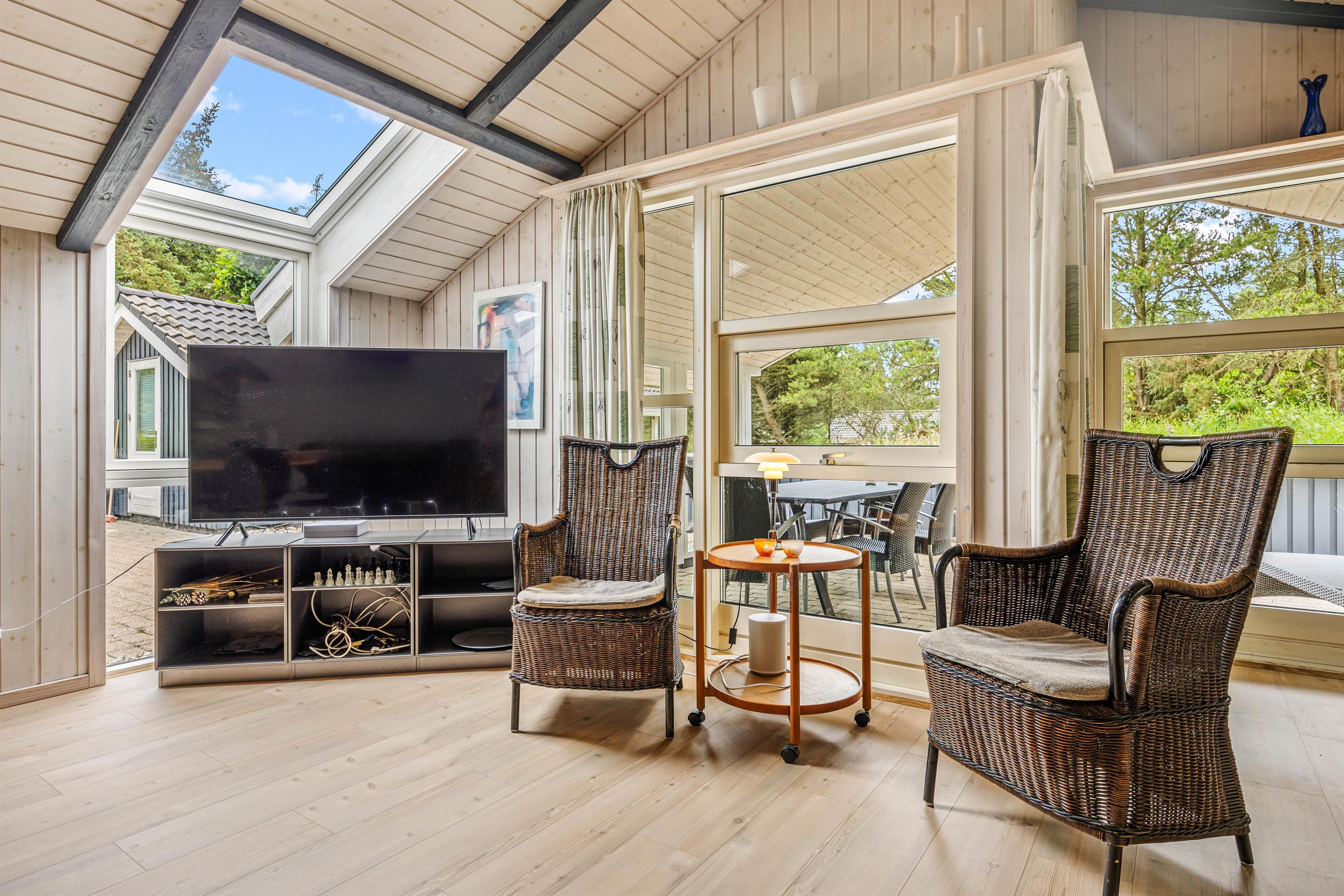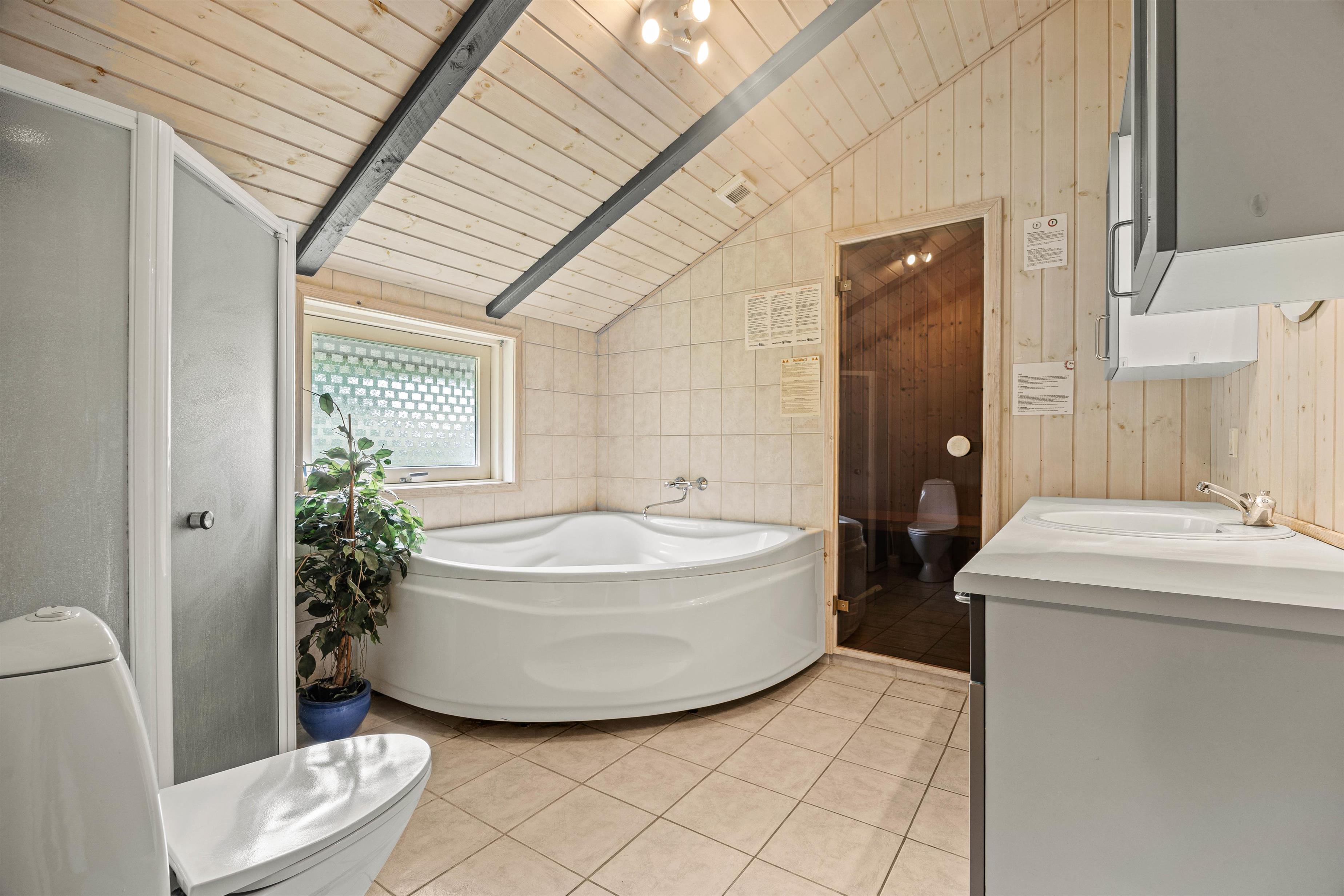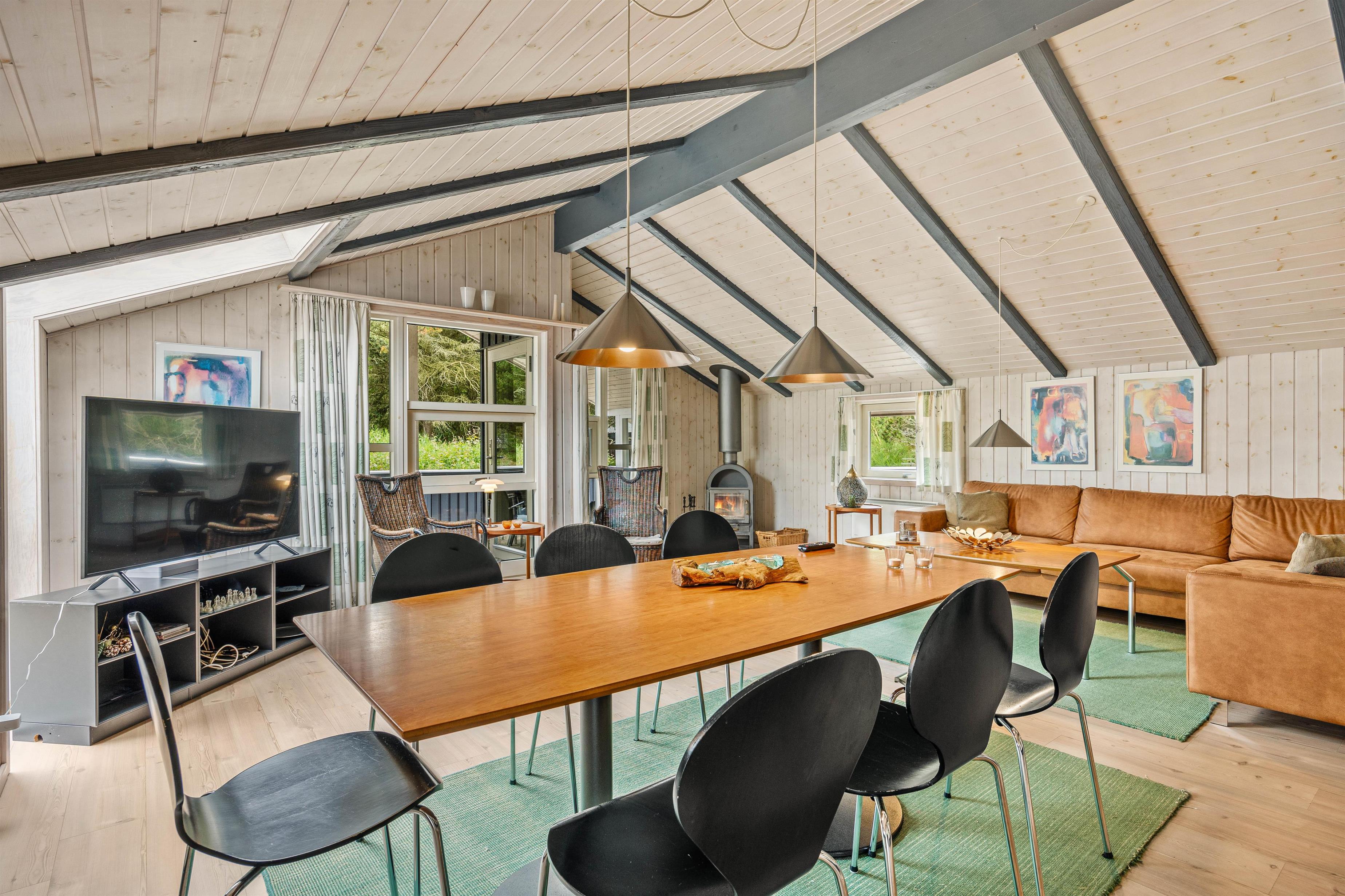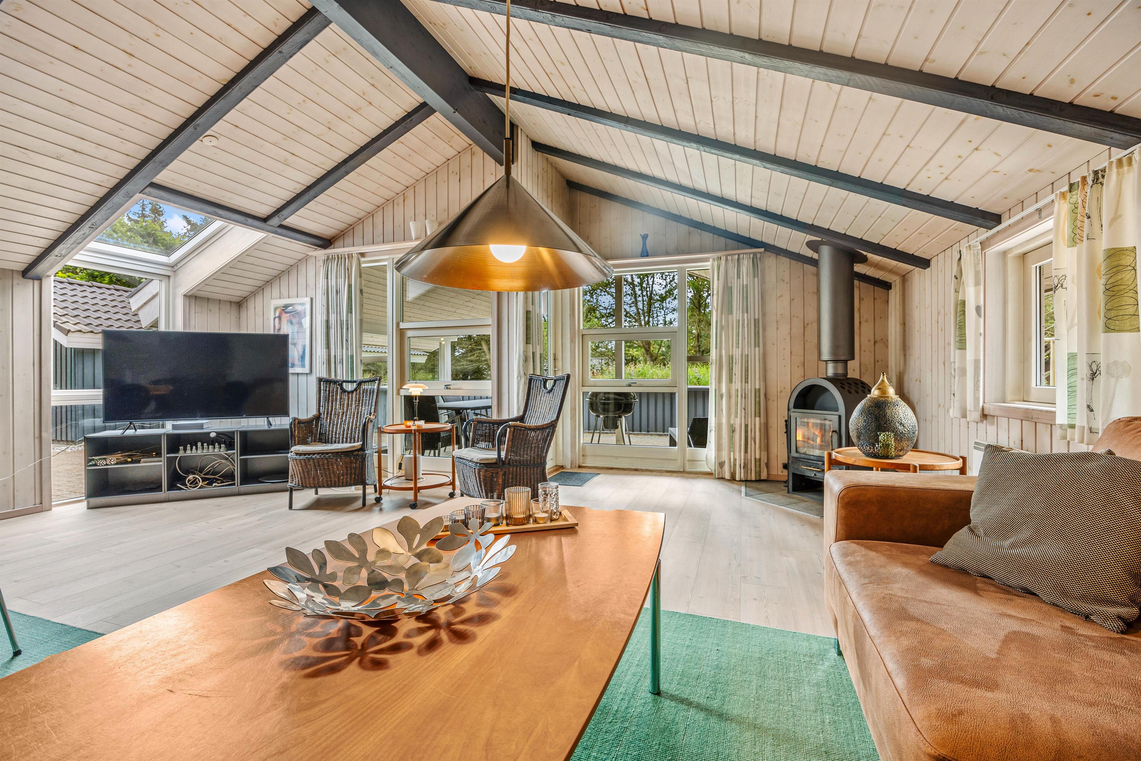 Med et boligareal på 109 m2 tilbyder det indbydende feriehus plads til op til 6 personer, og huset charmerer med sin hyggelige atmosfære og de mange muligheder for afslapning. Nyd komforten i saunaen og whirlpoolen og den hyggelige varme fra brændeovnen.