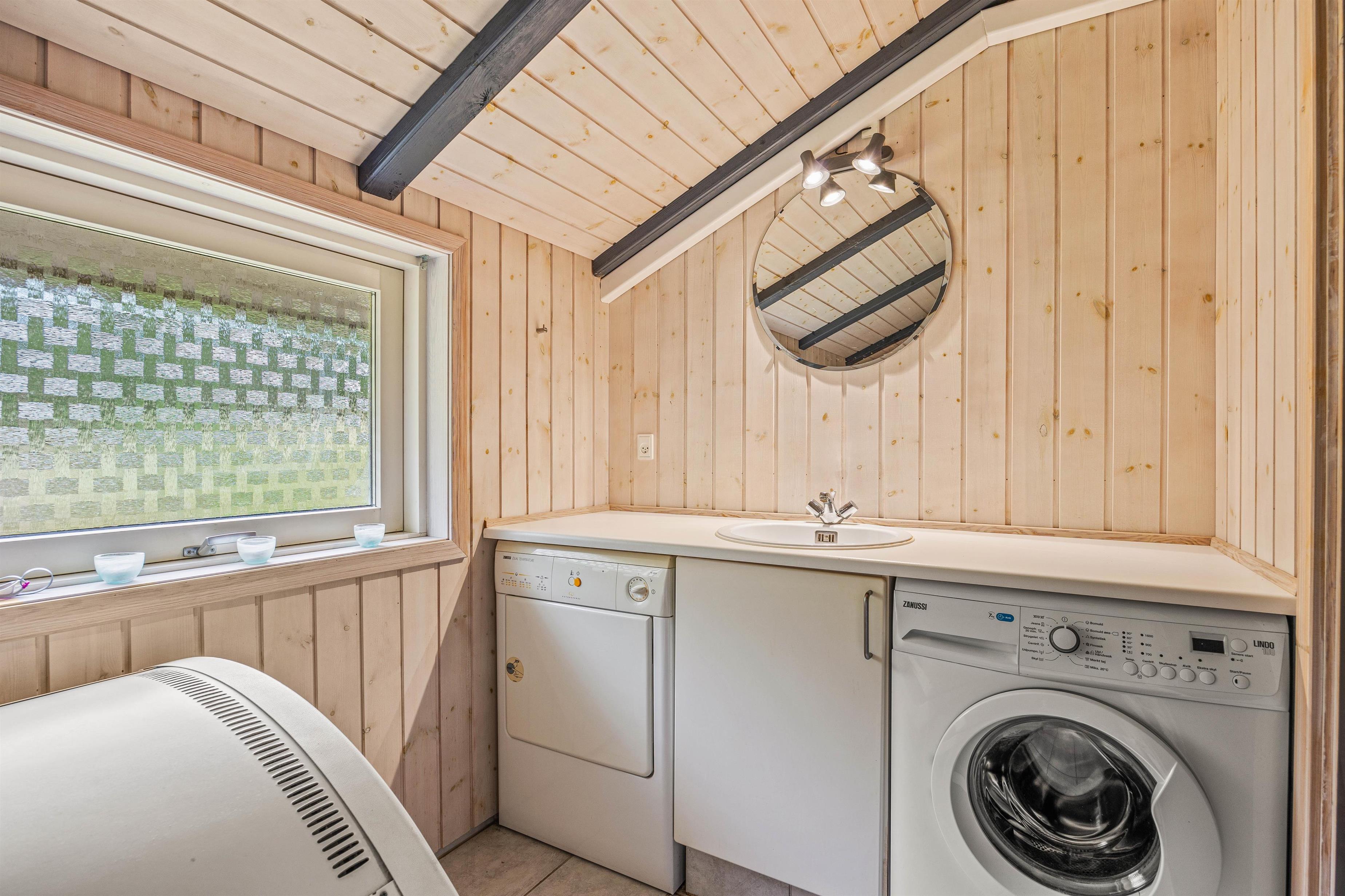 Køkkenet er udstyret med alt, hvad du har brug for, inklusive en opvaskemaskine og en separat fryser på 90 liter, hvilket gør det nemt og behageligt at tilberede måltider. Vaskemaskine og tørretumbler står også til din rådighed for at gøre dit ophold så behageligt som muligt.