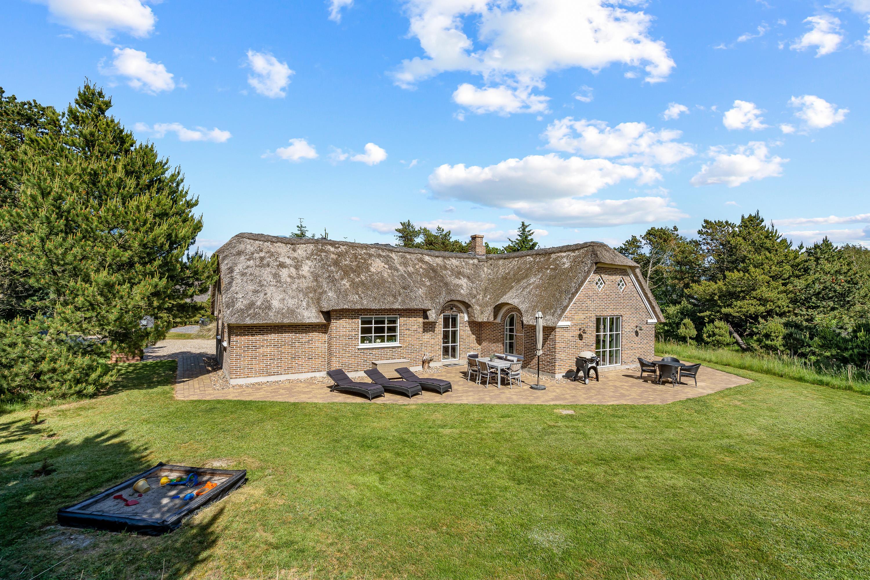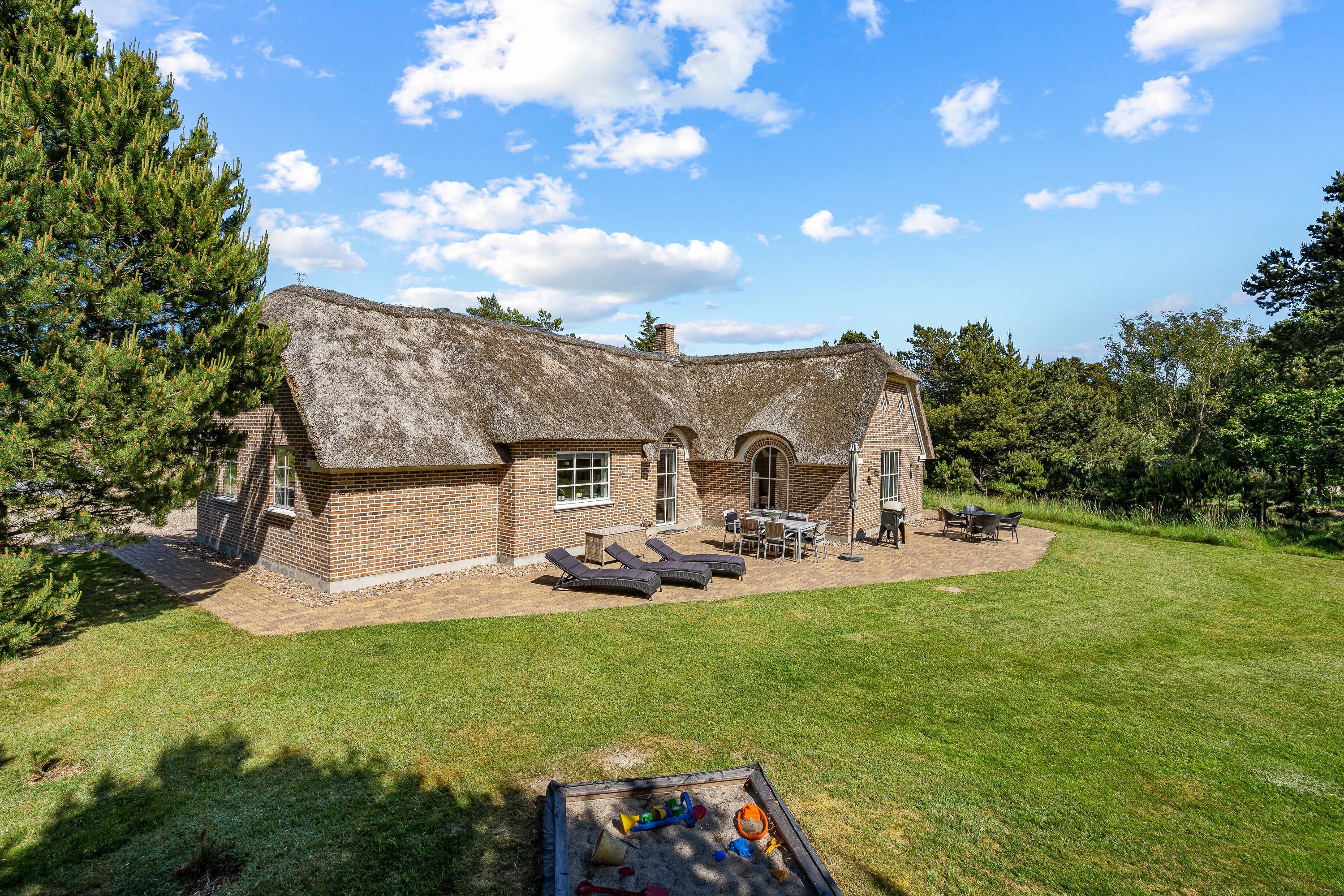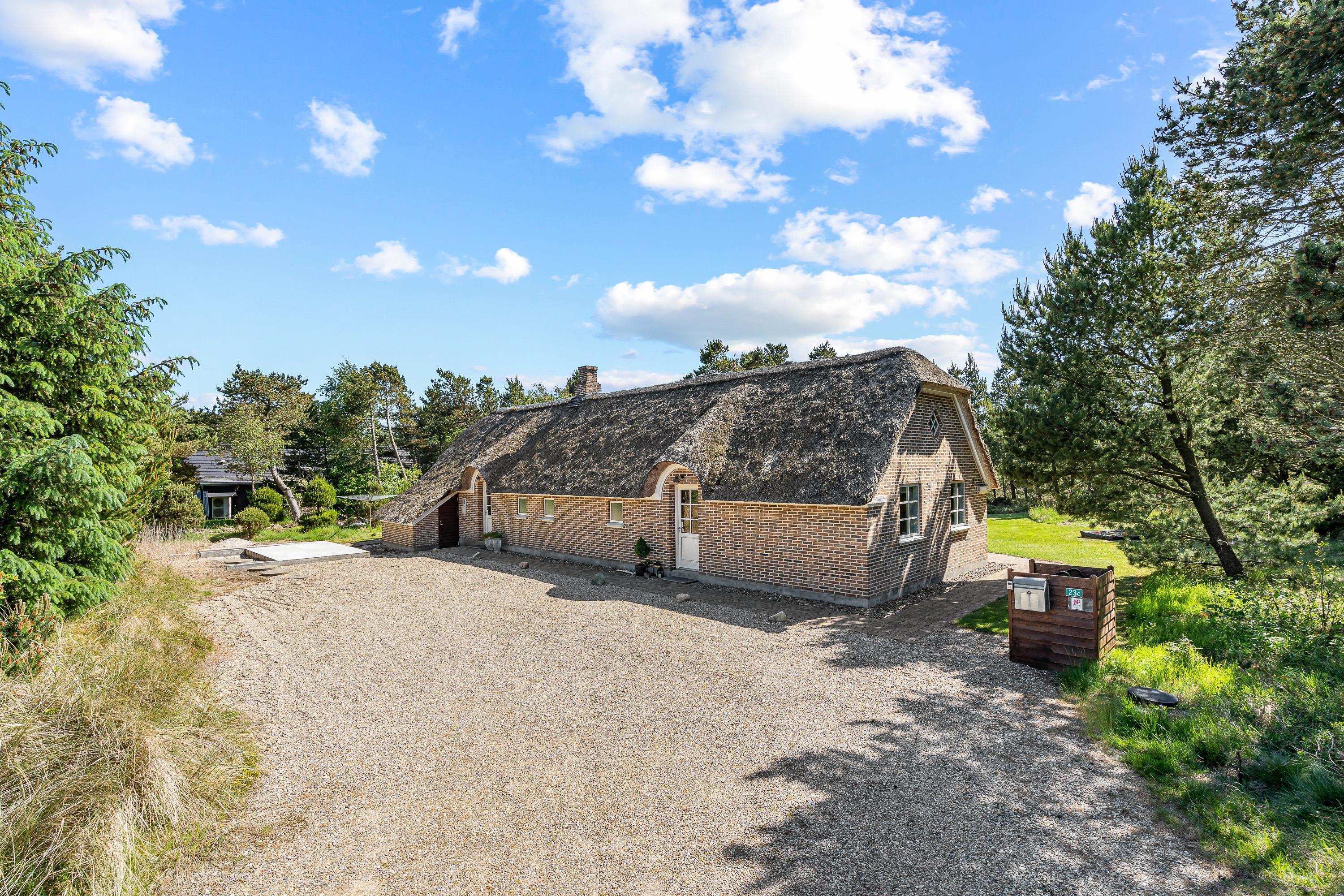 Sommerhuset på Nordkrogen 23C ligger på en klitgrund, der er 1.680 kvadratmeter stor, og på grunden venter jer et dejligt udeområde, hvor der både er noget for voksne og børn. I haven står en sandkasse og et gyngestativ klar til børnene, mens de voksne kan søge mod den åbne terrasse.