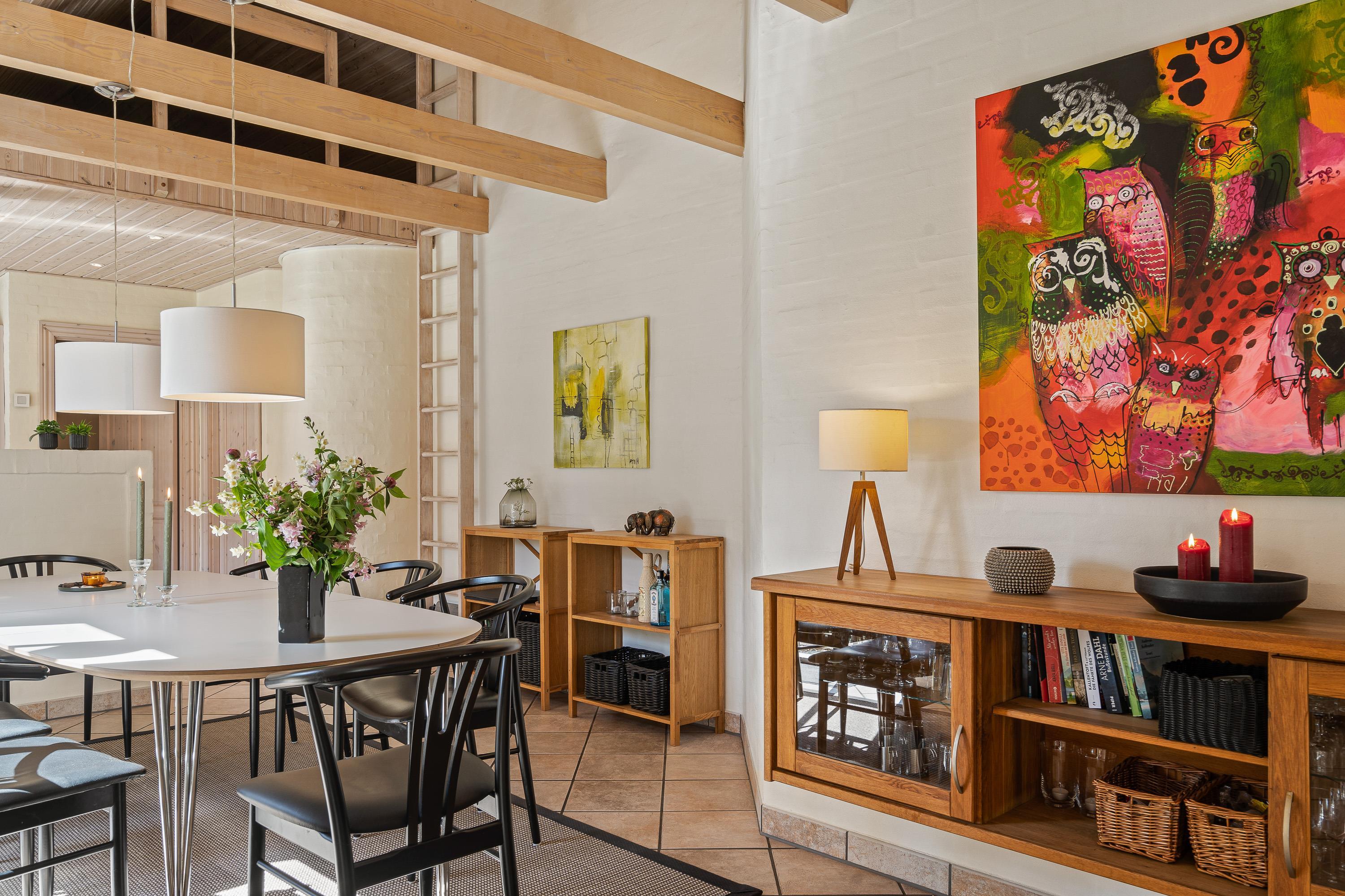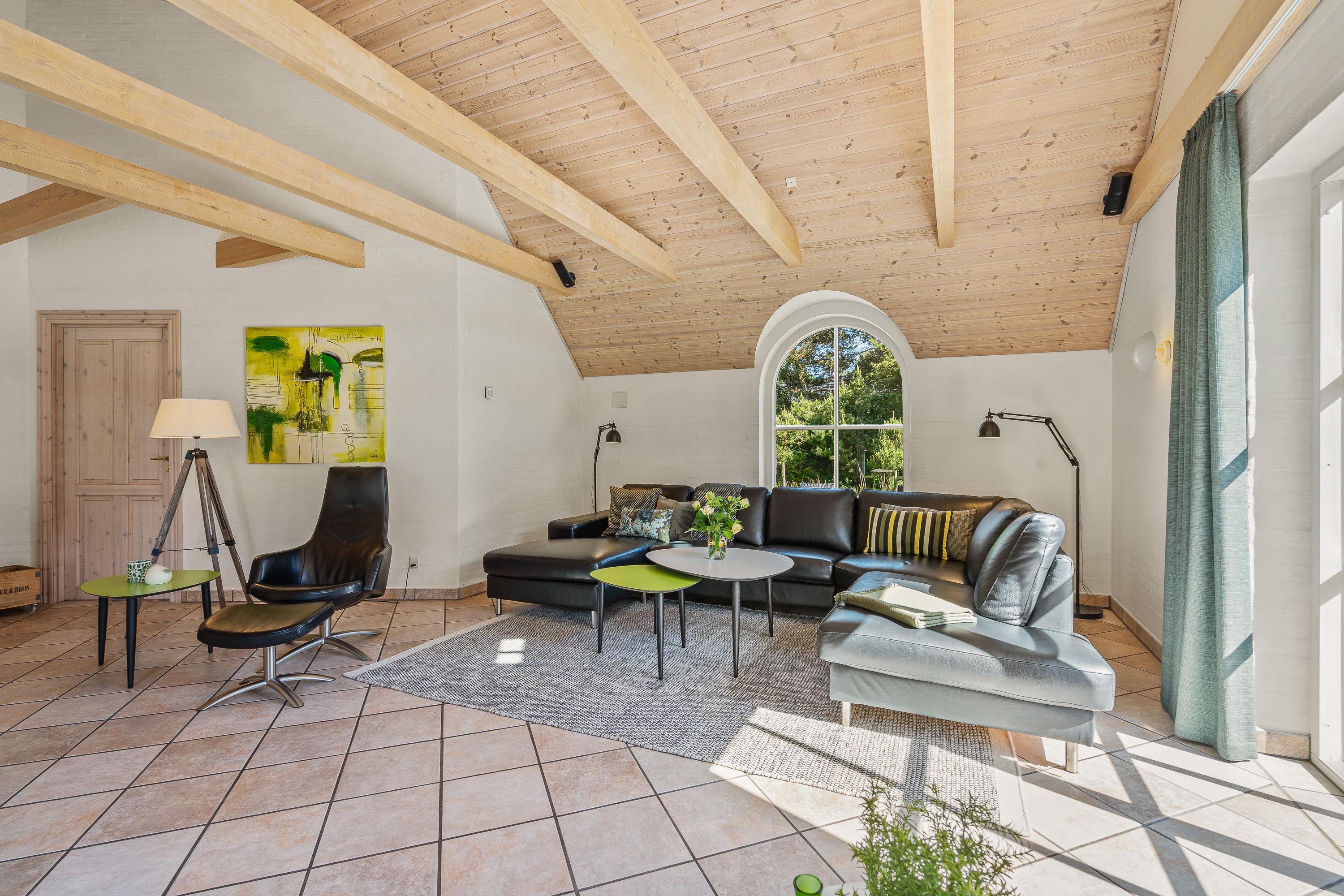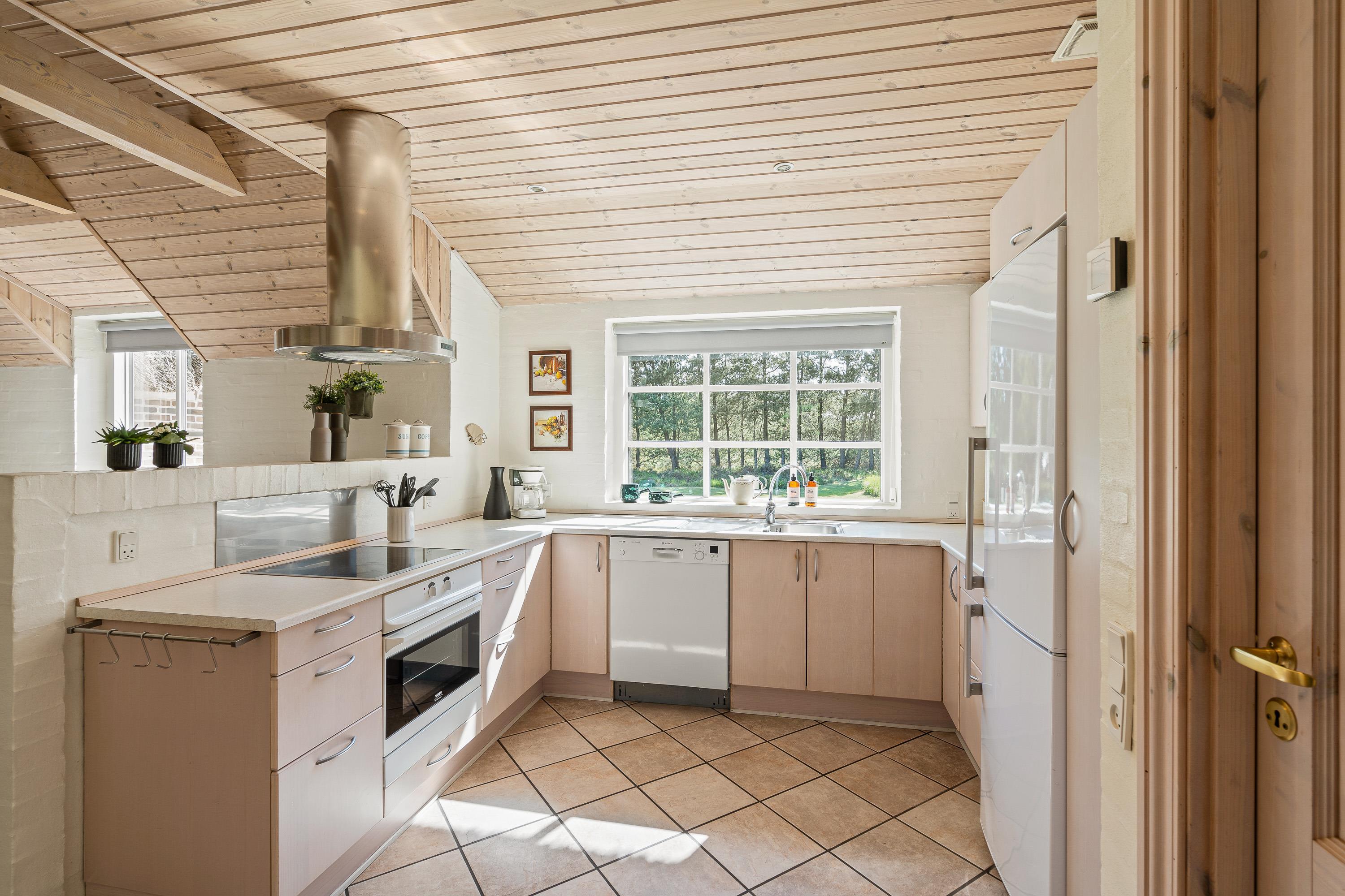 Det store samlingspunkt er utvivlsomt det hyggelige alrum med brændeovn, hvor køkkenet ligger i åben forbindelse med spisestuen og stuen. Her har I rig mulighed for at nyde hinandens selskab, selv når nogle står for madlavningen i køkkenet, og andre ser tv. På tv’et er der kun tyske kanaler, men takket være Chromecasten kan I streame jeres yndlingsfilm og -serier.